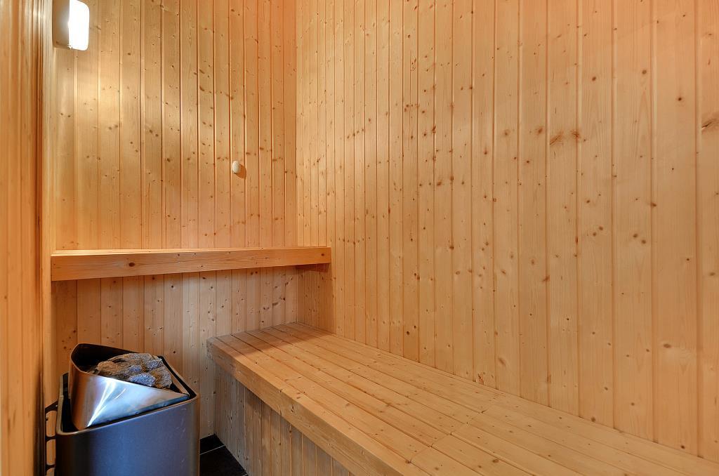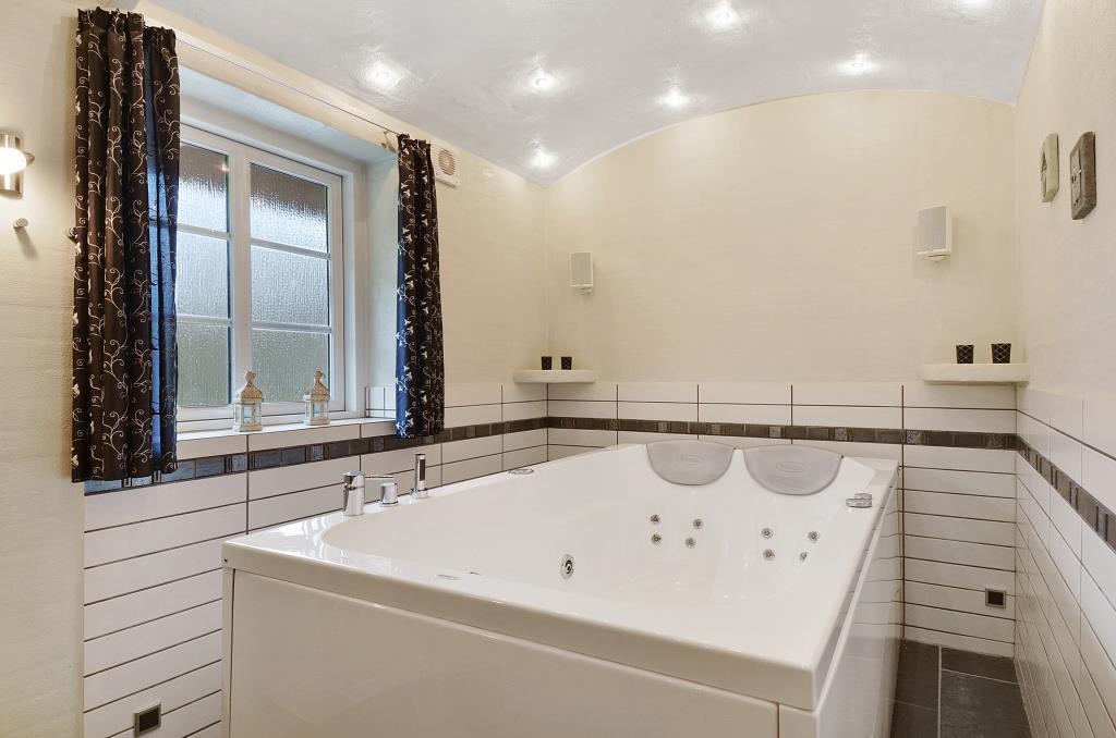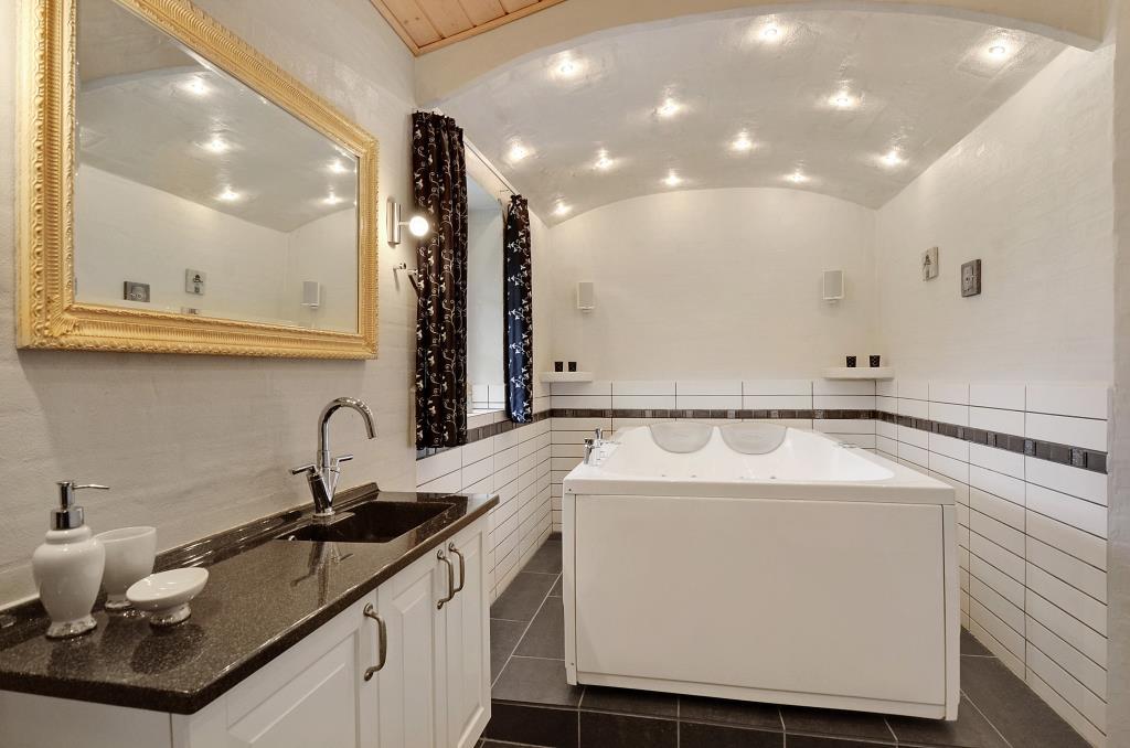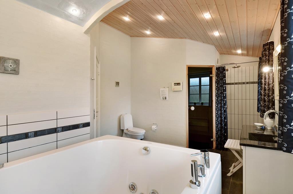 Großes Badezimmer mit Whirlpool, Sauna und Dusche