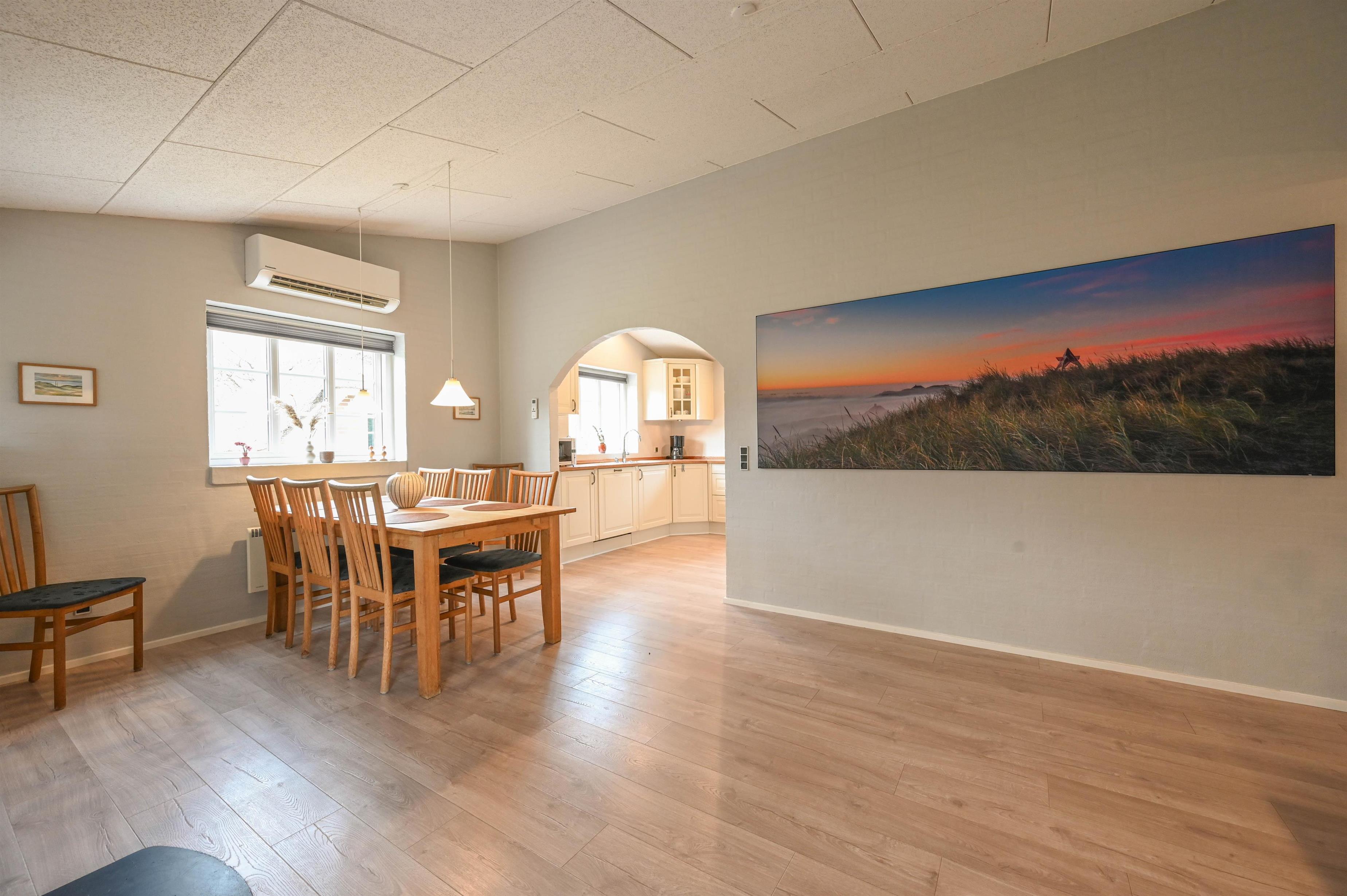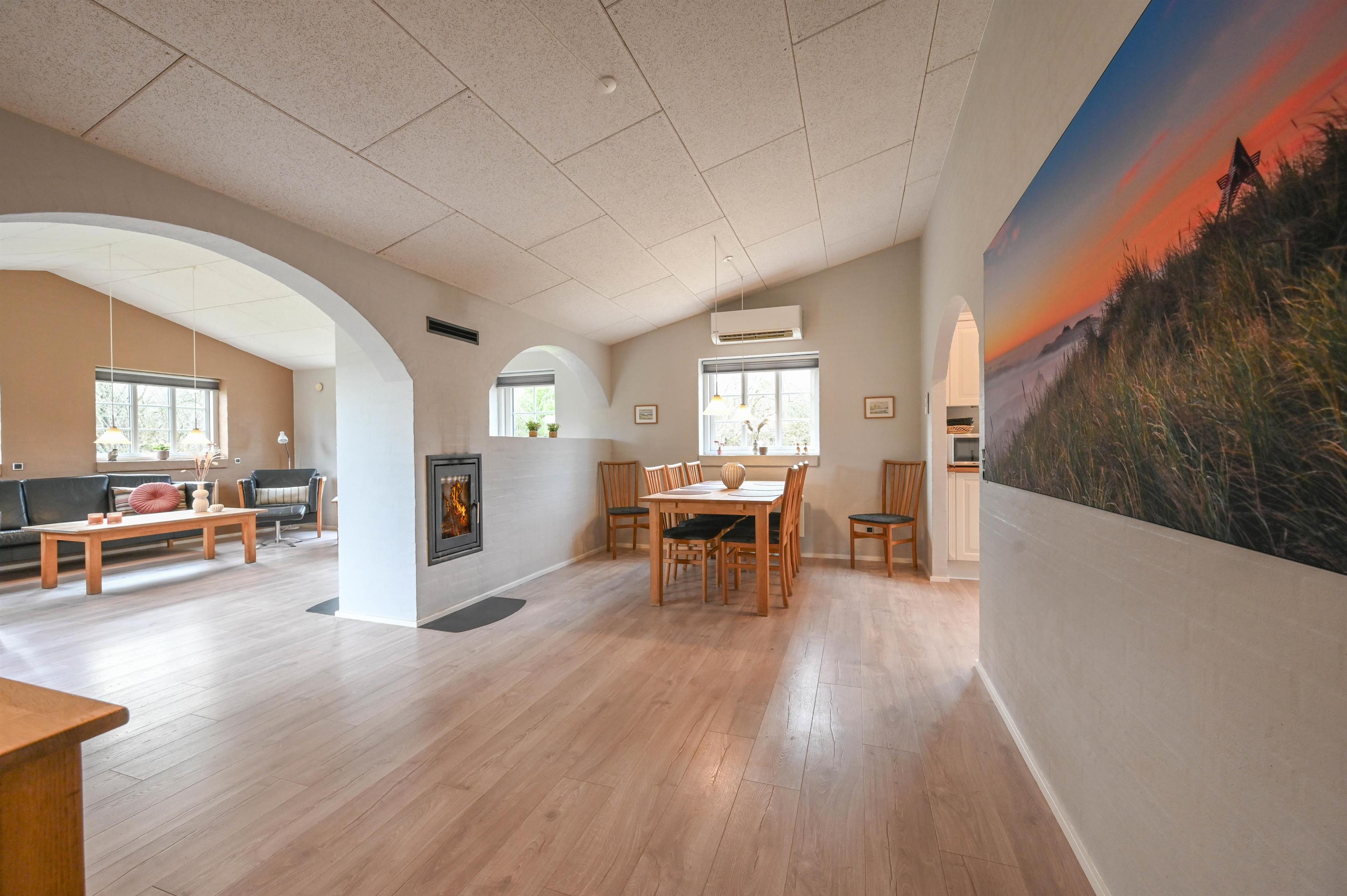 Das Haus wurde im Einklang mit der Umgebung gebaut und fügt sich harmonisch in die westjütländische Landschaft ein. Nur ca. 1.500 Meter trennen dich vom Meer, das du über idyllische Wege durch Dünen und Wald erreichst.
