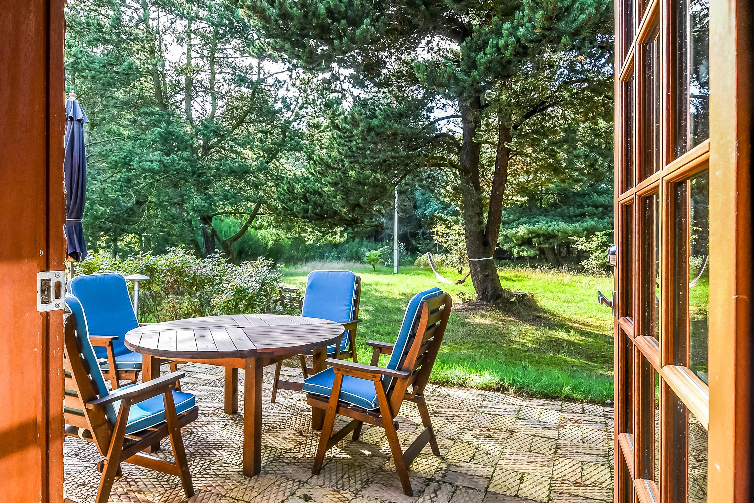 Auf einem schönen, bewachsenen Naturgrundstück von ca. 5.000 m², umgeben von Bäumen und viel Windschutz, liegt dieses gepflegte Ferienhaus, in dem ihr den Urlaub in Ruhe und Frieden genießen könnt – fernab von Verkehrslärm und mit dem Rauschen der Nordsee im Hintergrund.