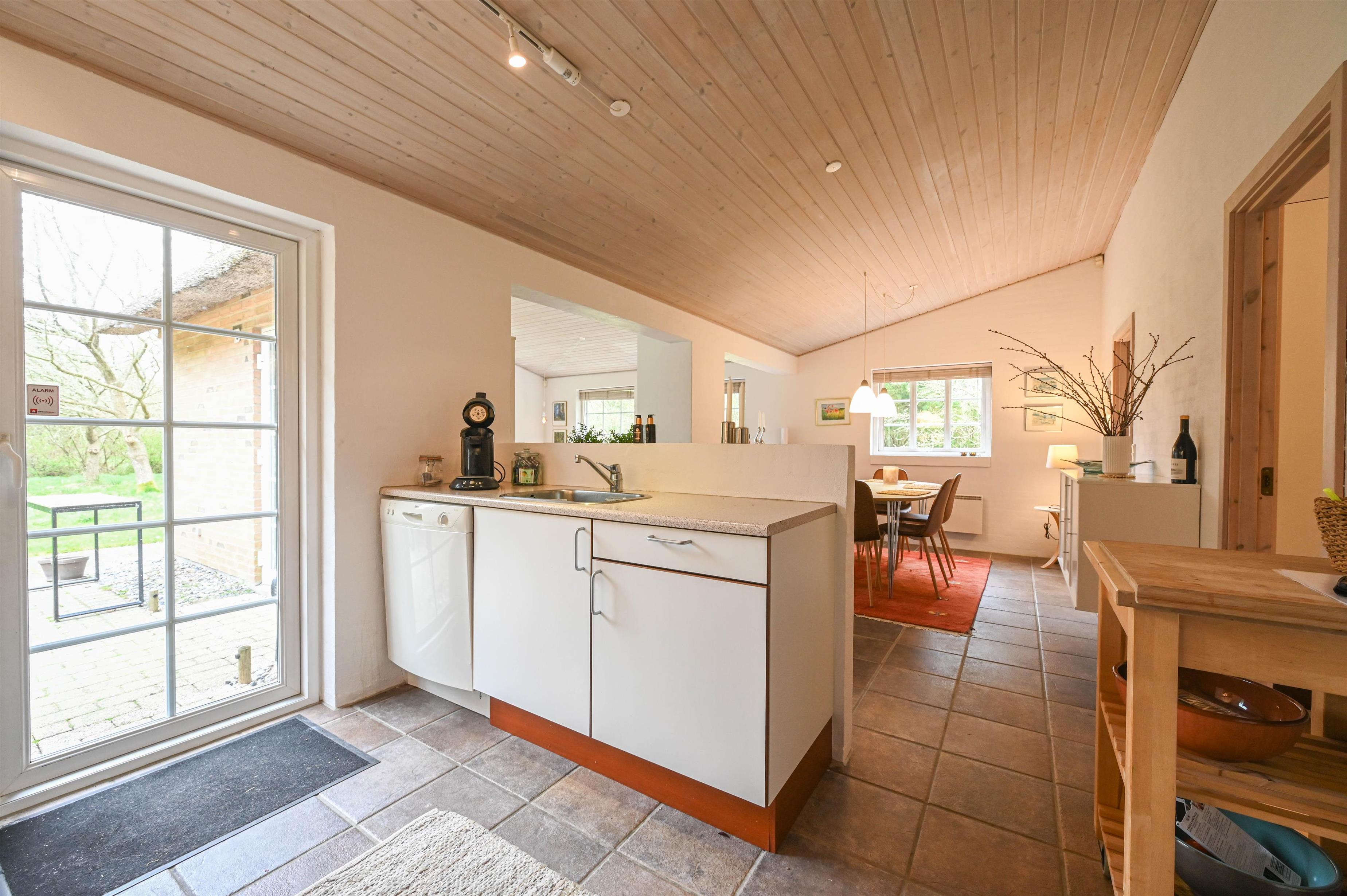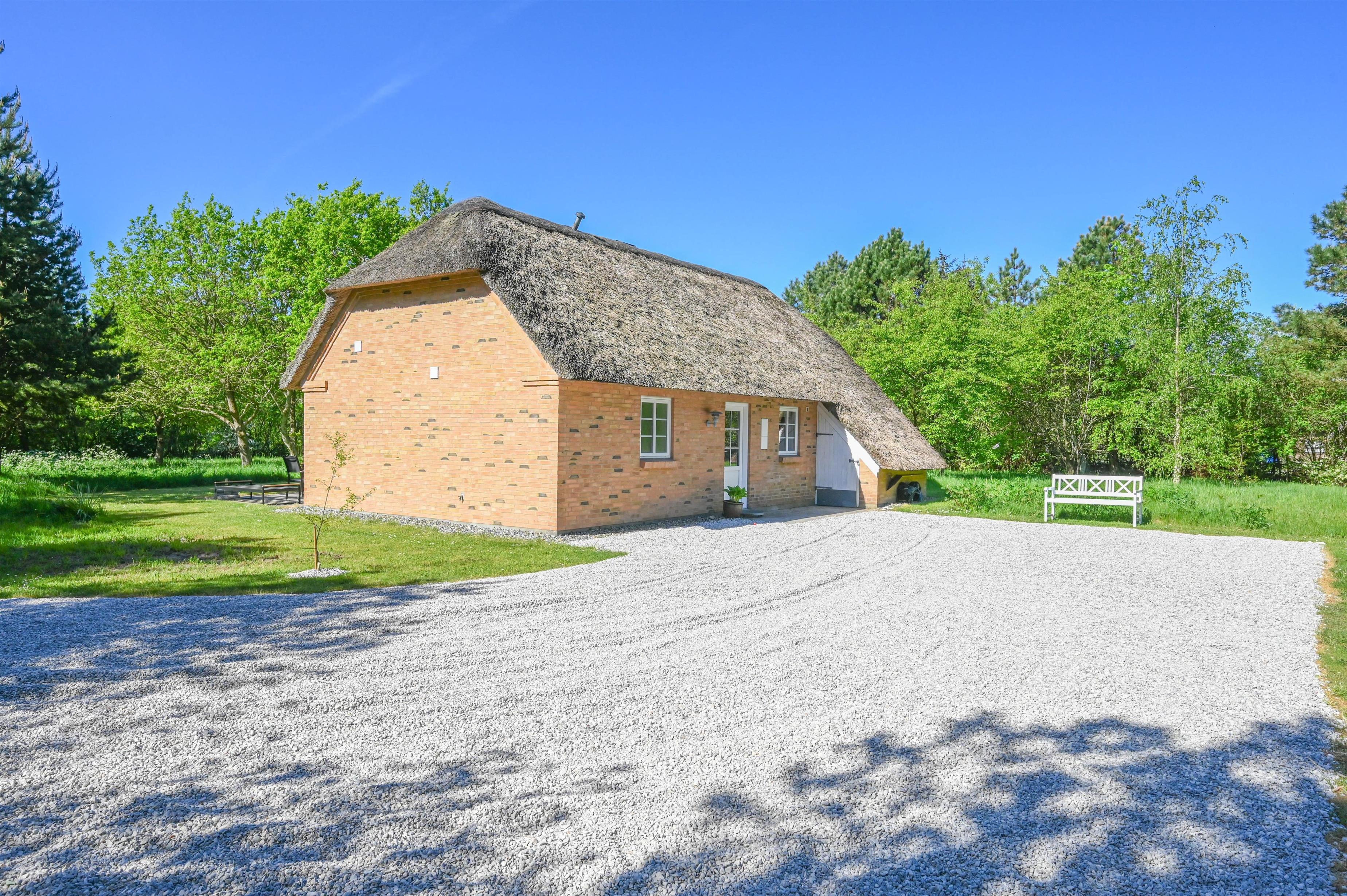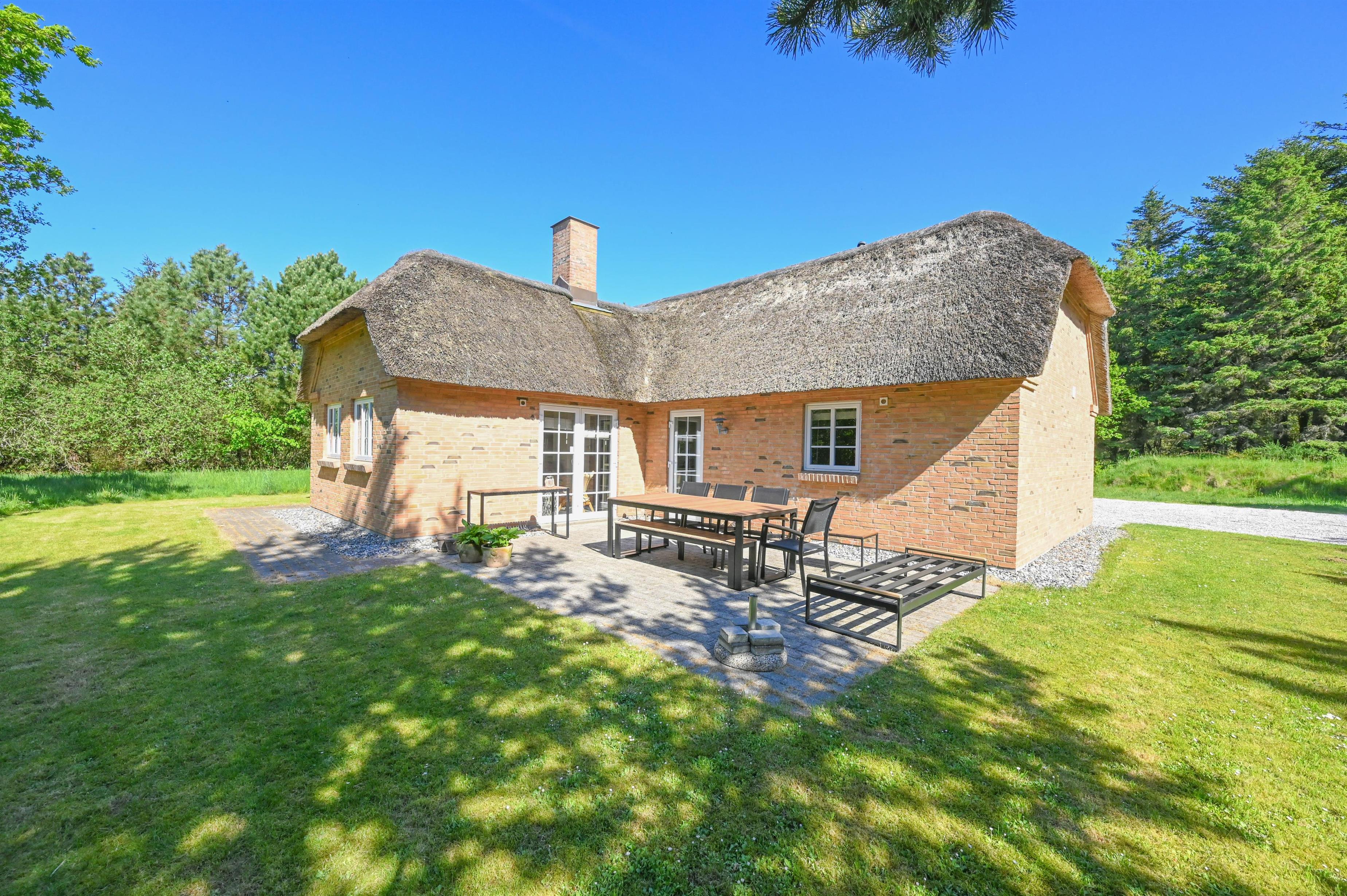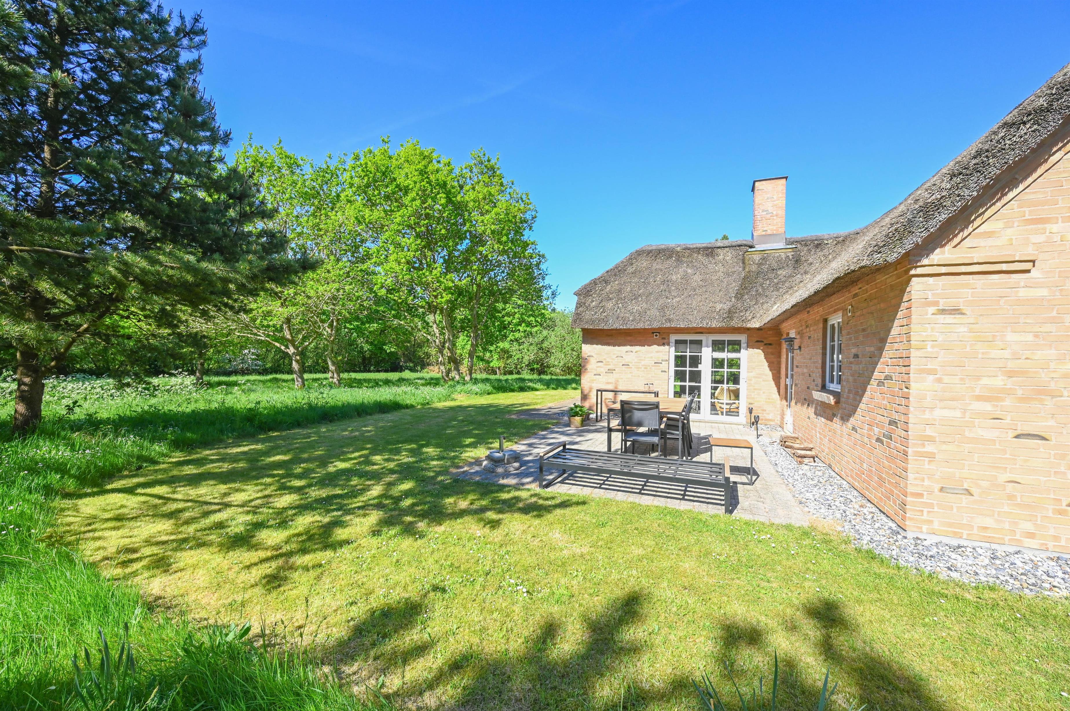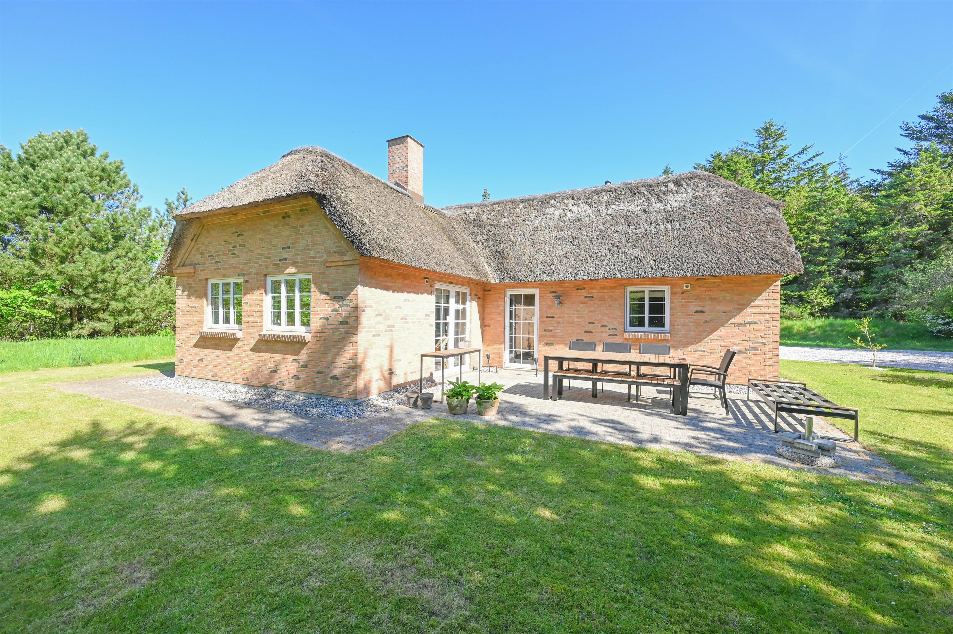 Das Haus ist aus Ziegelstein gebaut und mit einem Reetdach gedeckt – eine perfekte Kombination aus traditionellem dänischem Charme und modernem Komfort.