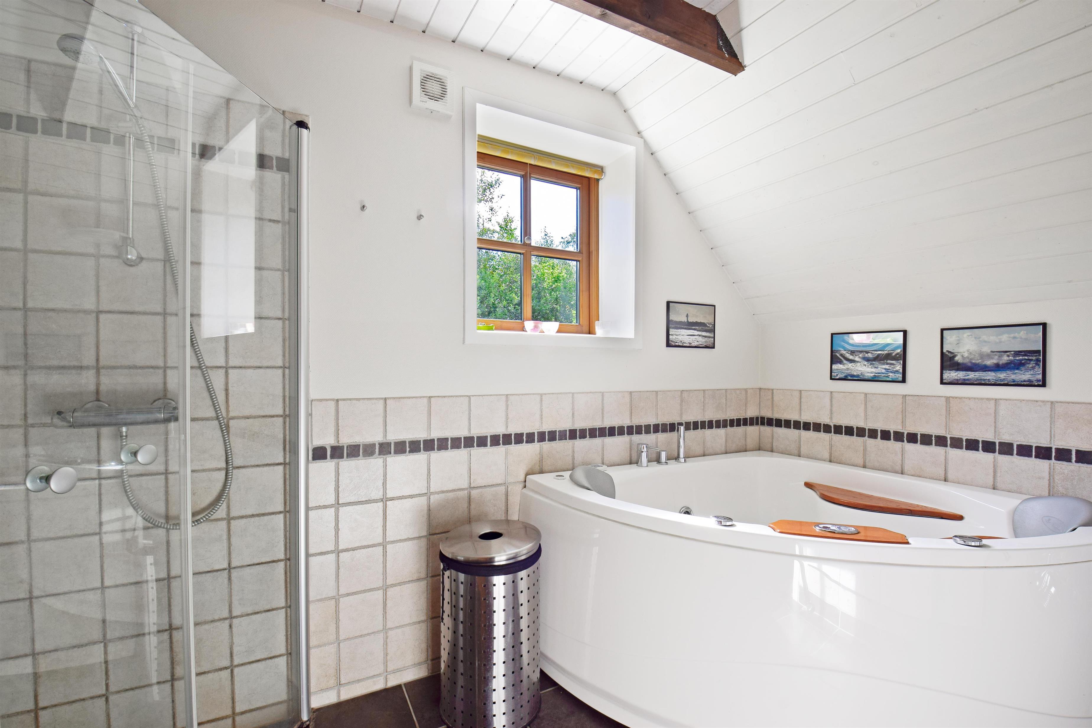 Das Haus befindet sich auf einem großen, abgeschlossenen Naturgrundstück, mit mehreren gemütlichen Terrassen und windgeschützten Ecken, in denen du ungestört die Ruhe genießen kannst.