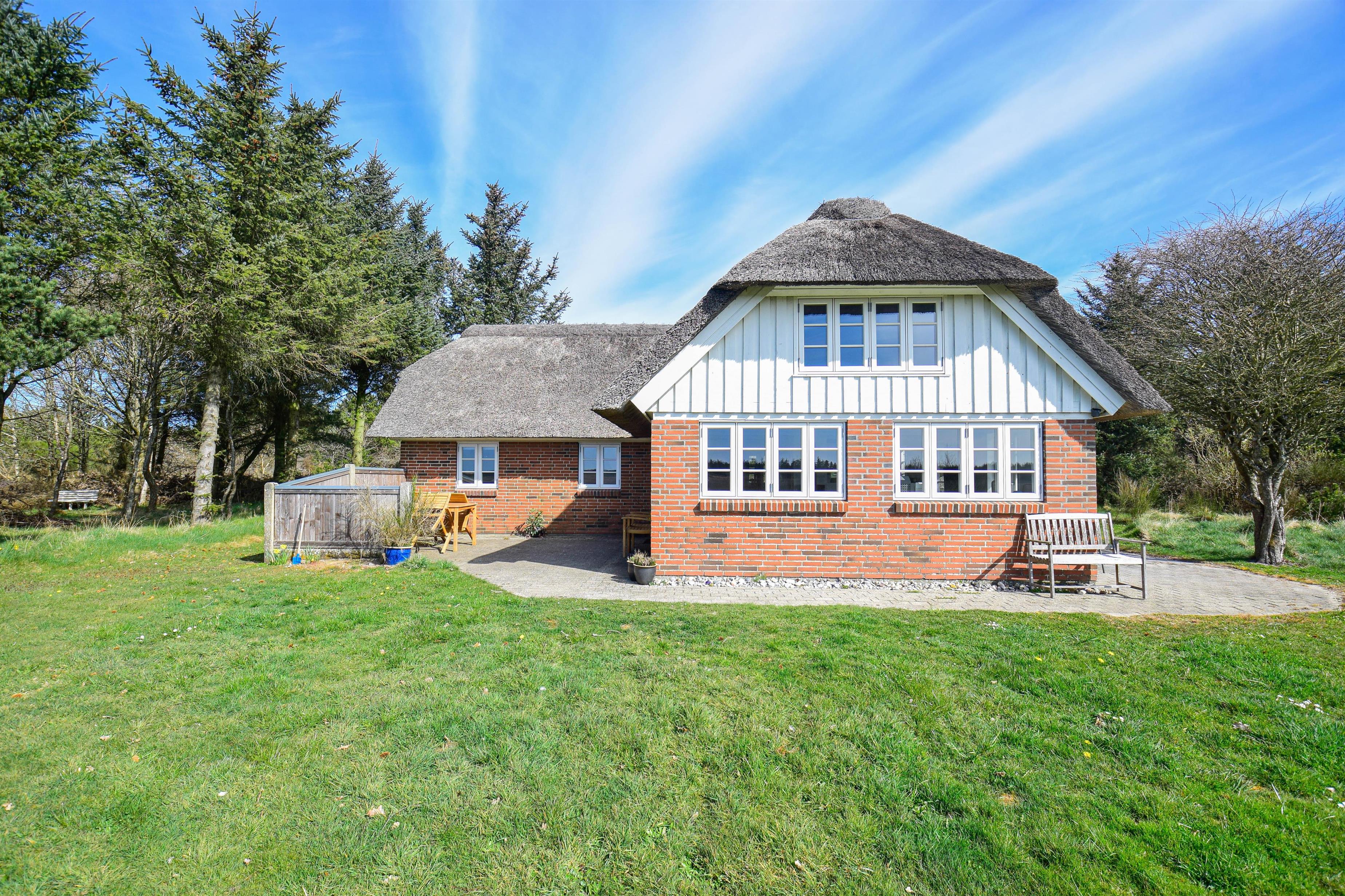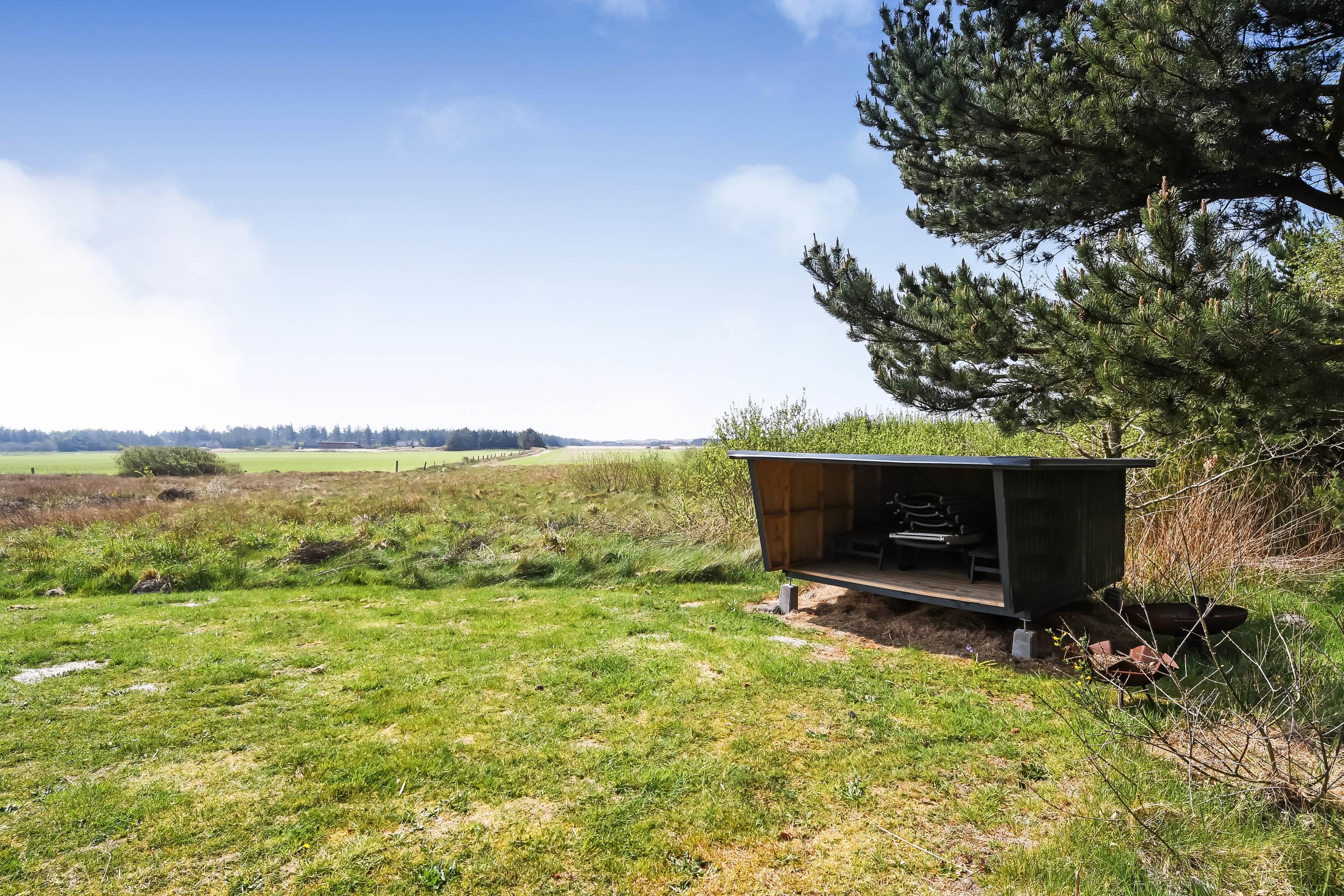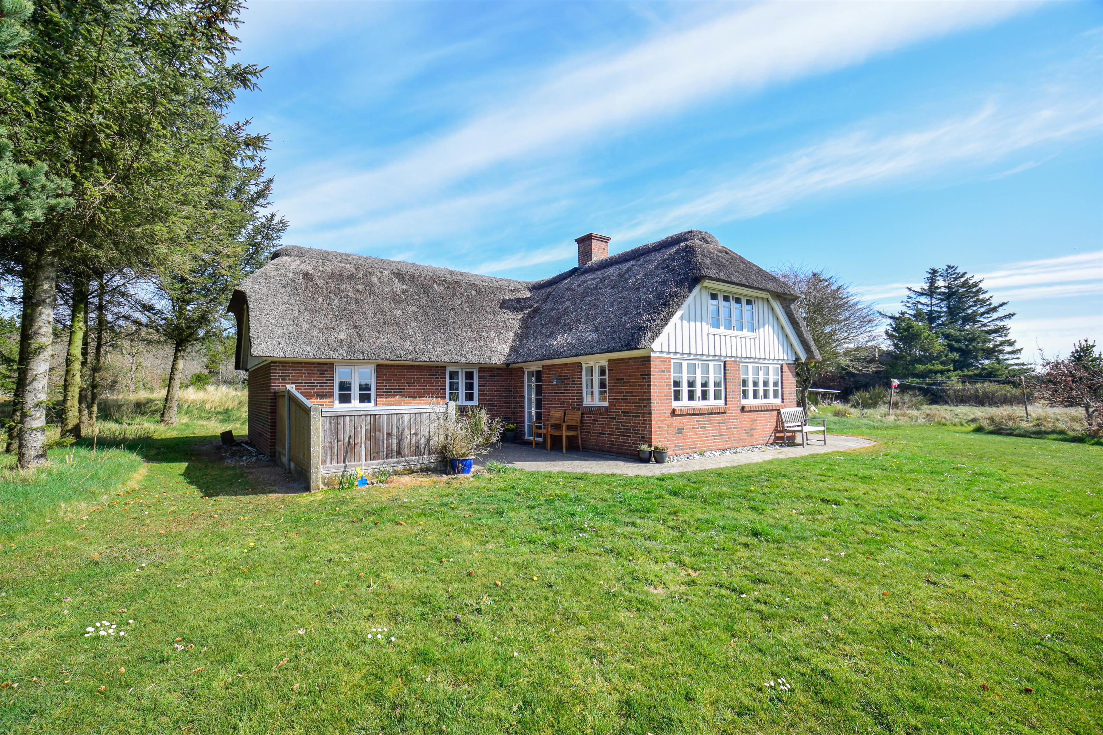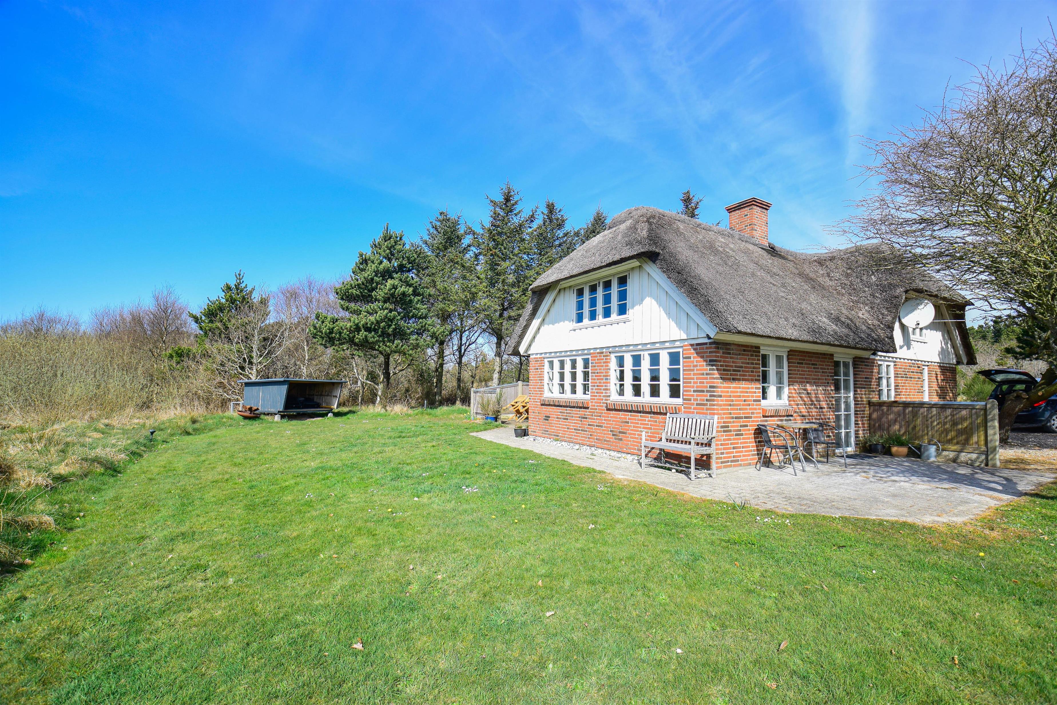 Das Haus steht auf einem 5.300 m² großen Naturgrundstück in ruhiger Lage – nur 1.000 Meter von der Nordsee entfernt und direkt am Rand der Husby Klitplantage, die mit markierten Wanderwegen, einem großen Badesee mit Grillplätzen und mehreren Waldspielplätzen aufwartet.