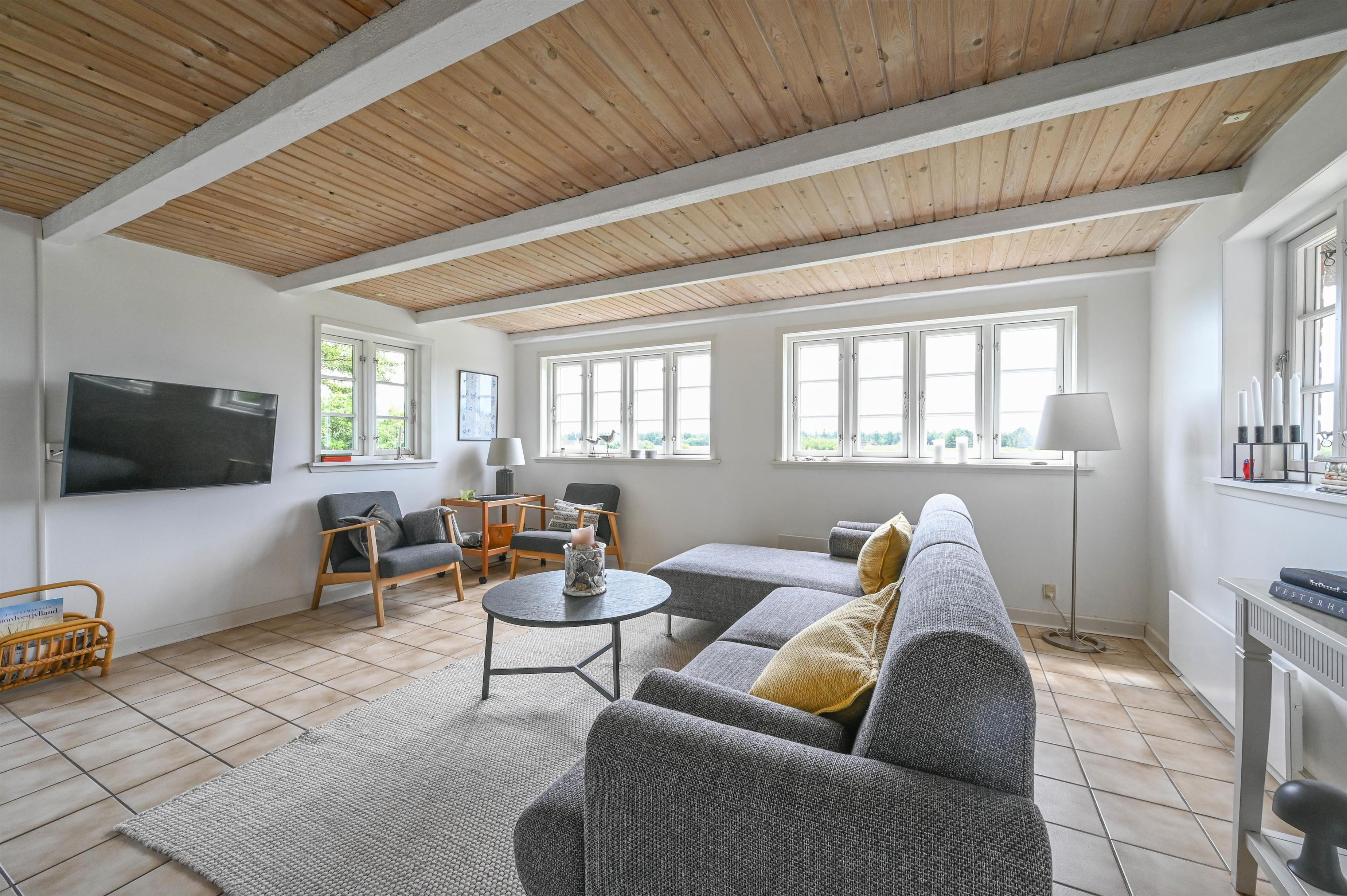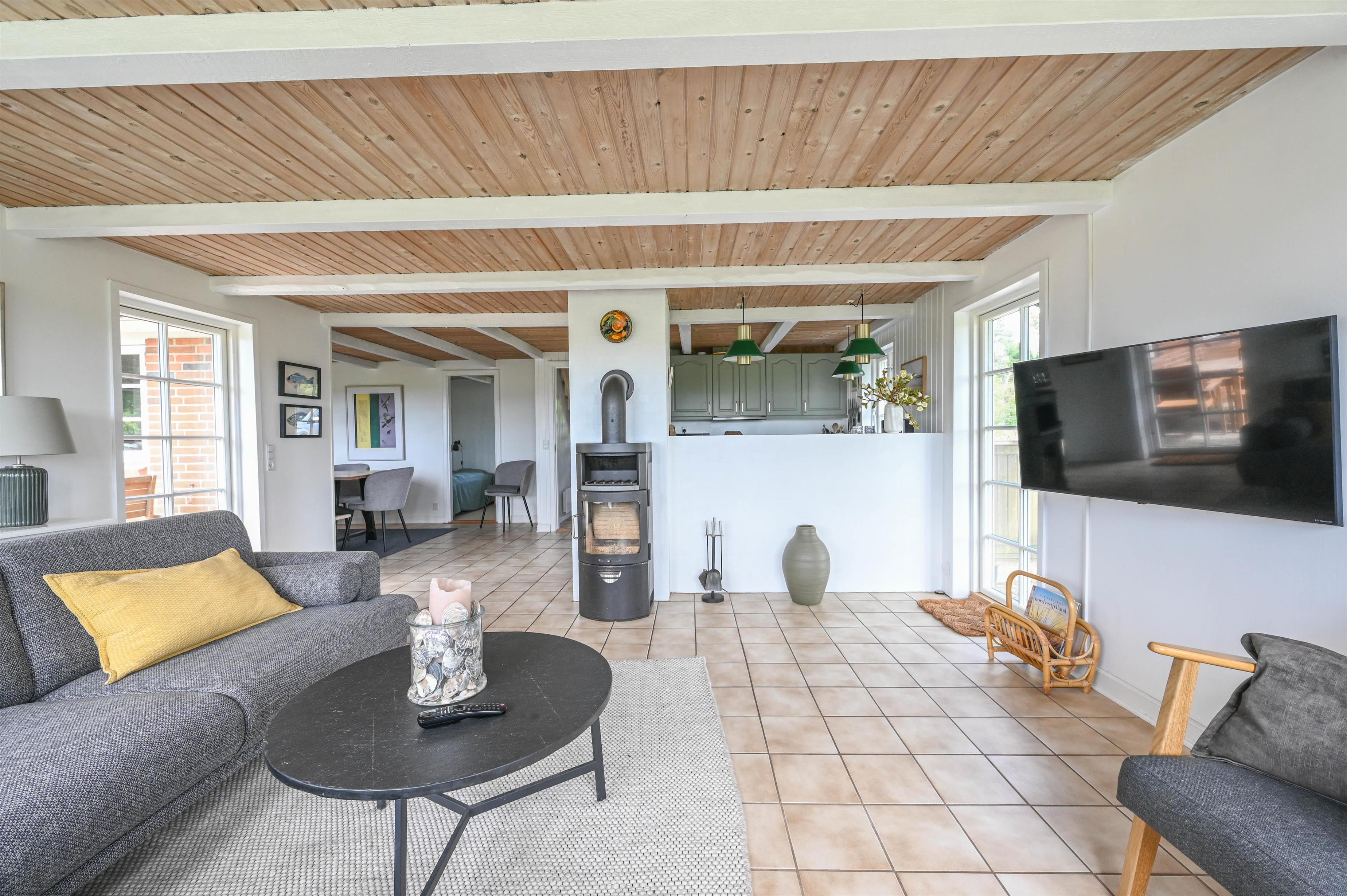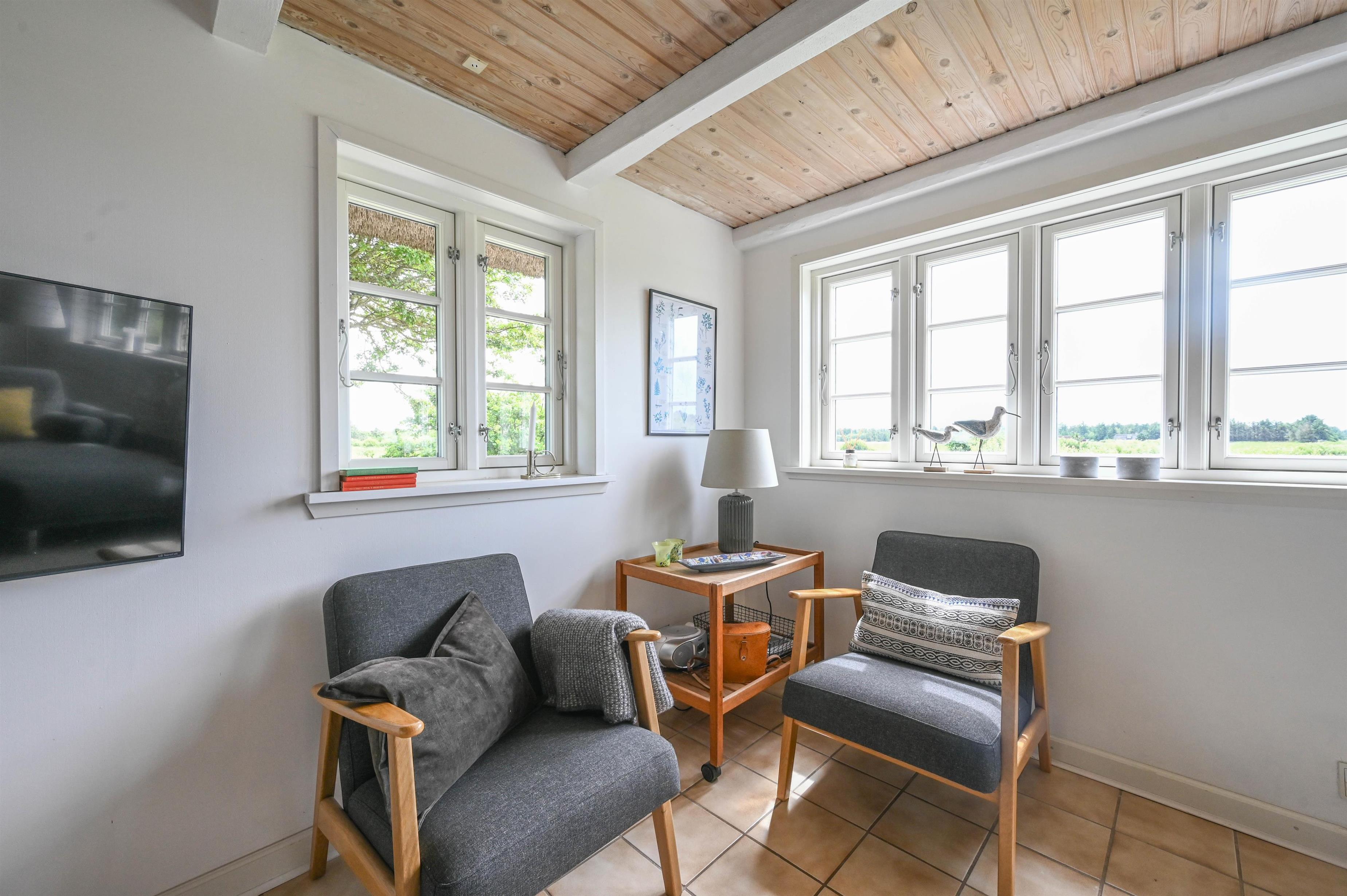Mit Blick über offene Felder, die Dünen und das Seezeichen von Vedersø Klit liegt dieses gepflegte und gemütliche Ferienhaus – umgeben von Ruhe und der wunderschönen westjütländischen Natur.