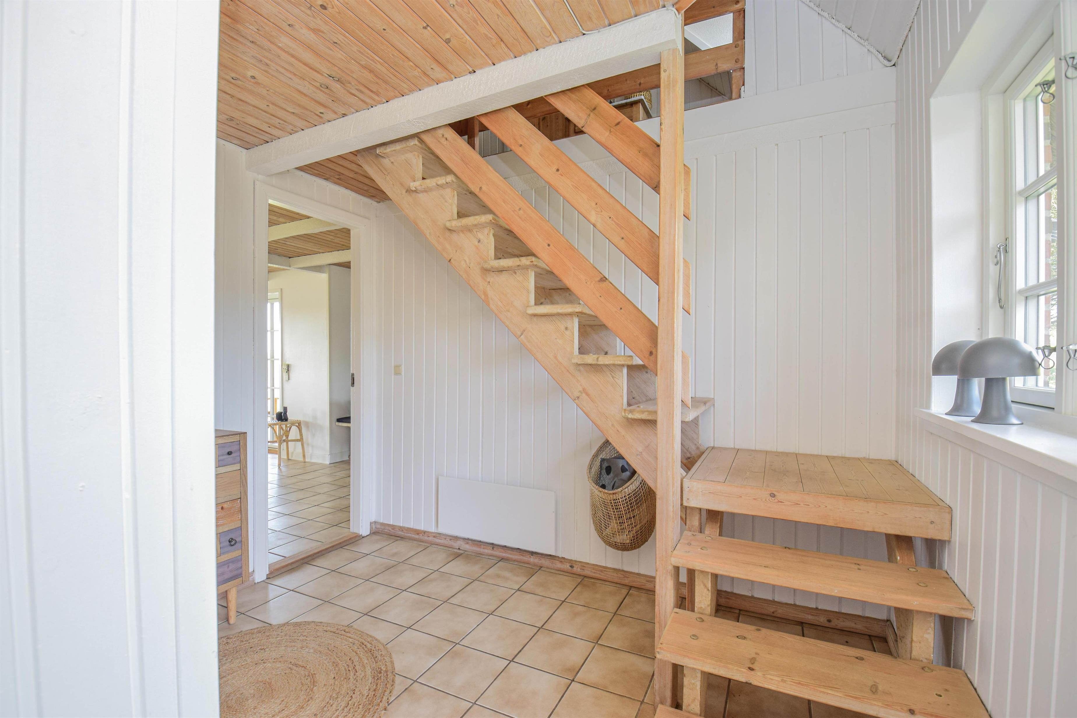 Eingang mit Treppe ins Obergeschoss und Platz für Schuhe und Jacken