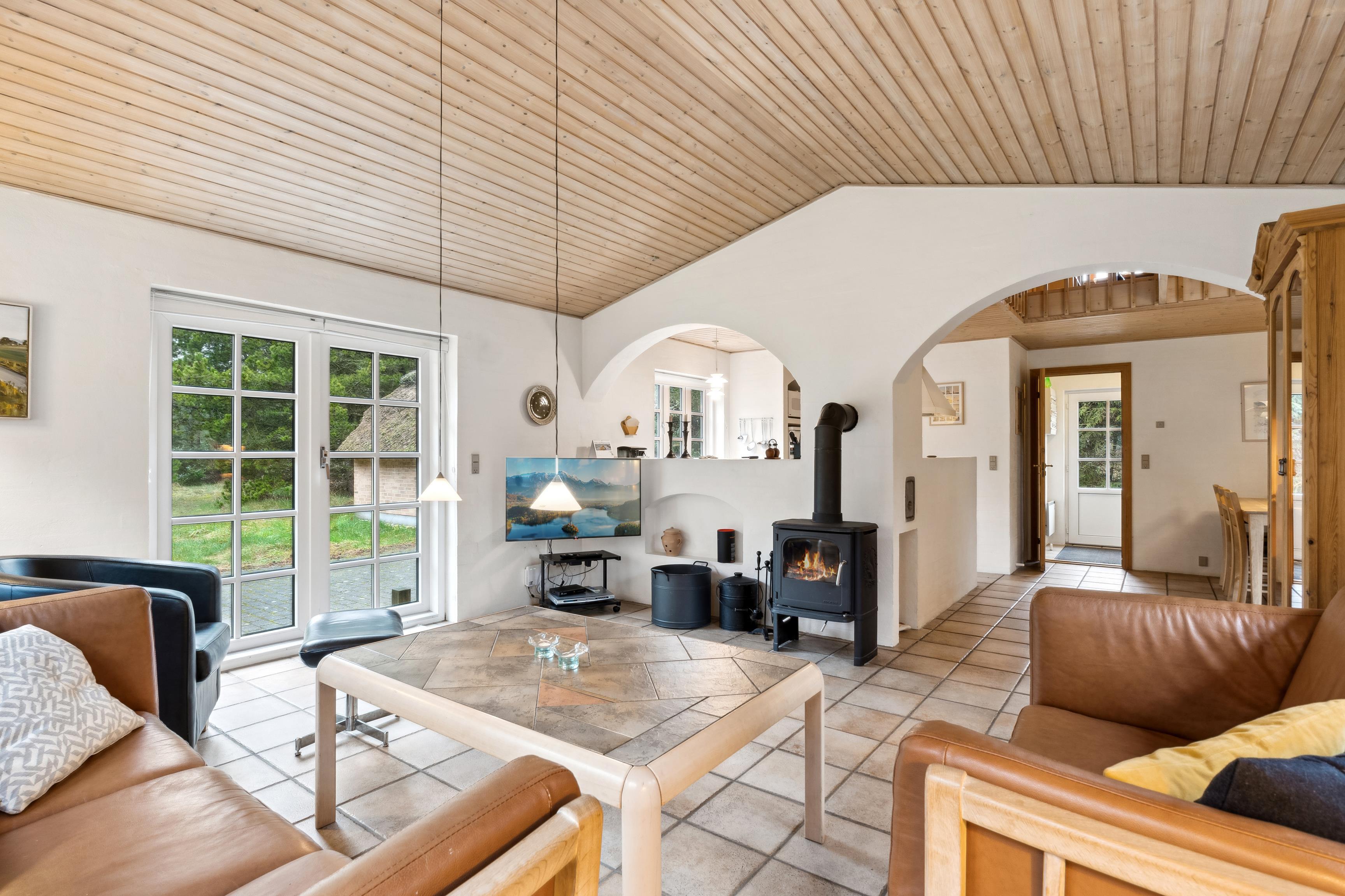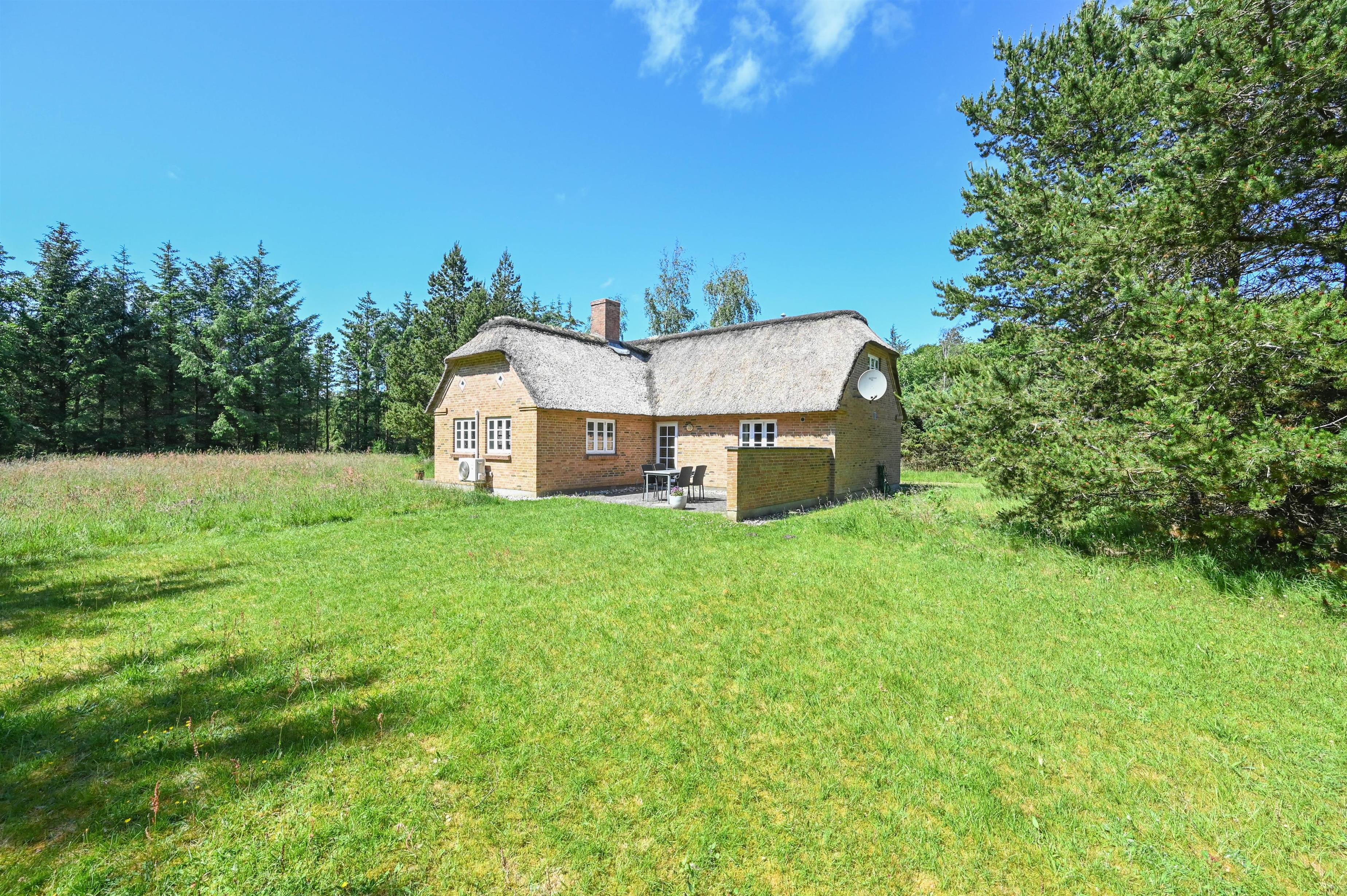 Direkt am Rand der Husby Klitplantage, umgeben von Bäumen, Vogelgezwitscher und frischer Waldluft, liegt dieses charmante Ferienhaus auf einem teilweise gepflegten Naturgrundstück.