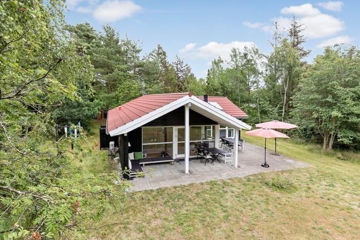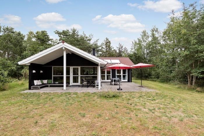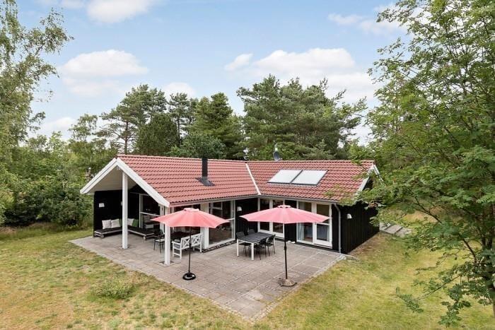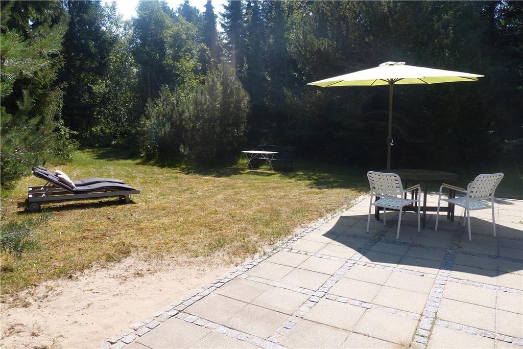 Der Garten ist sichtgeschützt und von hohen Bäumen umgeben, mit ausreichend Platz für Spiel und Aktivitäten. Die große Terrasse bietet dir die Möglichkeit, sowohl unter dem Vordach als auch im Freien zu sitzen. Die Liegestühle könnt ihr den ganzen Tag über nach der Sonne ausrichten und nach einem Bad im Meer genießt ihr es, den Sand mit der solarbetriebenen Dusche abzuspülen. Das Haus in Winkelform liegt an einer ruhigen Sackgasse und hier, so nah am Strand, gibt es viele Möglichkeiten für Spaziergänge und Fahrradtouren.