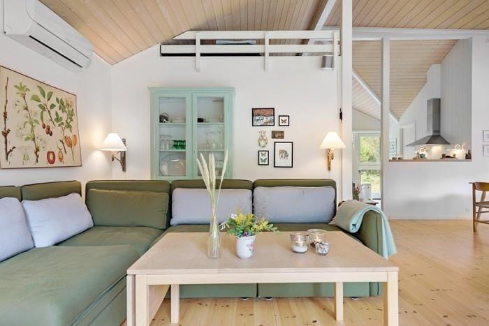 In diesem gut eingerichteten Ferienhaus mit hohen Decken und Spielbereich für Kinder auf dem Hems (Dachboden) habt ihr viel Platz. Frühaufsteher können morgens ihre erste Tasse Kaffee auf der Terrasse genießen, bevor der Rest der Familie aufwacht. Das Wohnzimmer ist ausgestattet mit schönen großen Panoramafenstern zur Terrasse und es gibt genug Platz für euch alle. Auch von der Küche aus gibt es eine Tür zur Terrasse - so ist es leicht, das Abendessen auf der Terrasse zu servieren.