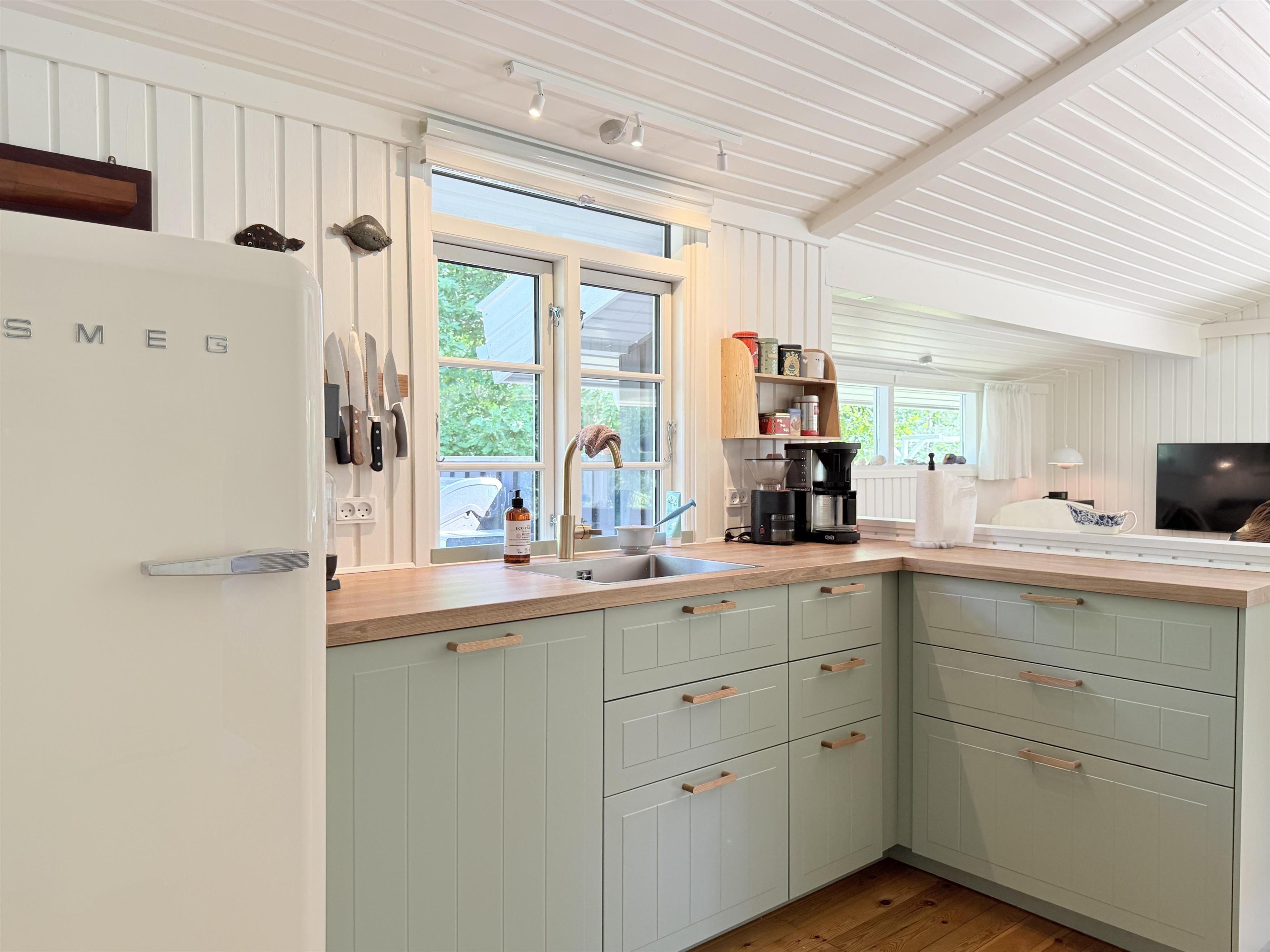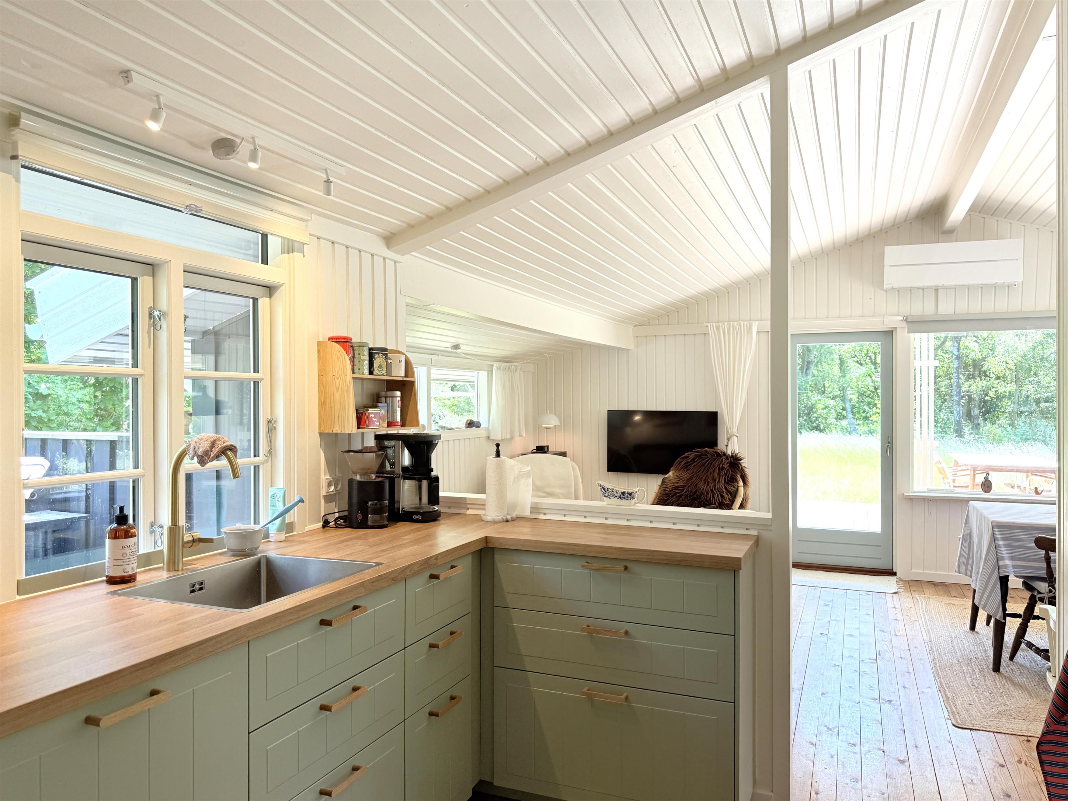 Neu bei Team Læsø. Schönes, gepflegtes Ferienhaus in naturschöner Lage und nur wenige Gehminuten vom vielleicht schönsten Strand der Insel, dem Kongestranden, entfernt. Sobald Sie das Haus im Cypresvej 5 betreten, spüren Sie sofort die richtige Sommerhausatmosphäre. Die Wohnküche verfügt über eine schöne, neue Küche mit gemütlicher Sofaecke und einen schönen, hellen Raum mit mehreren Ausgängen zur neuen, großen Holzterrasse. Das Haus hat drei Schlafzimmer, eines mit Doppelbett und zwei mit geräumigen Einzelbetten. Ein schönes Badezimmer mit Dusche. Das Haus liegt auf einem schönen, großen Naturgrundstück, und auf einer der Terrassen finden Sie immer ein Sonnenplätzchen. Ein schöner Gasgrill und mehrere Gartenmöbel stehen zur Verfügung. Südlich und mit dem Fahrrad erreichbar liegt das fantastische Naturgebiet mit der Sandbank Stokken. Hier können Sie durch das flache Wasser waten und am kinderfreundlichen weißen Sandstrand schwimmen. Ca. 2,5 km zum gemütlichen Hafen von Vesterø mit Restaurants, Fischhändlern und guten Einkaufsmöglichkeiten.