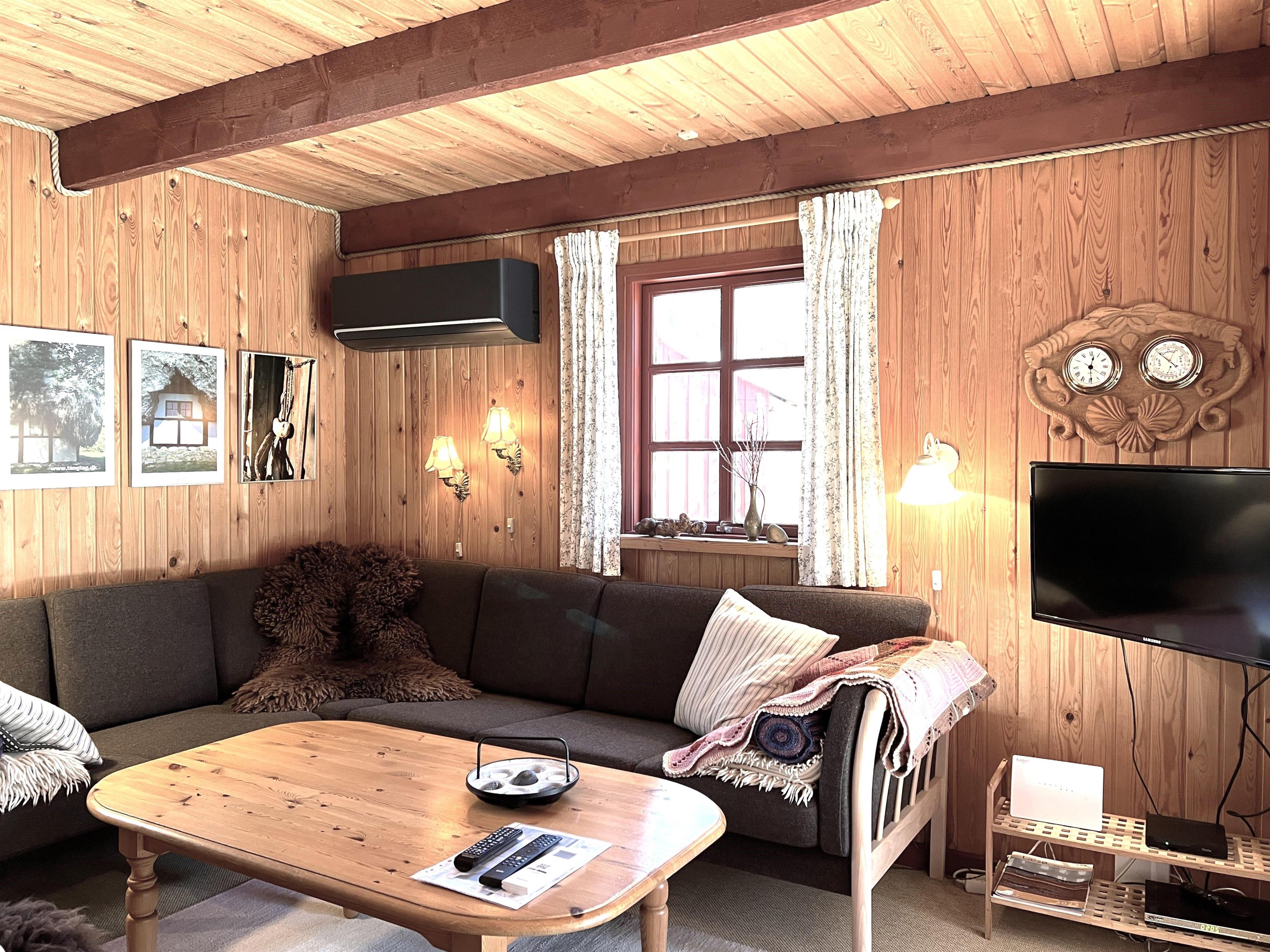 Das Haus verfügt über eine schöne Wohnküche mit Essbereich und im dazugehörigen, geräumigen und gemütlich eingerichteten Wohnzimmer werden Sie sich schnell wohlfühlen. Schönes Badezimmer mit Dusche. Alle drei Schlafzimmer verfügen über Doppelbetten. Es gibt Holzterrassen mit Gartenmöbeln und Grill und auf dem großen Grundstück gibt es eine wunderschöne Feuerstelle mit Platz für alle. Hier können Sie die Sommerabende einfach bei einem Lagerfeuer unter den wunderschönen Eichen genießen. Durch die Lage in der ruhigen Gegend am Kongestranden spüren Sie die echte Ferienhausatmosphäre, wo Sie nah am Strand wohnen und das Meer hören können. Es geht um. 1,5 km. zum Einkaufen, für Restaurants, den lokalen Fischhandel und die angenehme Hafenumgebung in Vesterø.