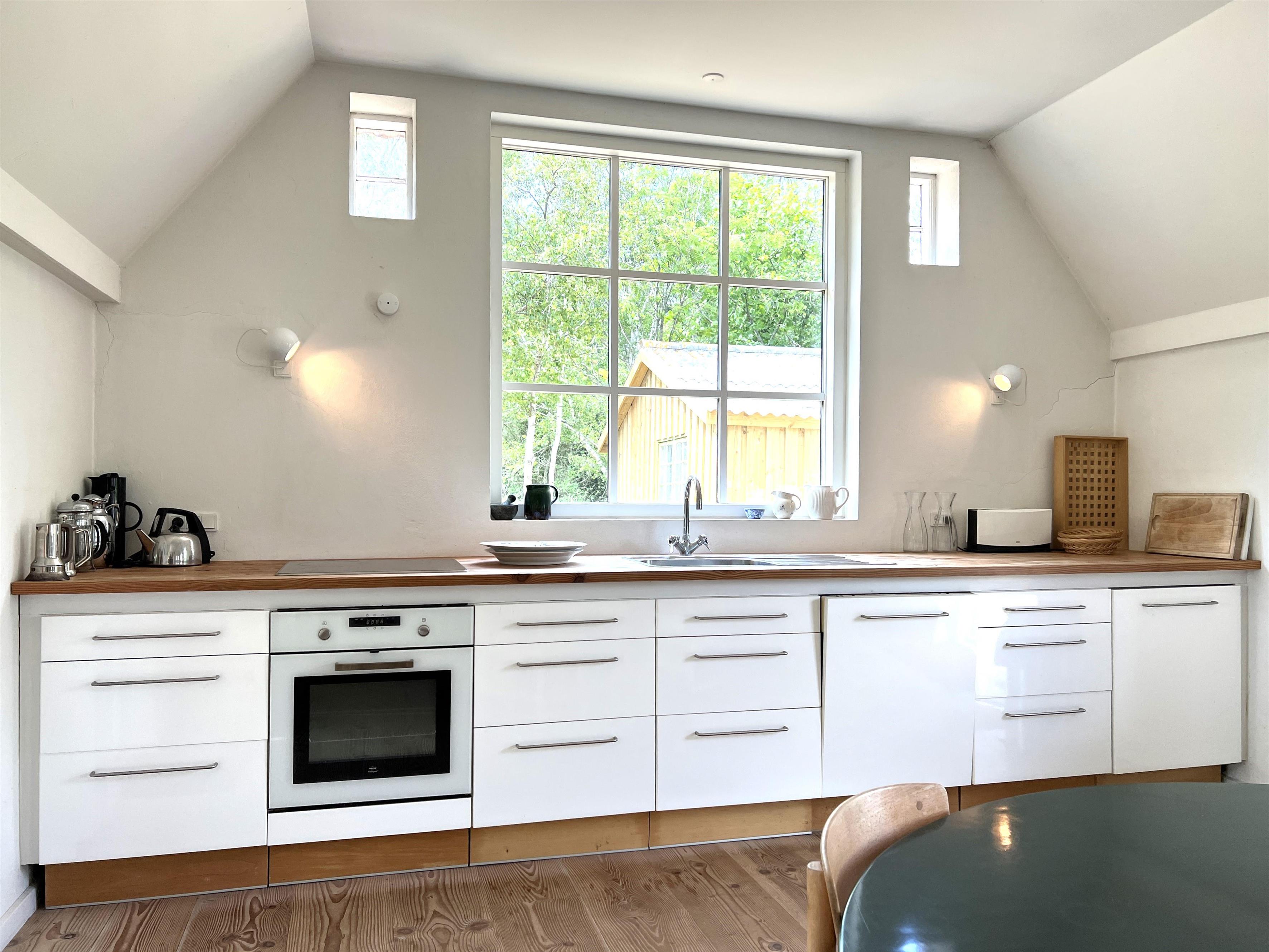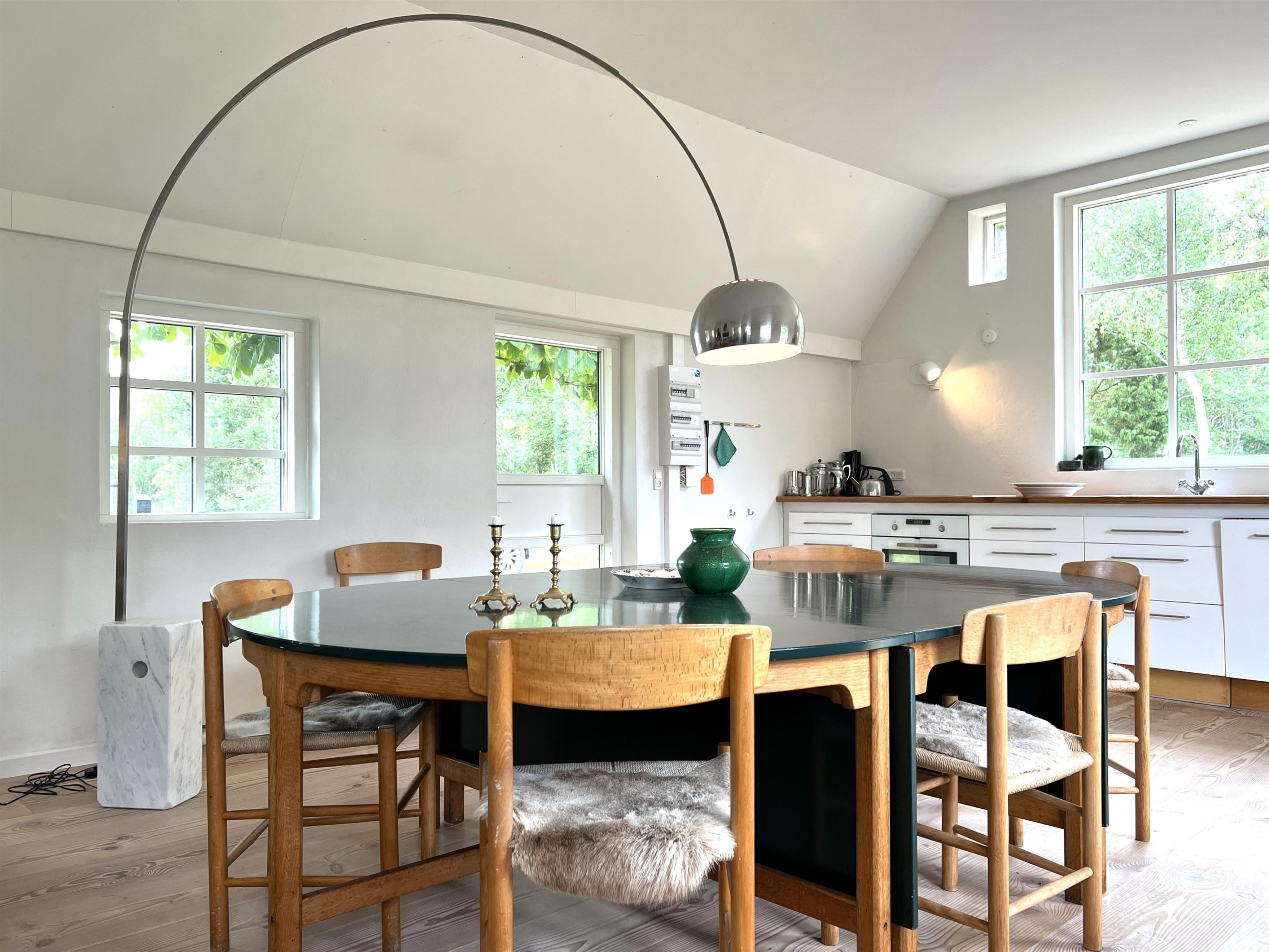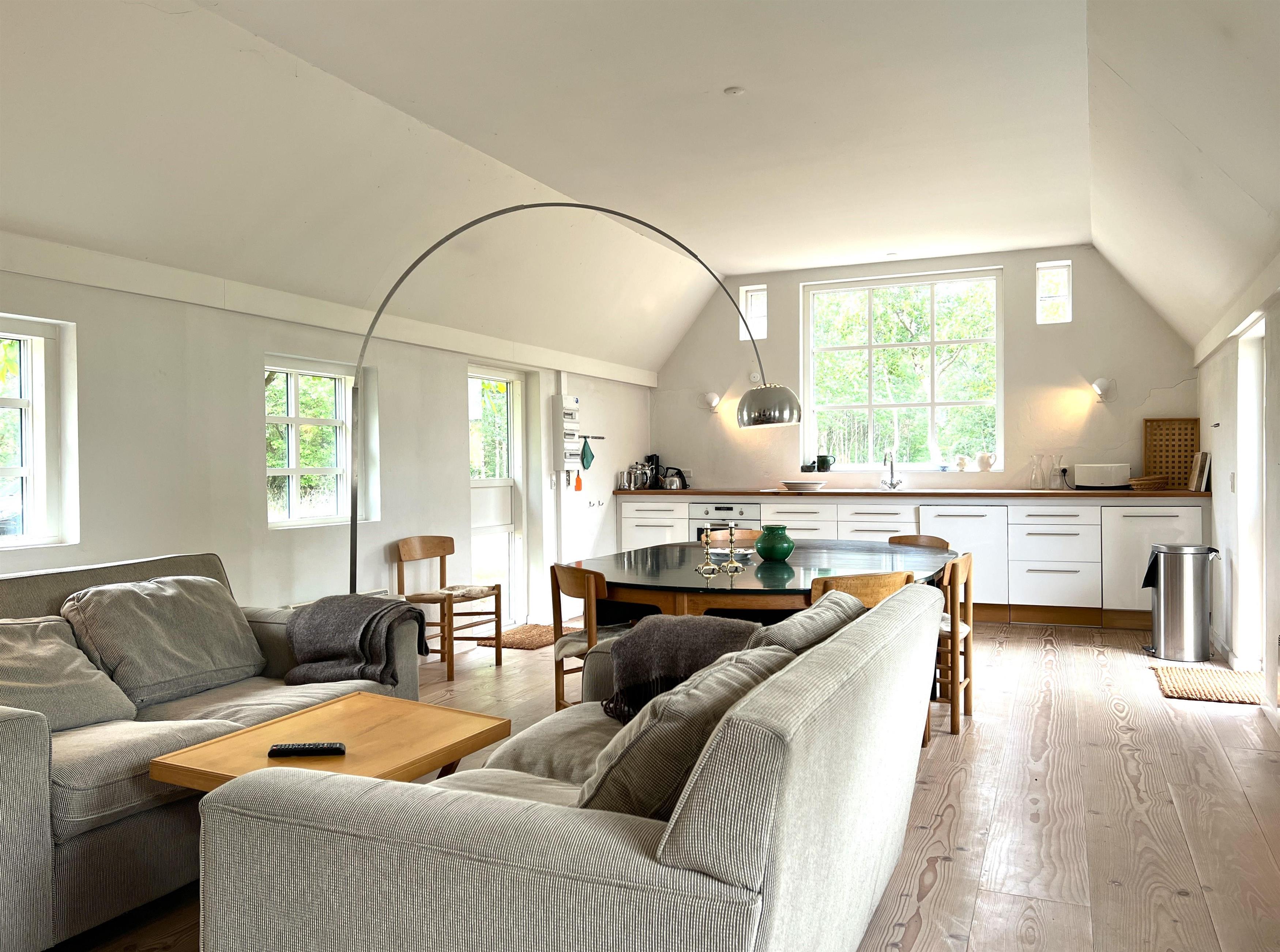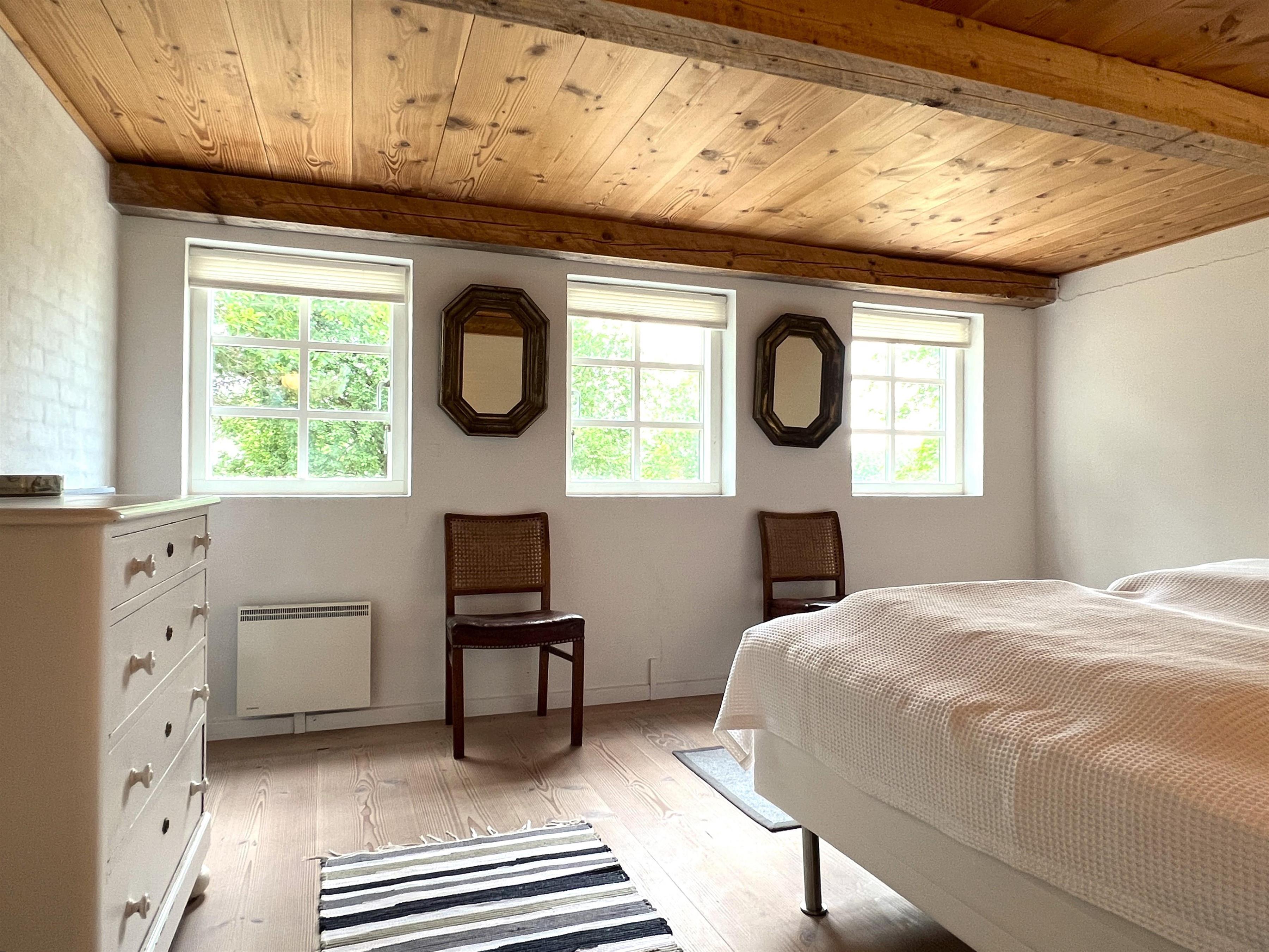 Traumhaft schönes und sorgfältig renoviertes Bauernhaus, bevor der Innenarchitekt sein Bestes gegeben hat. Der Standort liegt in einer malerischen Umgebung mit Blick auf grüne Wälder und Felder und nicht weit vom wahrscheinlich besten Badestrand der Insel, Kongestranden, entfernt. Im Nissebakkevej 1 finden Sie vom ersten Moment an die besondere Ruhe von Læsø. Hier ist er für Familien sowohl drinnen als auch draußen ein Wunderschöner Platz und ganz allein auf dem großen, privaten Naturgrundstück. Das gleiche Haus hat zwei charmante Enden und kleine Zimmer mit vielen kleinen Details. Große, moderne Küchen bei Verbindung mit Ess- und Wohnzimmer und eingebautem Kamin bei Sofaecke. Im anderen Flügel des Hauses befinden sich drei große Schlafzimmer, zwei mit Doppelbetten und eines mit einem Einzelbett. Dieses eine Schlafzimmer stand in offener Verbindung mit dem langen Flur, den er mit Schränken mit recht viel Platz versah. Schönes, modernes Badezimmer mit Waschmaschine und Trockner. Draußen ist der Hof mit Möbeln ausgestattet, wo sie das Reichliche Tierleben beobachten können. Am Ende der kleinen Schneestraße finden Sie Kongestranden. Dort können Sie Fahrräder abstellen und in die gemütliche Hafenumgebung des Vesterø-Hafens mit Fischhändlern, Einkaufsmöglichkeiten, Restaurants und einem Supermarkt fahren.