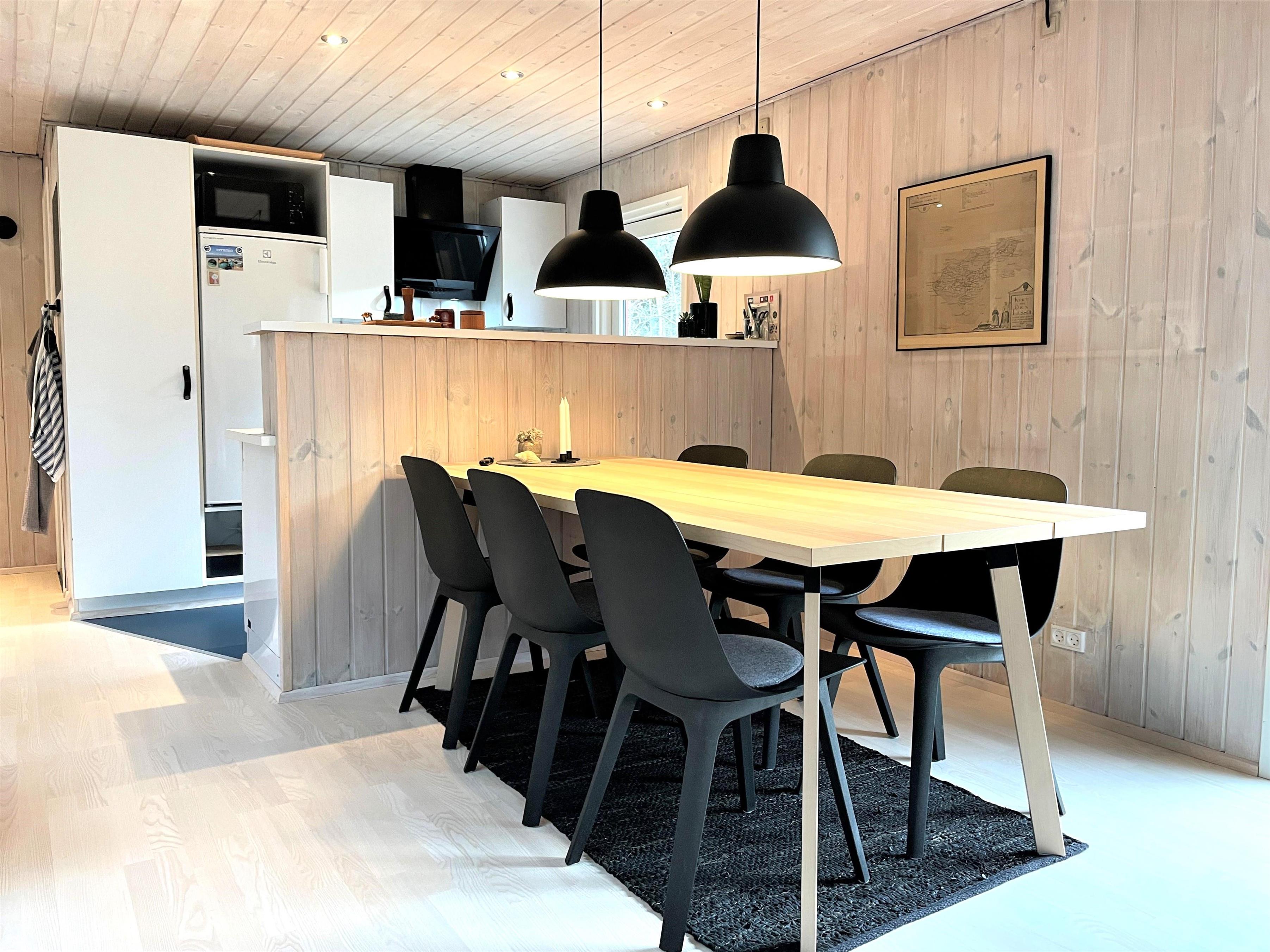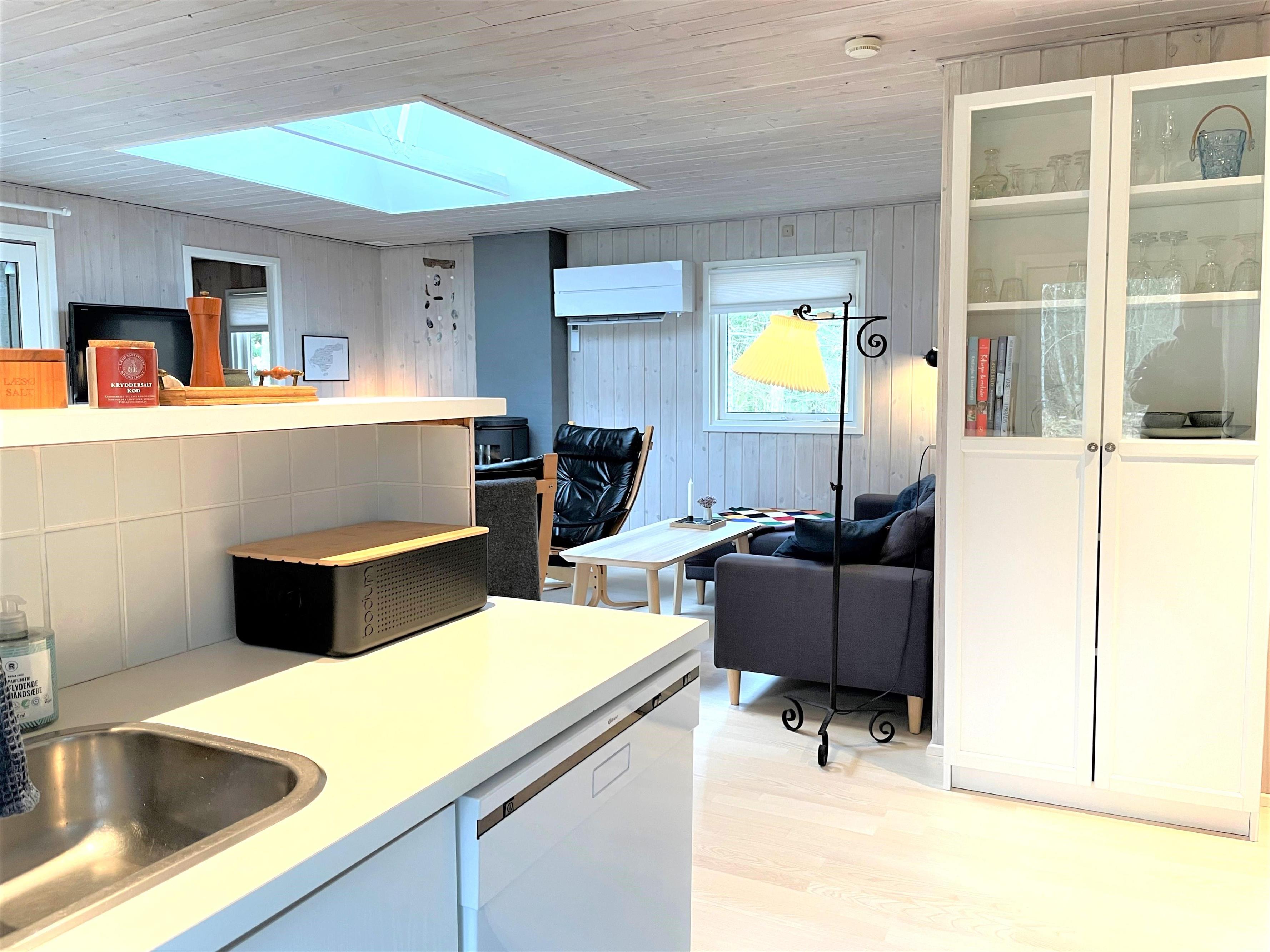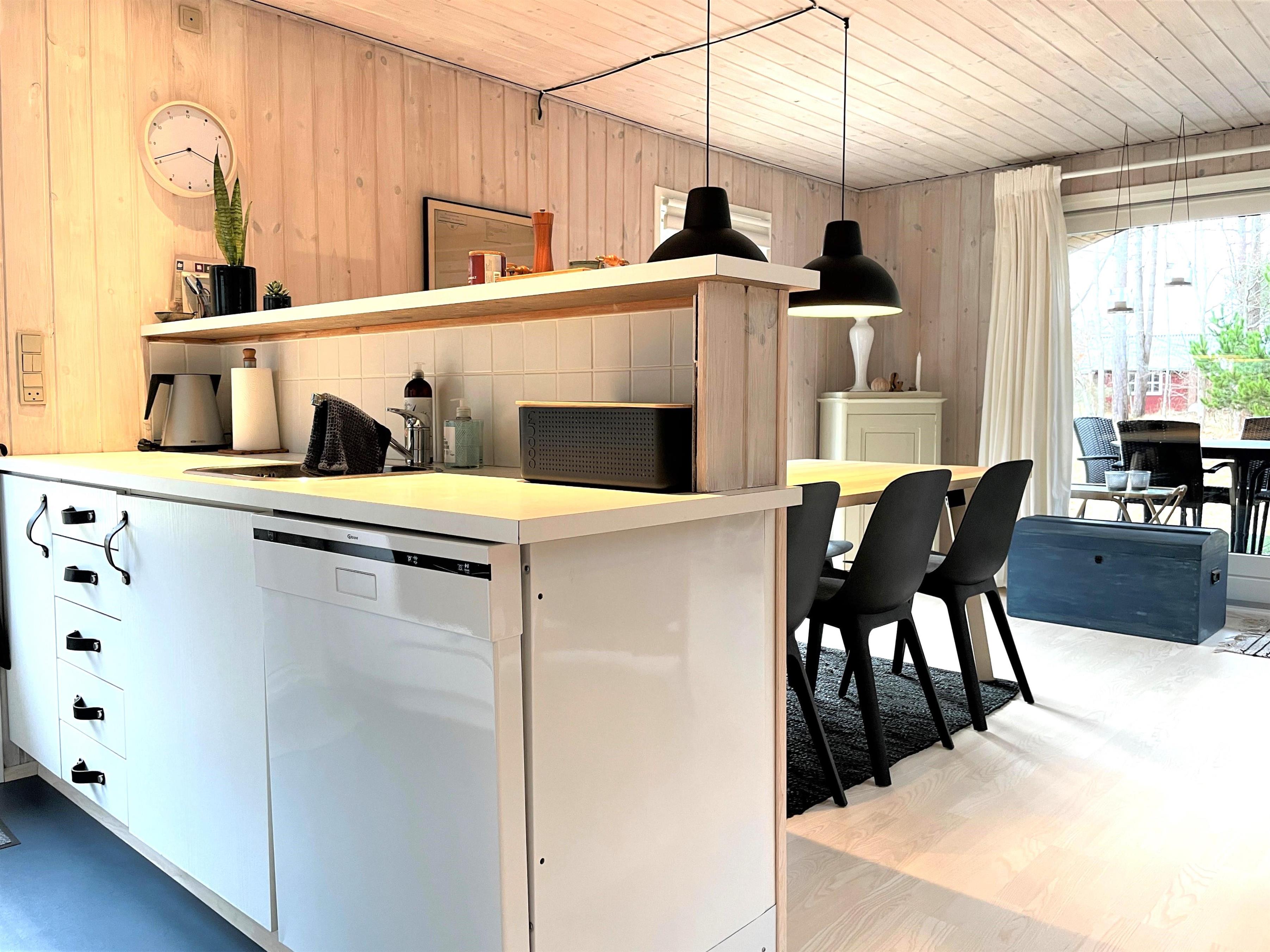 Ein richtig schönes neu renoviertes Sommerhaus, an einer ruhigen Seitenstrasse zum Kongevejen und Kongestranden, eines der schönsten Bade-Strände auf Læsø. Das Haus hat eine gut ausgestattete Küche, in Verbindung mit einem gemütlichen Essplatz. Drei gute Schlafzimmer, wo zwei mit Doppelbett, und eines mit Hochbett ausgestattet ist. Ein ganz neues Badezimmer mit Bodenheizung. In diesem Haus vernimmt man schnell die geschmacksvolle Einrichtung, und wo man die Möglichkeit hat vollkommen abzuschalten. In der Stube hat es grosse Dachfenster die viel Licht ins Haus lassen. Zudem haben sie von der Stube einen direkten Ausgang zur schönen 50 kvm grossen Holzterasse, wo sich mehrere Sets mit behaglichen Gartenmöbeln befinden, und der Grill schaft eine gemütliche Sommerhausatmosphäre. Schöner Unterstand zur Nutzung. Hier kann auch der Terrassenheizer zum Einsatz kommen. Schöner Unterstand auf dem Gelände und Außendusche.