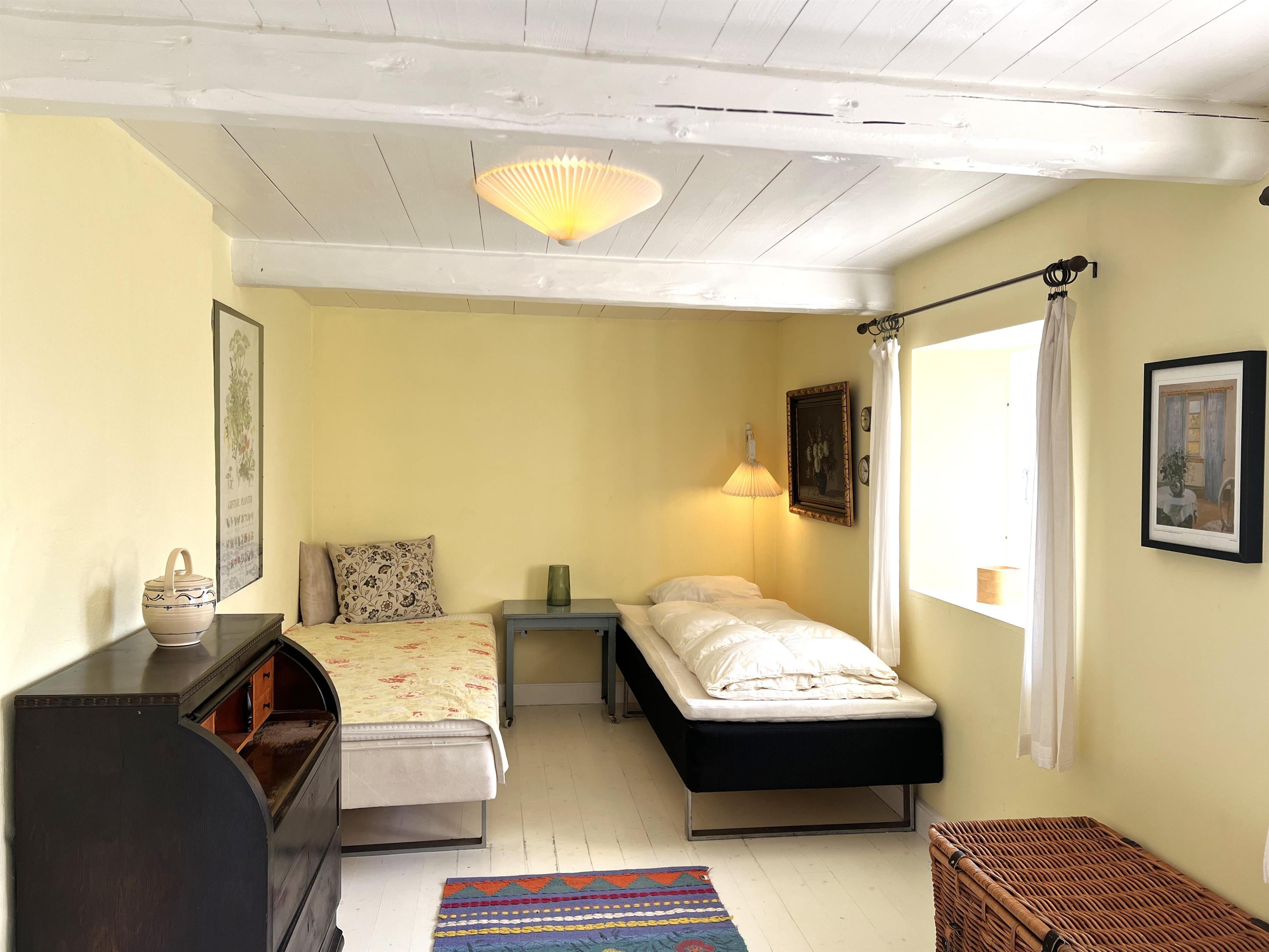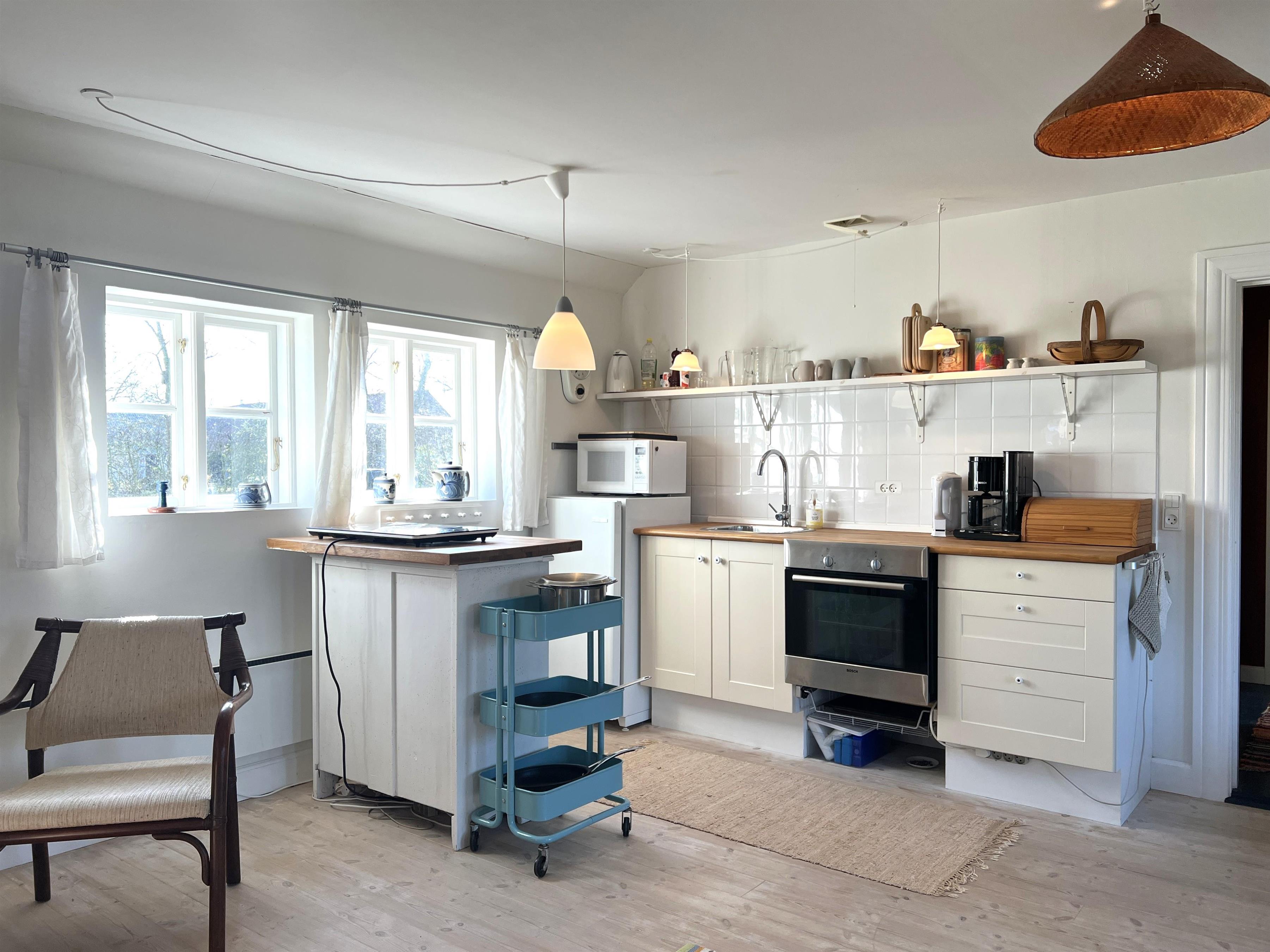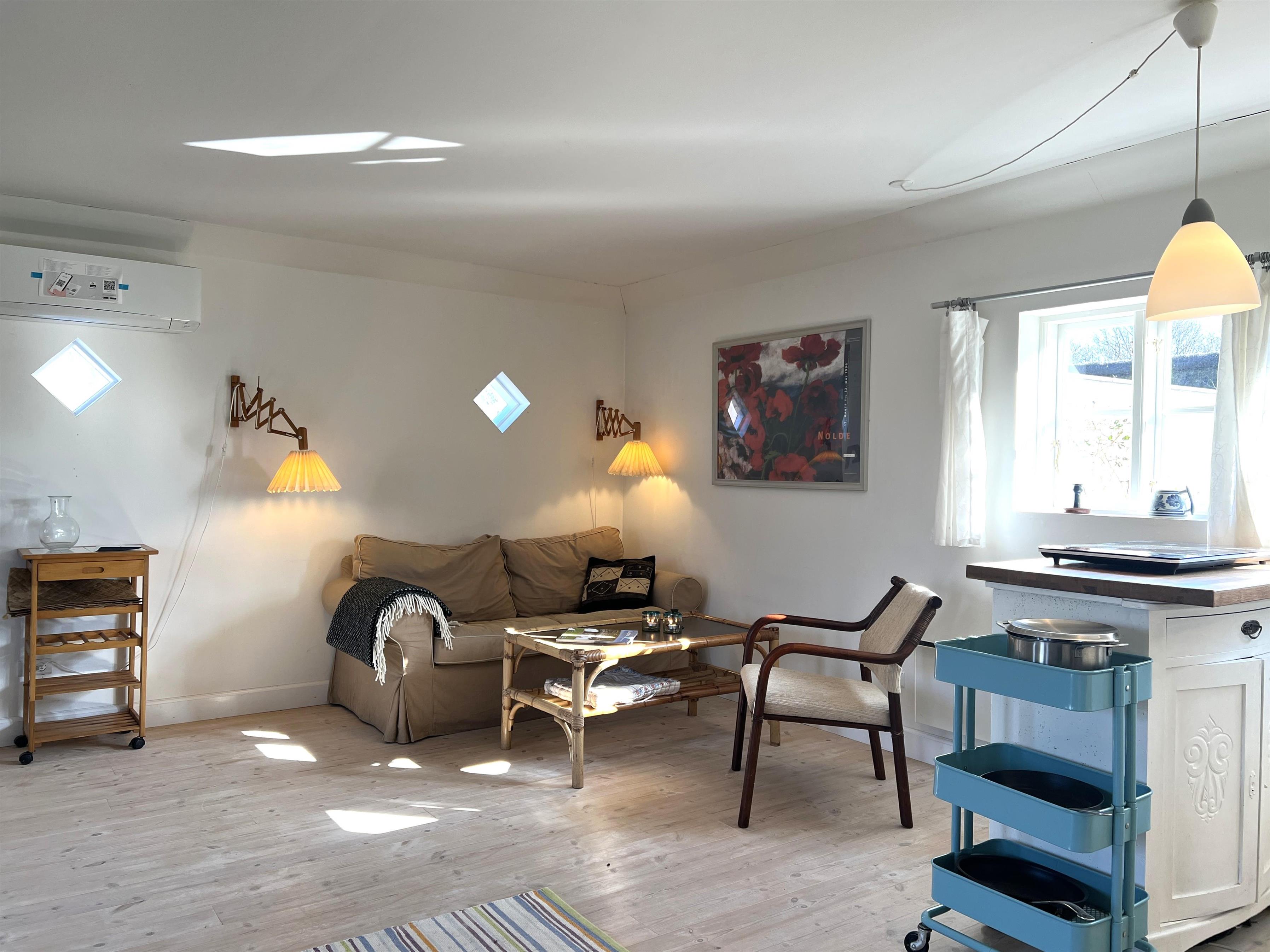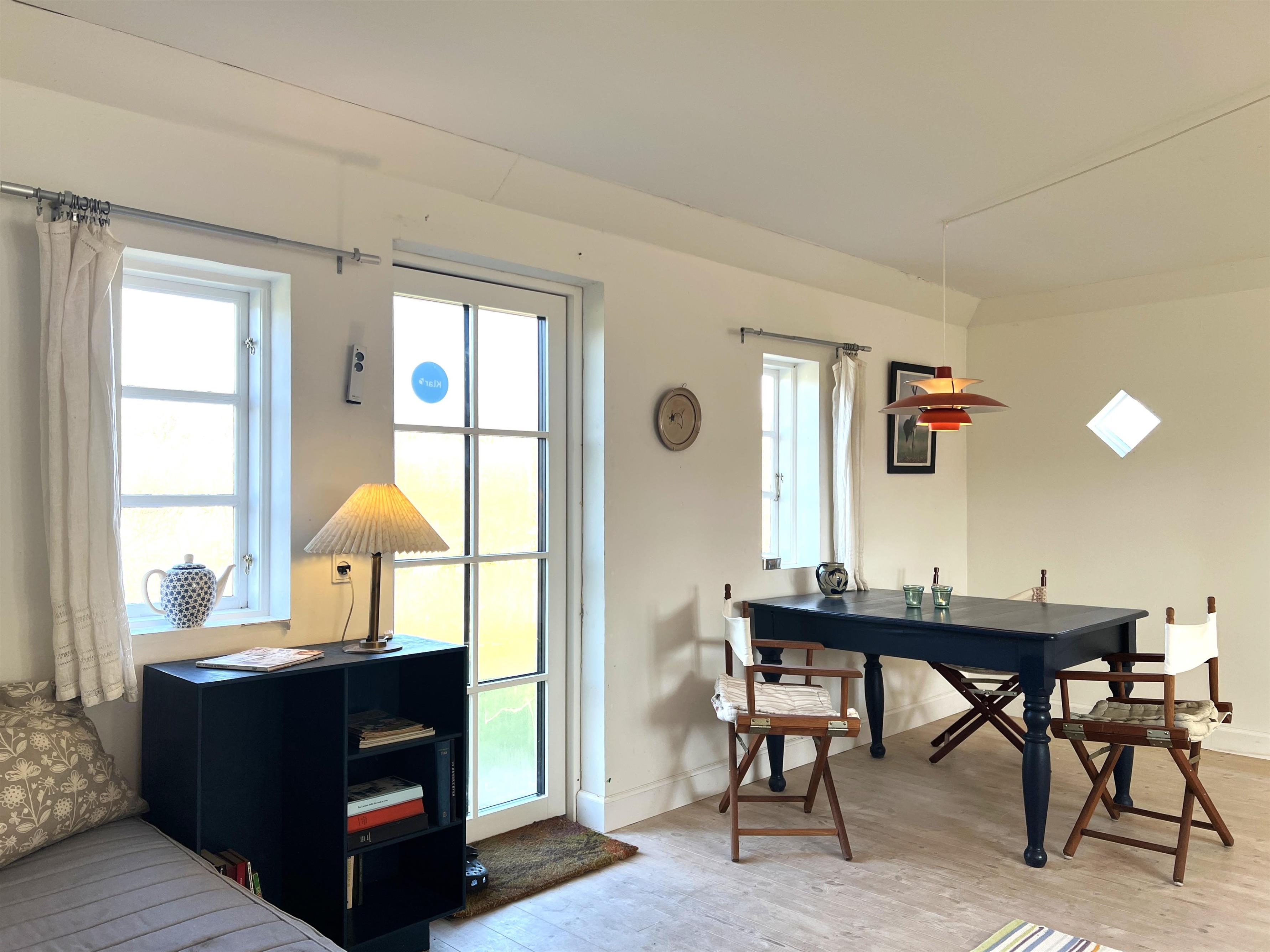 NEU beim Team Læsø: Dieser alte Læsøgård mit zwei Längen ist einer der ältesten in Læsø. Hier bietet sich die Gelegenheit für ein wunderbares Urlaubserlebnis für große Familien – oder vielleicht für zwei Familien, die gerne in einer ruhigen, malerischen Gegend leben möchten. Der Hof liegt idyllisch am Gårdenes Vej im Südwesten, nur wenige Gehminuten von einem der besten Strände von Læsø entfernt. Das Haus ist wunderschön mit leckeren älteren Möbeln eingerichtet und man spürt sofort die besondere Gemütlichkeit, die in den gut erhaltenen Landhäusern herrschte und herrscht. Charmante Küche mit Esstisch/langem Tisch und zwei gemütliche Wohnzimmer mit Sofas, Sesseln und Fernseher. Es gibt vier Schlafzimmer, davon drei mit Doppelbetten und eines mit zwei Einzelbetten, sowie ein Zustellbett in einem der Wohnzimmer. Zwei Badezimmer mit Dusche. Großer Hauswirtschaftsraum mit Waschmaschine und Wäscheständer. Durch die Aufteilung des Hauses besteht, wenn zwei Familien zusammen reisen, eine sehr gute Möglichkeit, zusammen zu leben und sich trotzdem aus dem Unternehmen zurückzuziehen, wenn man möchte. Es gibt mehrere gute Sonnen-/Komfortecken mit Gartenmöbeln und im großen, schönen, alten Garten gibt es auch ein Lagerfeuer. In Geh-/Radentfernung im Süden liegt das einzigartige Naturgebiet mit dem Sandrücken, dem Stokken und der Fannemand-Fähre, die Sie auf der Wanderung nach Vesterø sicher über den Kanal bringt. Mit dem Fahrrad erreichen Sie den Hafen von Vesterø, wo es einen örtlichen Fischhändler, Einkaufsmöglichkeiten, Restaurants und Lebensmittelgeschäfte gibt.