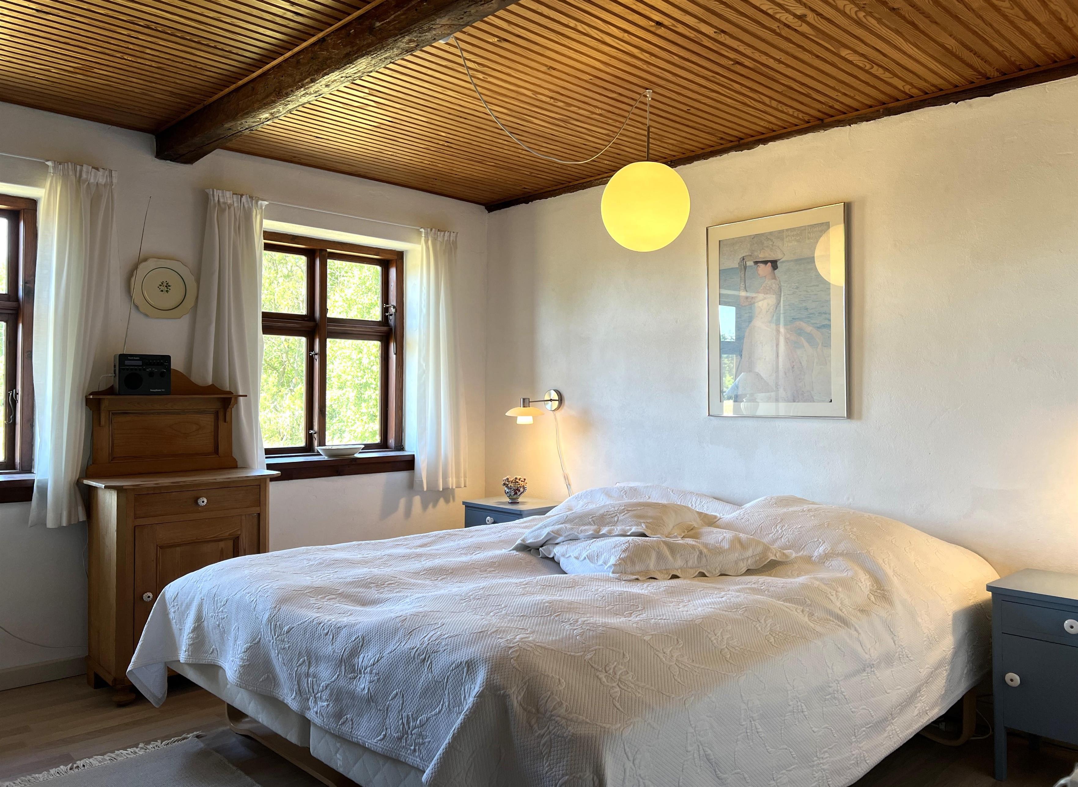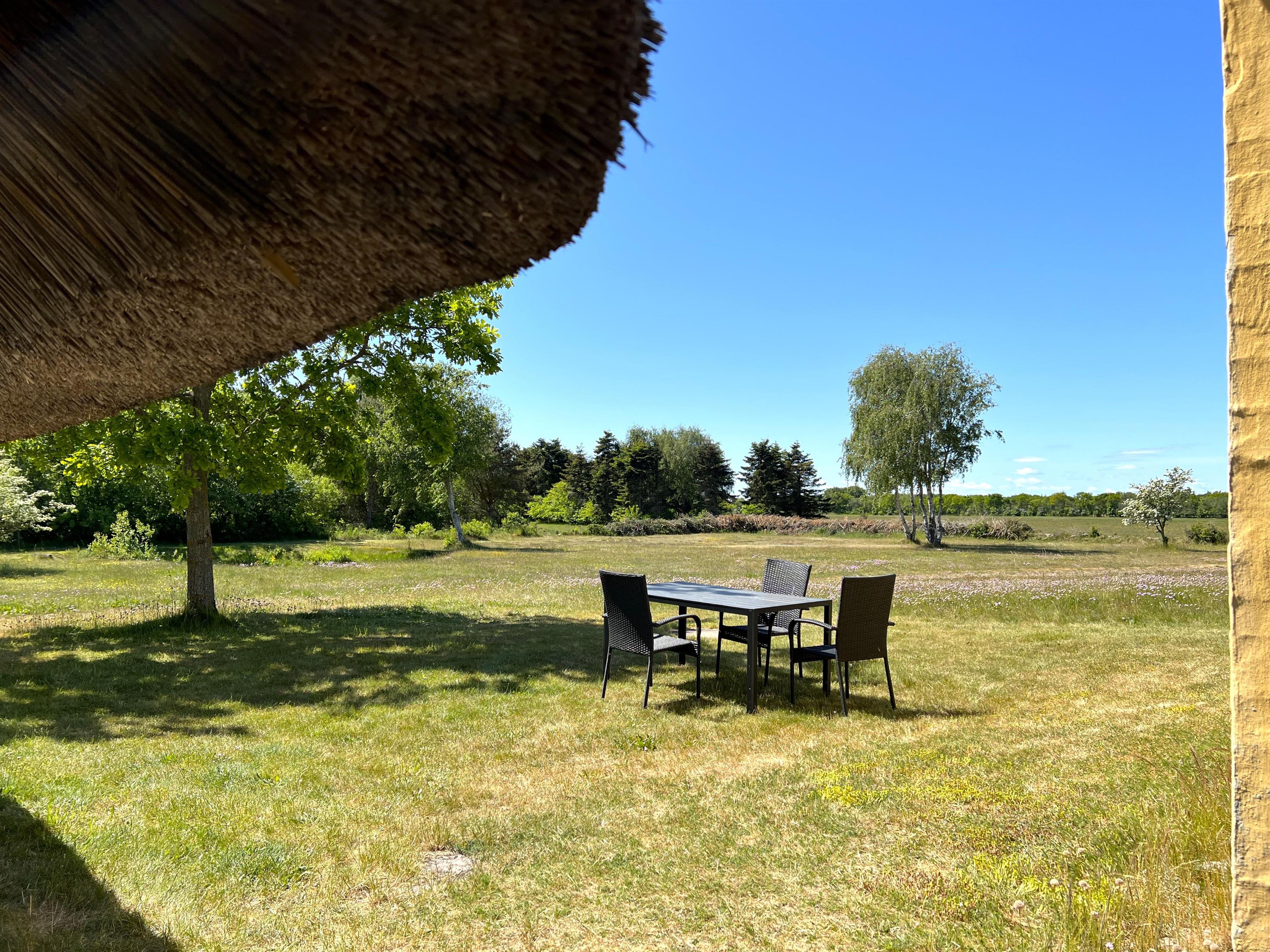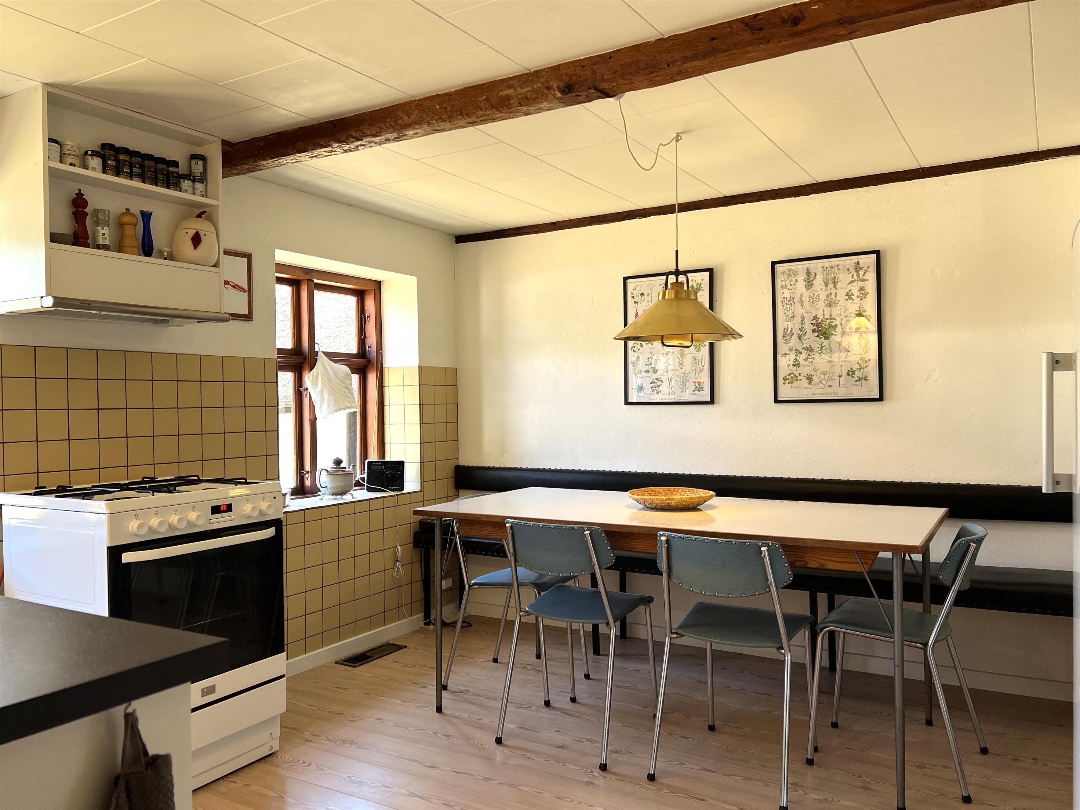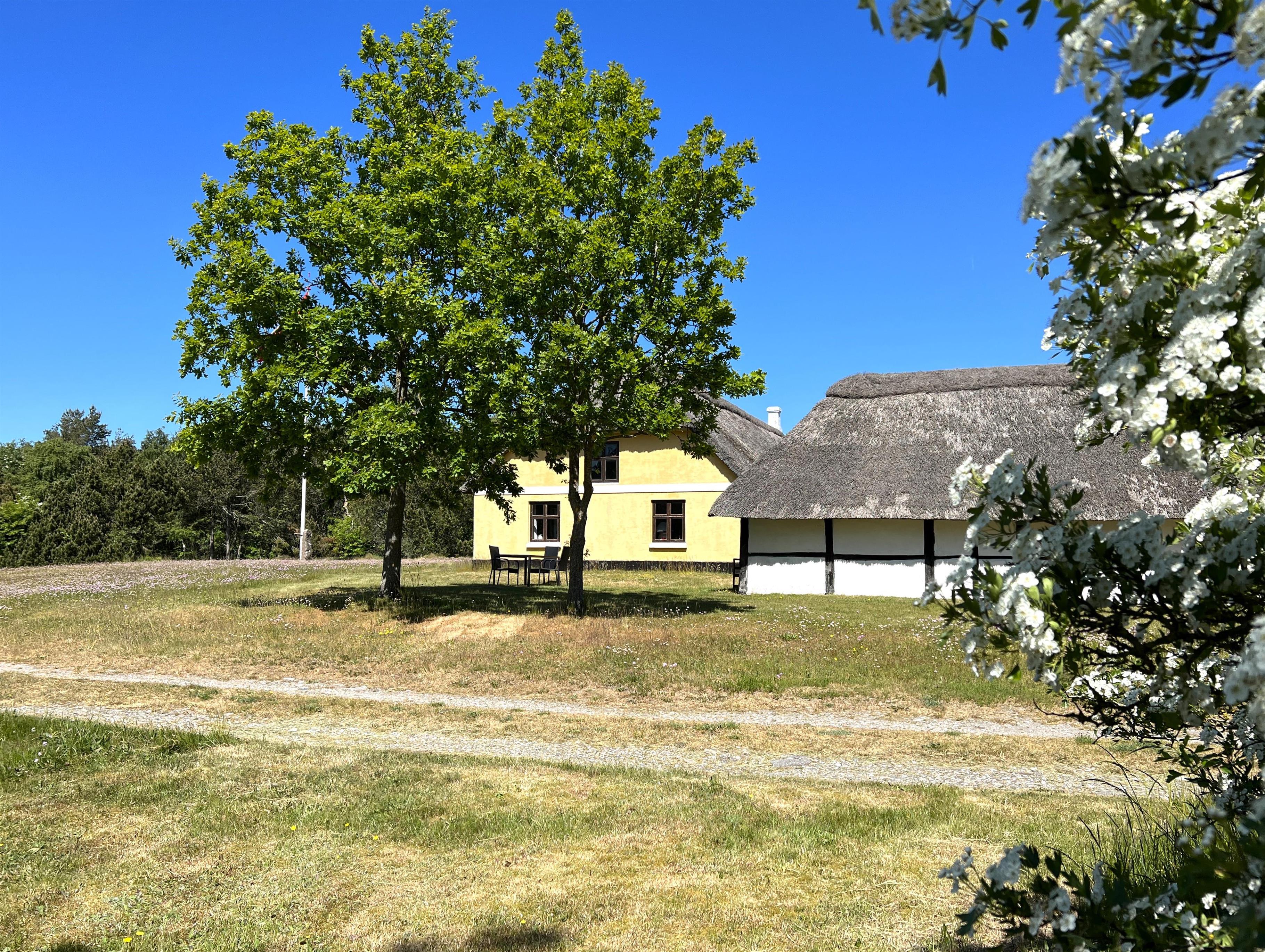 Dieser schöne, alte Læsø-Bauernhof ist einer der ältesten Læsøs und bietet die Gelegenheit für ein einzigartiges Urlaubserlebnis für die große Familie, die gerne in einer ruhigen, malerischen Gegend leben möchte. Der Hof liegt hoch oben auf dem großen Grundstück und bietet einen fantastisch schönen Blick über die großen Freiflächen, wo Sie den Sonnenuntergang über dem Kattegat genießen können. Die kurvenreiche alte Feldstraße führt hinunter zur Søndre Kirke und zum Kongestranden, dem wahrscheinlich besten Strand der Insel. Der Hof „Rimmen“ wurde sorgfältig und mit viel Respekt für Stil und Atmosphäre renoviert und Sie werden beispielsweise auf authentische Deckenbalken von den Schiffen aus den vielen Strandungen rund um Læsø stoßen. Die Fliesen in den Badezimmern, die bei der Übernahme des Hofes im Jahr 1965 vorhanden waren, sind intakt. Hier auf dem Bauernhof begleiten Sie nur die besondere Læsø-Ruhe und die wunderschöne Aussicht auf den See, die Felder und die Natur. Das große Haupthaus verfügt über vier Schlafzimmer, davon drei mit neuen Doppelbetten und eines mit zwei Einzelbetten. Zusätzliches, fünftes Schlafzimmer mit zwei Einzelbetten, damit sich die große Familie ausbreiten kann. Charmante Küche mit „dem alten“ Esstisch und ein beeindruckend großes Wohnzimmer mit Esstisch und mehreren Komfortbereichen mit Sofas, Sesseln und TV. In Verlängerung des Zimmerflügels gibt es Zugang zu einer Außendusche, von der aus Sie den Blick auf den großen Garten genießen können. Es gibt einen schönen Raum mit Waschmaschine, Wäschetrockner, zusätzlichem Kühlschrank und Gefrierschrank. Es gibt viele gute Sonnen-/Wohlfühlecken mit Gartenmöbeln, sowohl mit Blick auf den See als auch im alten, gemütlichen Innenhof, geschützt von den angrenzenden Fachwerkhäusern.