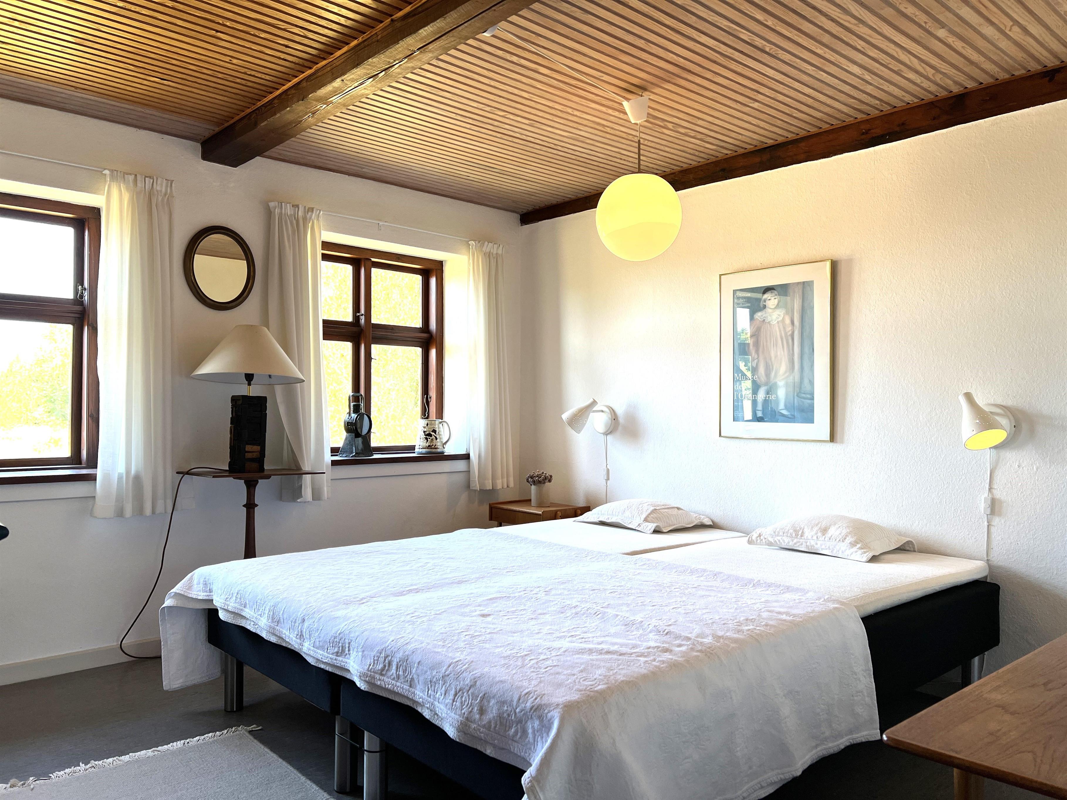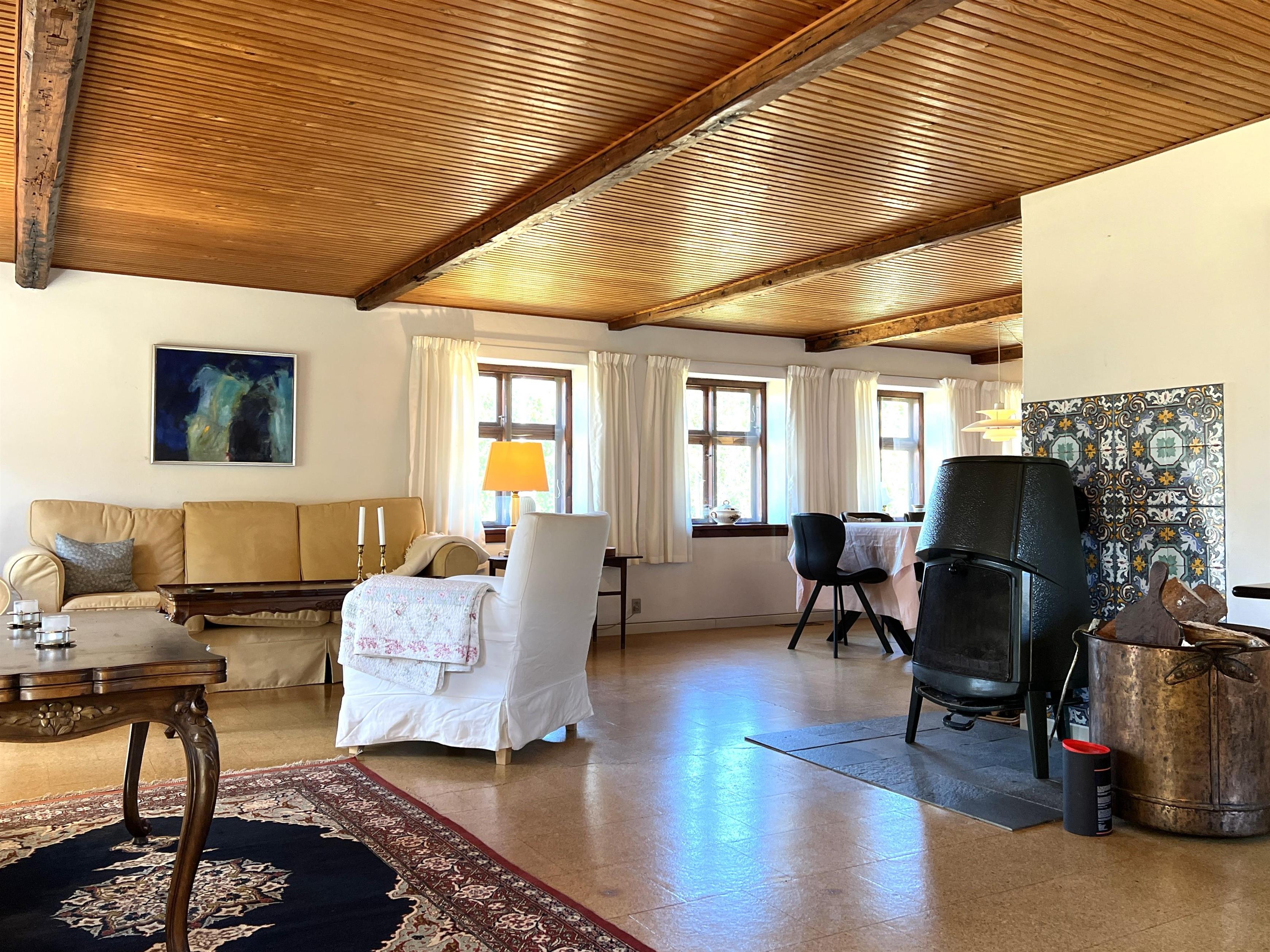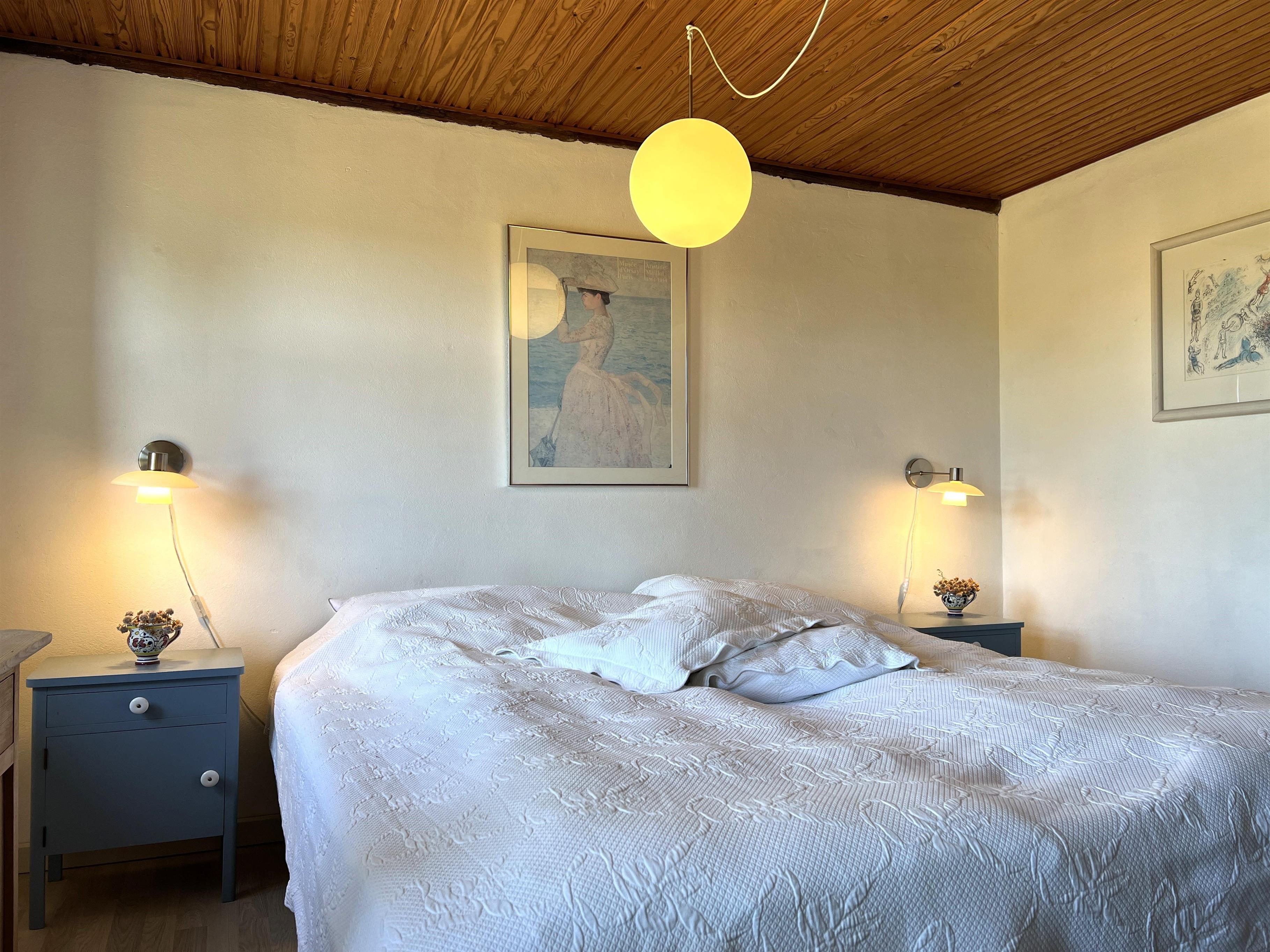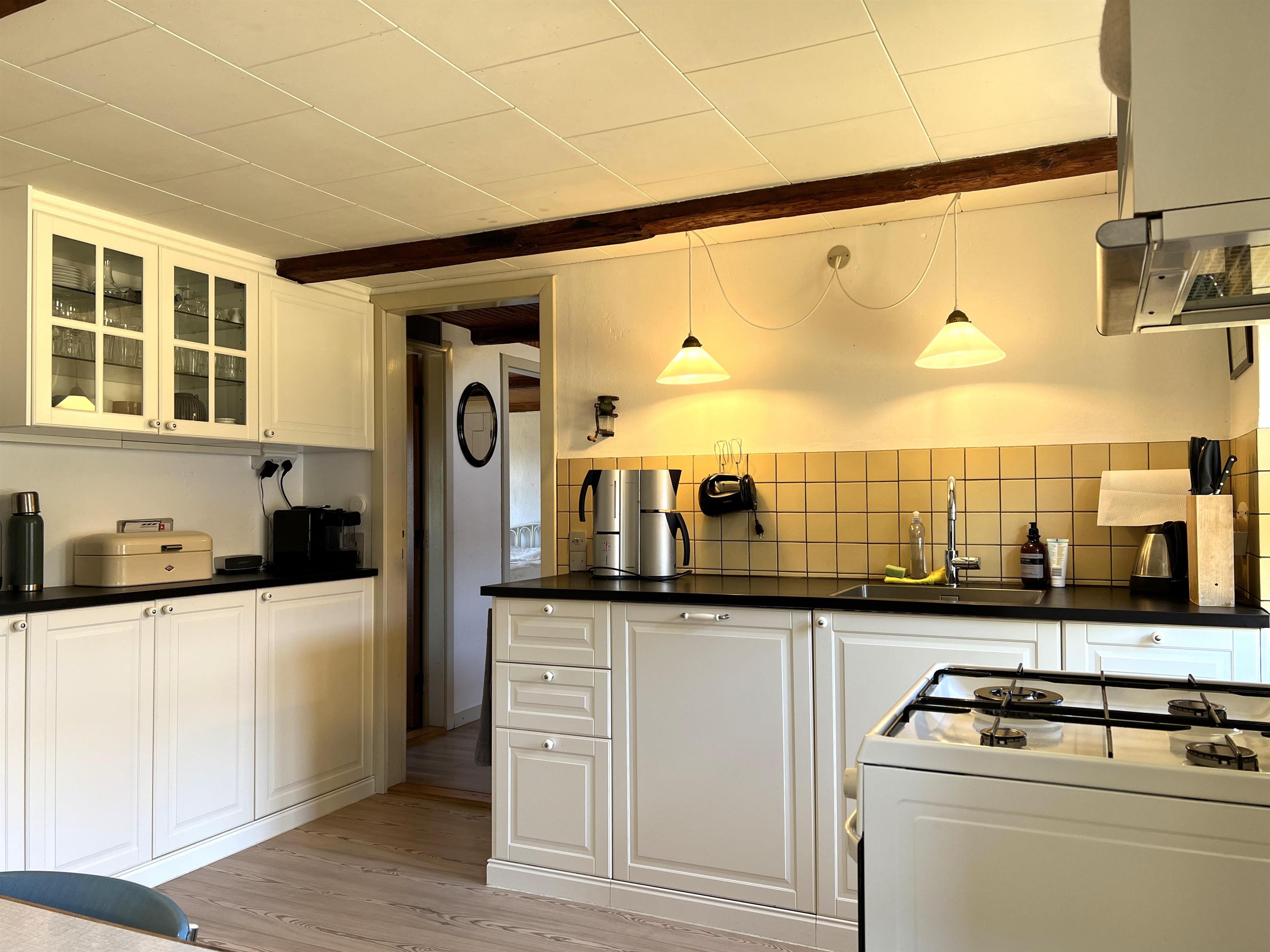 Dieser schöne, alte Læsø-Bauernhof ist einer der ältesten Læsøs und bietet die Gelegenheit für ein einzigartiges Urlaubserlebnis für die große Familie, die gerne in einer ruhigen, malerischen Gegend leben möchte. Der Hof liegt hoch oben auf dem großen Grundstück und bietet einen fantastisch schönen Blick über die großen Freiflächen, wo Sie den Sonnenuntergang über dem Kattegat genießen können. Die kurvenreiche alte Feldstraße führt hinunter zur Søndre Kirke und zum Kongestranden, dem wahrscheinlich besten Strand der Insel. Der Hof „Rimmen“ wurde sorgfältig und mit viel Respekt für Stil und Atmosphäre renoviert und Sie werden beispielsweise auf authentische Deckenbalken von den Schiffen aus den vielen Strandungen rund um Læsø stoßen. Die Fliesen in den Badezimmern, die bei der Übernahme des Hofes im Jahr 1965 vorhanden waren, sind intakt. Hier auf dem Bauernhof begleiten Sie nur die besondere Læsø-Ruhe und die wunderschöne Aussicht auf den See, die Felder und die Natur. Das große Haupthaus verfügt über vier Schlafzimmer, davon drei mit neuen Doppelbetten und eines mit zwei Einzelbetten. Zusätzliches, fünftes Schlafzimmer mit zwei Einzelbetten, damit sich die große Familie ausbreiten kann. Charmante Küche mit „dem alten“ Esstisch und ein beeindruckend großes Wohnzimmer mit Esstisch und mehreren Komfortbereichen mit Sofas, Sesseln und TV. In Verlängerung des Zimmerflügels gibt es Zugang zu einer Außendusche, von der aus Sie den Blick auf den großen Garten genießen können. Es gibt einen schönen Raum mit Waschmaschine, Wäschetrockner, zusätzlichem Kühlschrank und Gefrierschrank. Es gibt viele gute Sonnen-/Wohlfühlecken mit Gartenmöbeln, sowohl mit Blick auf den See als auch im alten, gemütlichen Innenhof, geschützt von den angrenzenden Fachwerkhäusern.