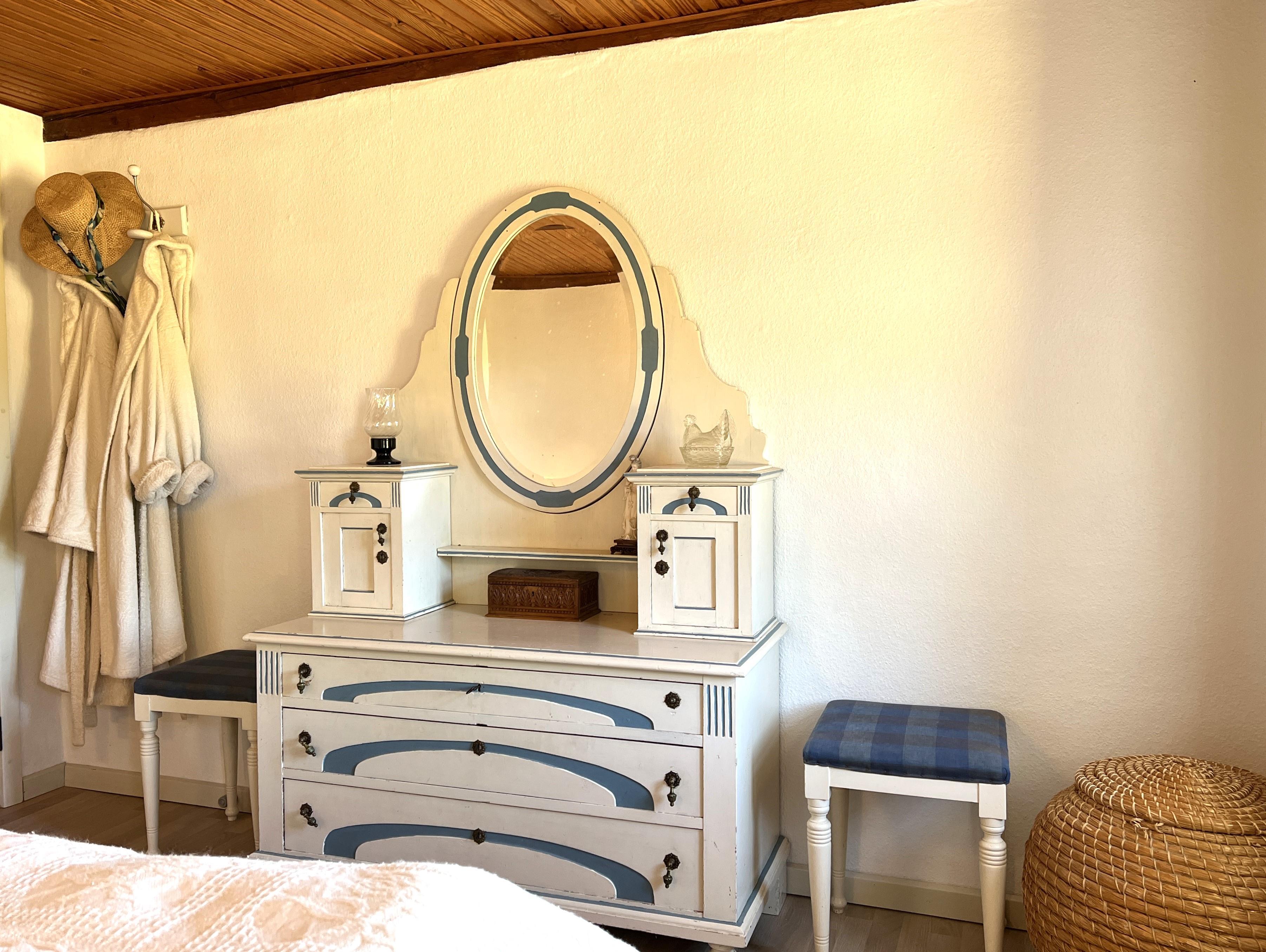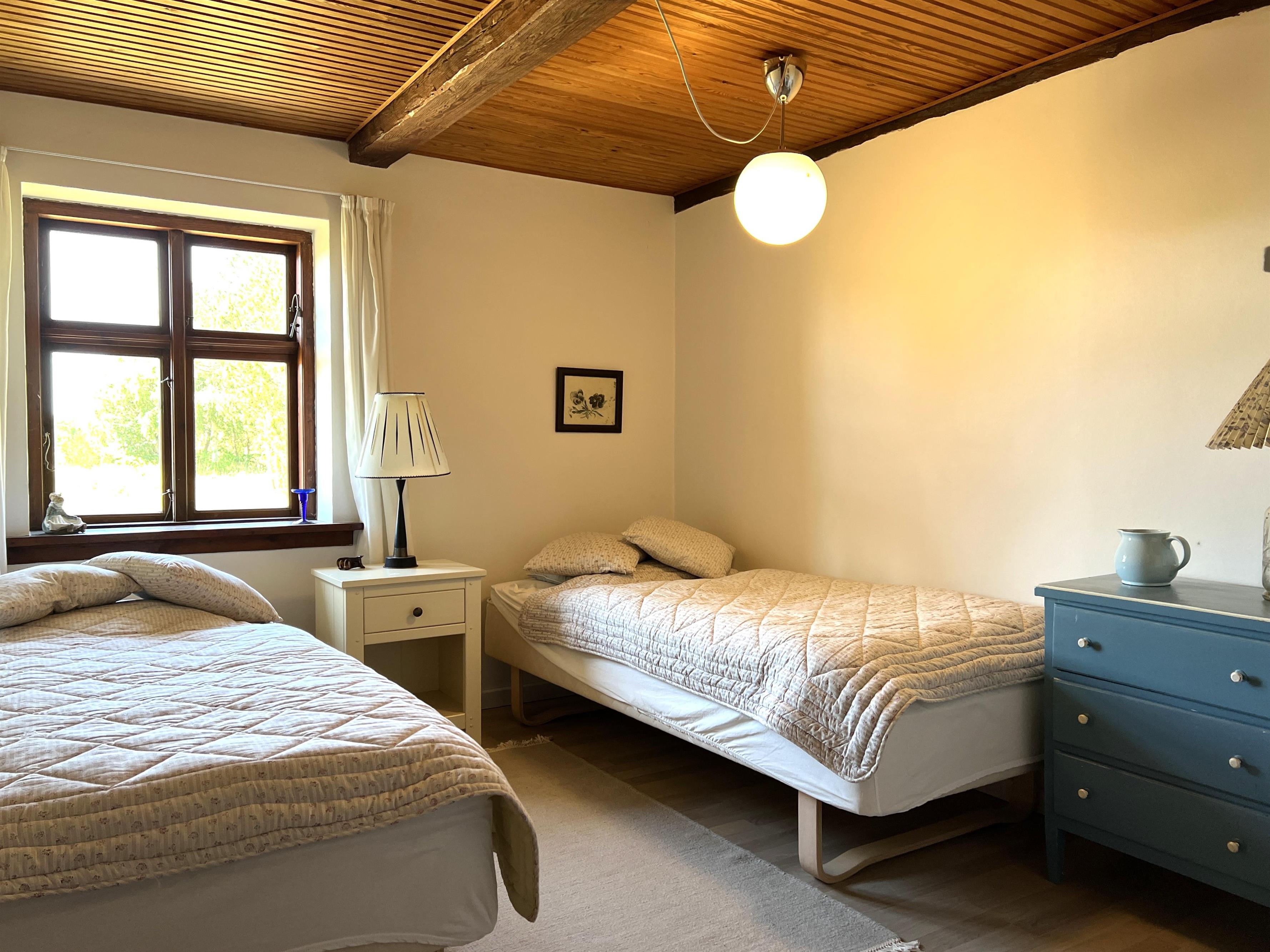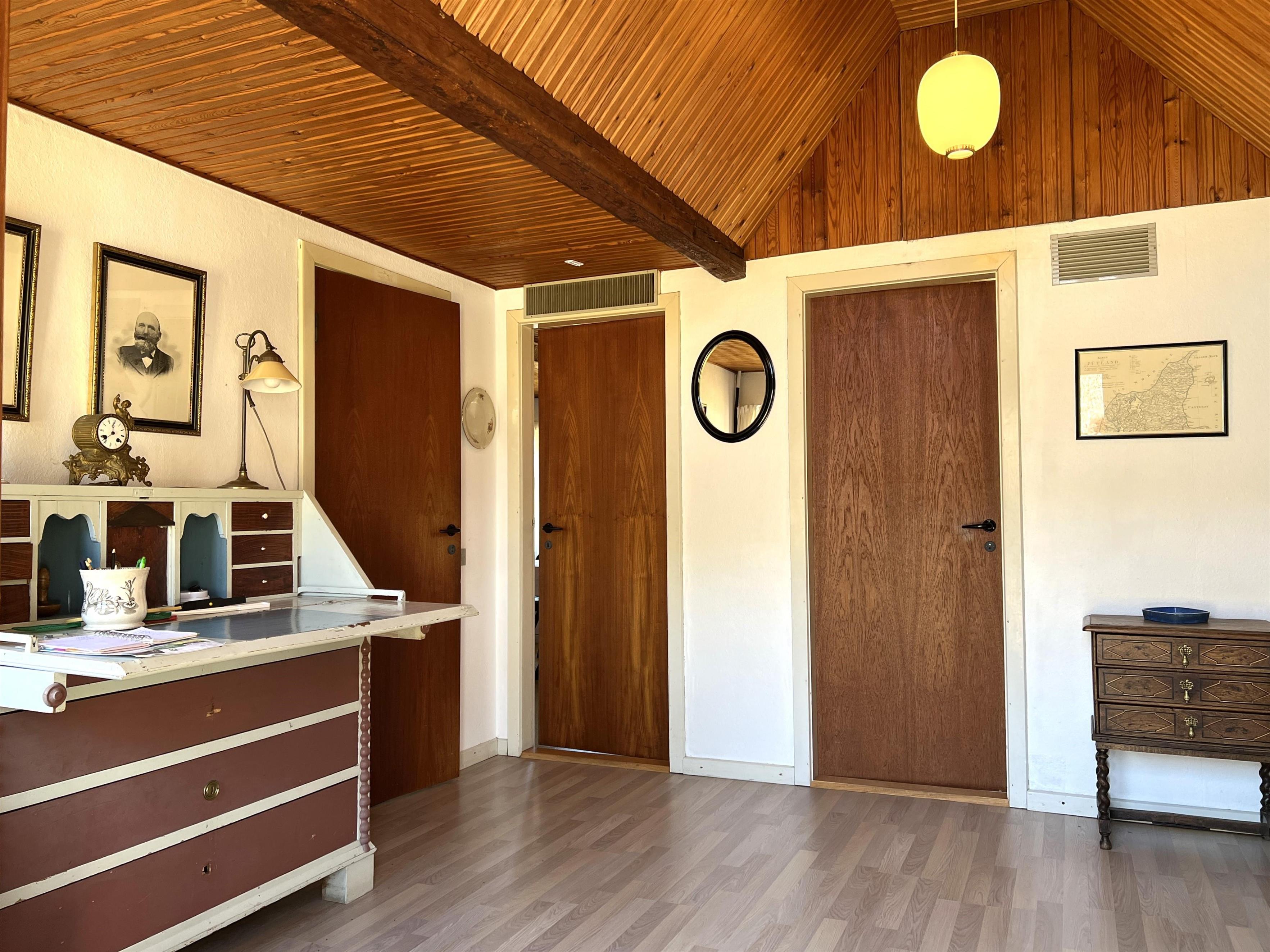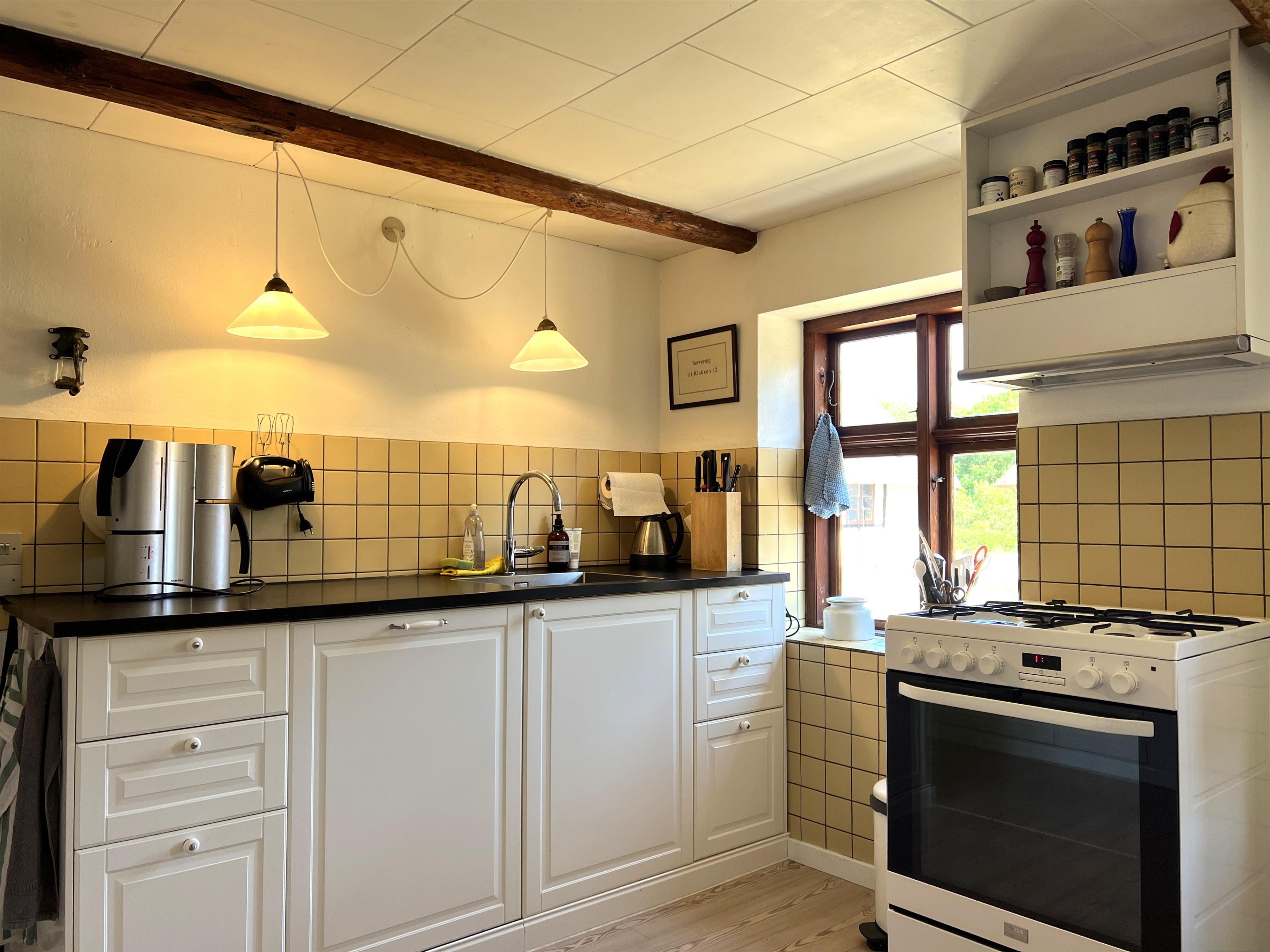 Dieser schöne, alte Læsø-Bauernhof ist einer der ältesten Læsøs und bietet die Gelegenheit für ein einzigartiges Urlaubserlebnis für die große Familie, die gerne in einer ruhigen, malerischen Gegend leben möchte. Der Hof liegt hoch oben auf dem großen Grundstück und bietet einen fantastisch schönen Blick über die großen Freiflächen, wo Sie den Sonnenuntergang über dem Kattegat genießen können. Die kurvenreiche alte Feldstraße führt hinunter zur Søndre Kirke und zum Kongestranden, dem wahrscheinlich besten Strand der Insel. Der Hof „Rimmen“ wurde sorgfältig und mit viel Respekt für Stil und Atmosphäre renoviert und Sie werden beispielsweise auf authentische Deckenbalken von den Schiffen aus den vielen Strandungen rund um Læsø stoßen. Die Fliesen in den Badezimmern, die bei der Übernahme des Hofes im Jahr 1965 vorhanden waren, sind intakt. Hier auf dem Bauernhof begleiten Sie nur die besondere Læsø-Ruhe und die wunderschöne Aussicht auf den See, die Felder und die Natur. Das große Haupthaus verfügt über vier Schlafzimmer, davon drei mit neuen Doppelbetten und eines mit zwei Einzelbetten. Zusätzliches, fünftes Schlafzimmer mit zwei Einzelbetten, damit sich die große Familie ausbreiten kann. Charmante Küche mit „dem alten“ Esstisch und ein beeindruckend großes Wohnzimmer mit Esstisch und mehreren Komfortbereichen mit Sofas, Sesseln und TV. In Verlängerung des Zimmerflügels gibt es Zugang zu einer Außendusche, von der aus Sie den Blick auf den großen Garten genießen können. Es gibt einen schönen Raum mit Waschmaschine, Wäschetrockner, zusätzlichem Kühlschrank und Gefrierschrank. Es gibt viele gute Sonnen-/Wohlfühlecken mit Gartenmöbeln, sowohl mit Blick auf den See als auch im alten, gemütlichen Innenhof, geschützt von den angrenzenden Fachwerkhäusern.