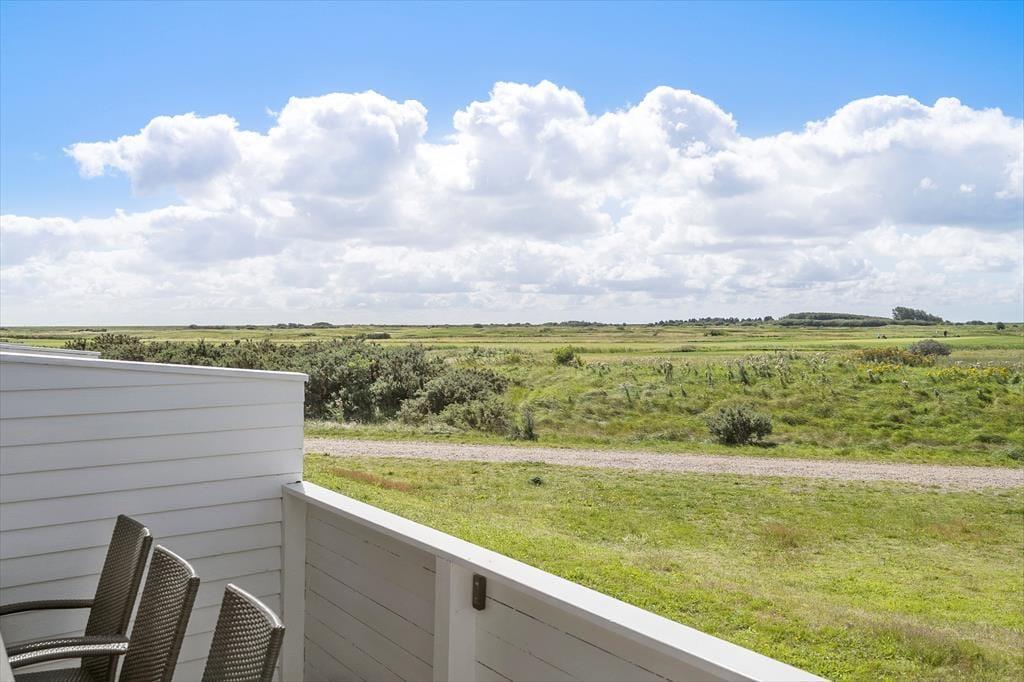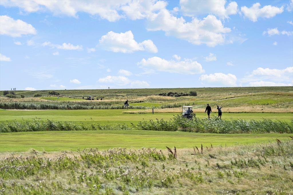 Hinter der roten Backsteinfassade erwartet dich ein schönes und einladendes Ferienhaus, das in hellen Farben gehalten ist. Die Raumaufteilung erstreckt sich über zwei Etagen, sodass sich ein Schlafzimmer im Erdgeschoss und zwei im ersten Stock befinden. Im oberen Bereich befindet sich außerdem ein geräumiges Badezimmer mit Dusche, Waschmaschine und schrägem Fenster, sodass du beim Zähneputzen die Wolken beobachten kannst. Vom Wohnzimmer aus hast du einen schönen Blick auf den Golfplatz und die offenen Weiten. Sogar von der offenen Küche aus kannst du über die schönen Grünflächen blicken.