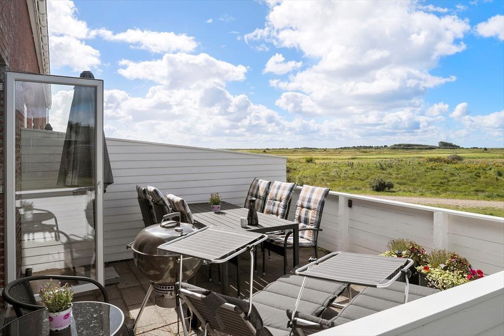 Von der Terrasse des Hauses aus beeindruckt der Blick über den Golfplatz, der sich bis zum Wattenmeerdeich erstreckt. Es ist herrlich, sich in solch einer schönen Umgebung in einem bequemen Gartenstuhl entspannen zu können – und wenn du dort sitzen bleibst, bis sich der Hunger meldet, hast du die Möglichkeit, den Grill anzumachen und draußen unter freiem Himmel zu essen.