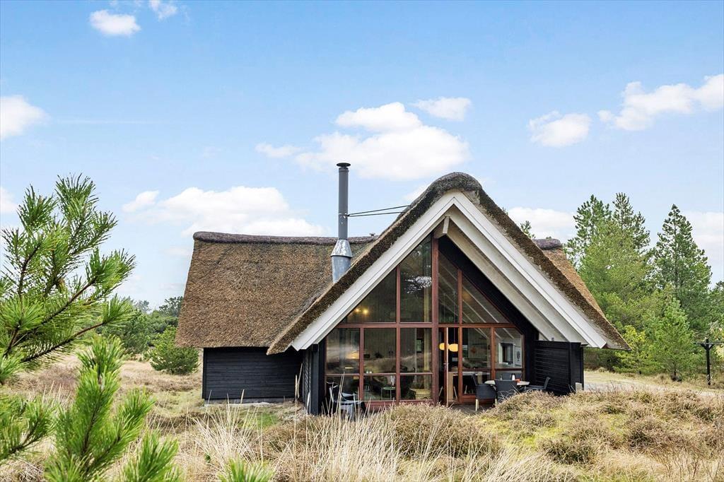 Mit seinen 93 gut eingerichteten und außerordentlich gepflegten Quadratmetern bietet dir dieses reetgedeckte Qualitätshaus aus dem Jahre 2010 ausreichend Bewegungsfreiheit. Zum zentralen Sammelpunkt aller Mitreisenden wird sicherlich schnell der Wohnraum avancieren. Diesem Raum wird durch die hohen Decken und die großen Fensterfronten ein angenehm luftiges Ambiente verliehen. Zudem ermöglichen die Fenster einen schönen Tageslichteinfall und gewähren dir einen Ausblick auf das hügelige Naturgrundstück. Die gut ausgestattete Küche ist harmonisch und offen in den Wohnraum integriert. Somit ist es ein Leichtes, die zubereiteten Köstlichkeiten auf dem großen Esstisch zu servieren. Nach einem köstlichen Essen lockt das bequeme Sofa mit herrlich entspannten Stunden. Für ein Maximum an Gemütlichkeit und Stimmung sorgt an kühleren Tagen der behaglich knisternde Kaminofen. Das Haus ist sehr gut isoliert, und deshalb auch in der kalten Jahreszeit gut bewohnbar. Die stromsparende Wärmepumpe trägt zum Beheizen des Hauses bei und kann im Sommer an heißen Tagen als Klimaanlage genutzt werden. Wer es noch wärmer mag, kann sich in die Sauna im großen Badezimmer zurückziehen und erholsame Momente voller Entspannung genießen. Zur Wohnfläche zählen außerdem ein Gäste-WC, ein Eingangsbereich mit einer Waschmaschine und einem Wäschetrockner sowie drei Schlafräume mit insgesamt sechs Schlafplätzen und eine Dachnische, die Möglichkeit zum Spielen und für einen ungestörten Mittagsschlaf bietet. Einer der Schlafräume wird mit seinem Fernseher, dem DVD-Player und der Möglichkeit zum Anschließen einer PlayStation oder einer anderen Spielekonsole für Begeisterung bei deinen größeren Kindern sorgen.
