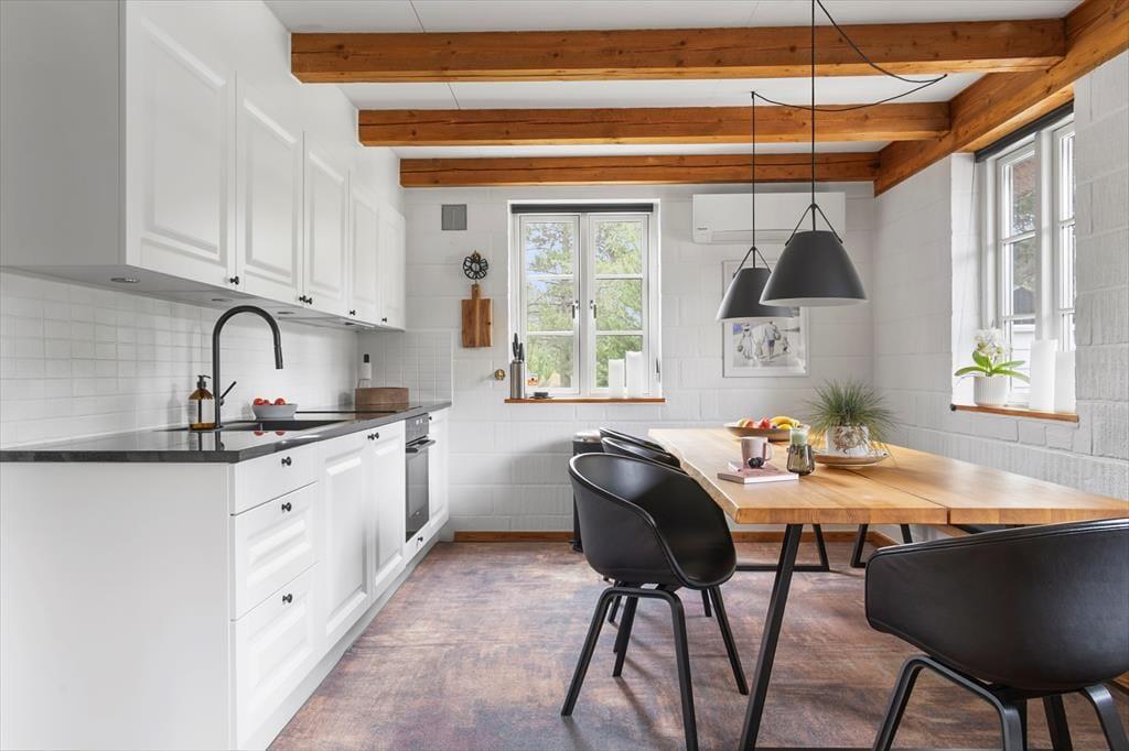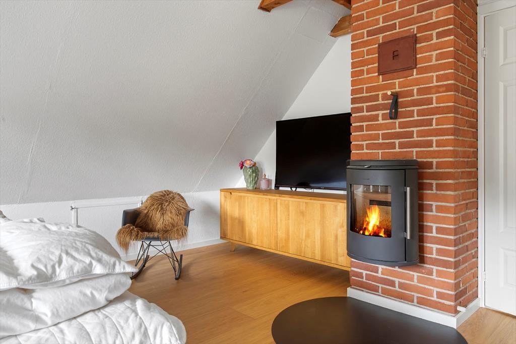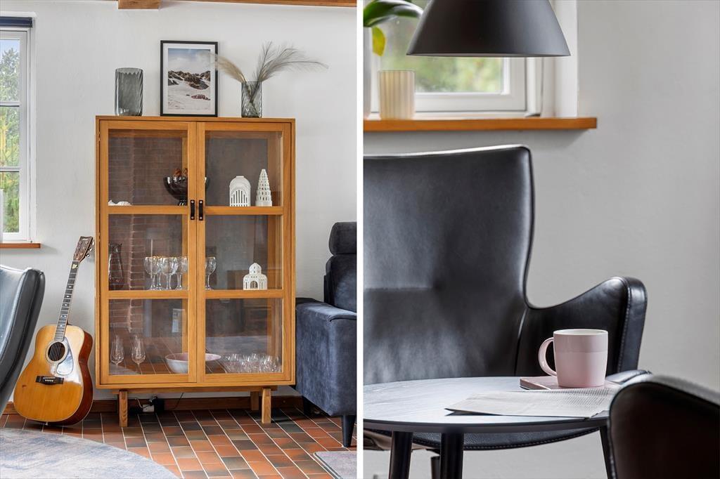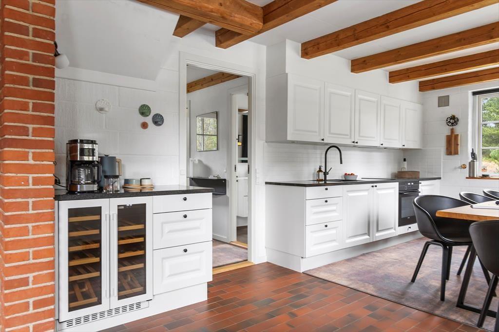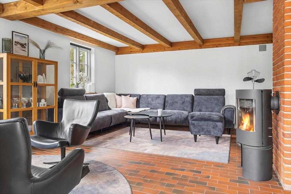 Das Ferienhaus präsentiert sich solide und einladend mit einer stilvollen Einrichtung, in der moderner Komfort und charmante Details perfekt zusammenfinden. Sichtbare Deckenbalken in fast allen Räumen sorgen für Wärme und Atmosphäre, während helle Farben und edle Materialien dem Haus eine elegante Ausstrahlung verleihen. Im Wohnzimmer kannst du mit der Familie am knisternden Kaminofen gemütliche Abende verbringen oder die Sonnenstrahlen durch die großen Fenster hereinfallen lassen und so die Natur direkt ins Haus holen. Die Küche ist offen mit dem Wohnzimmer verbunden, sodass das Kochen ein angenehmer Teil des Beisammenseins wird. Im Obergeschoss findest du sogar noch einen weiteren Kaminofen in einem der Schlafzimmer – ideal für zusätzliche Gemütlichkeit vor dem Schlafengehen.