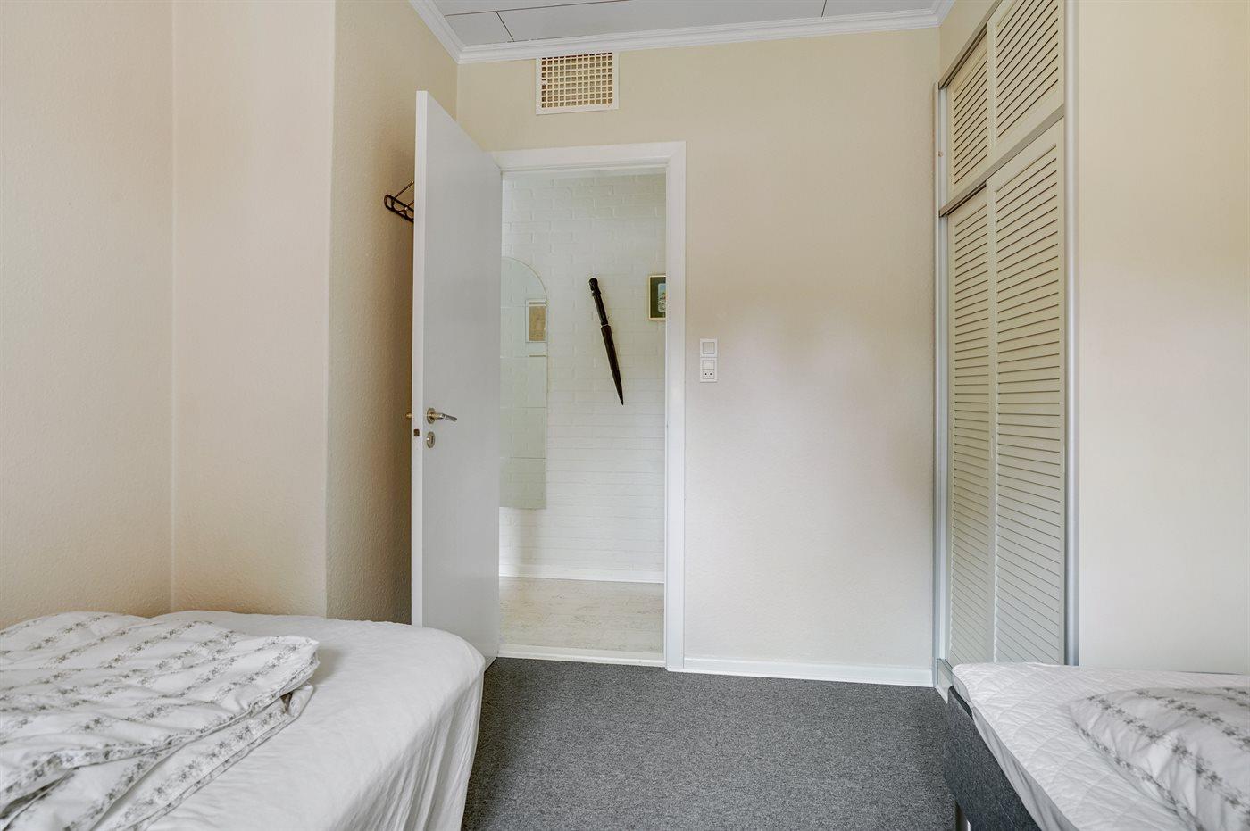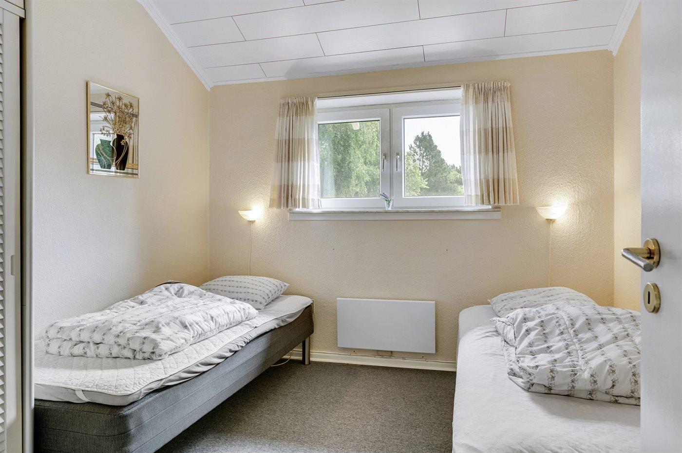 Die Schlafplätze verteilen sich auf 2 Schlafräume. 2 Schlafplätze in einem Doppelbett. 2 Schlafplätze in Einzelbetten.