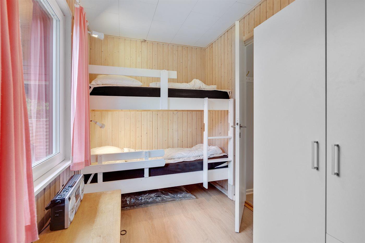 Die Schlafplätze verteilen sich auf 3 Schlafräume. 2 Schlafplätze in einem Doppelbett. 2 Schlafplätze in Einzelbetten. 2 Schlafplätze in einem Etagenbett. Ferner steht ein Kinderbett zur Verfügung.