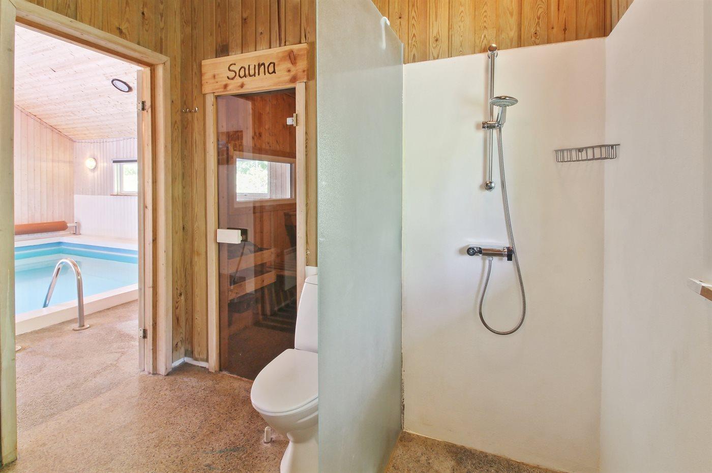Es gibt 2 Badezimmer mit Dusche und 2 Toiletten. Fußbodenheizung in 1 Badezimmer. Es steht eine Sauna zur Verfügung in der Sie sich so richtig entspannen können.