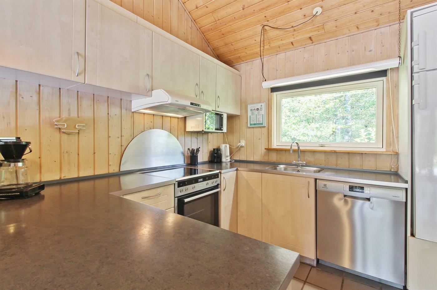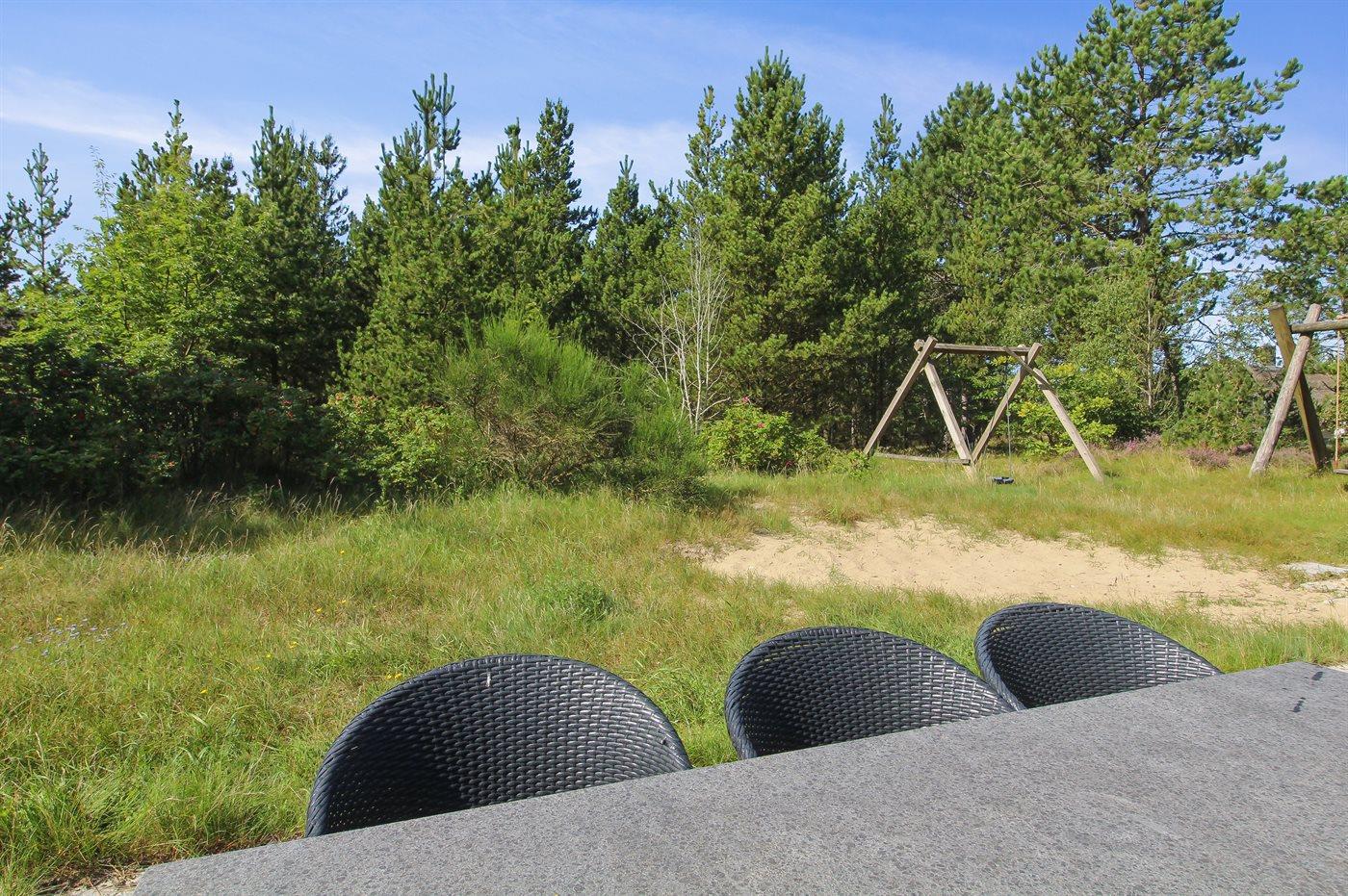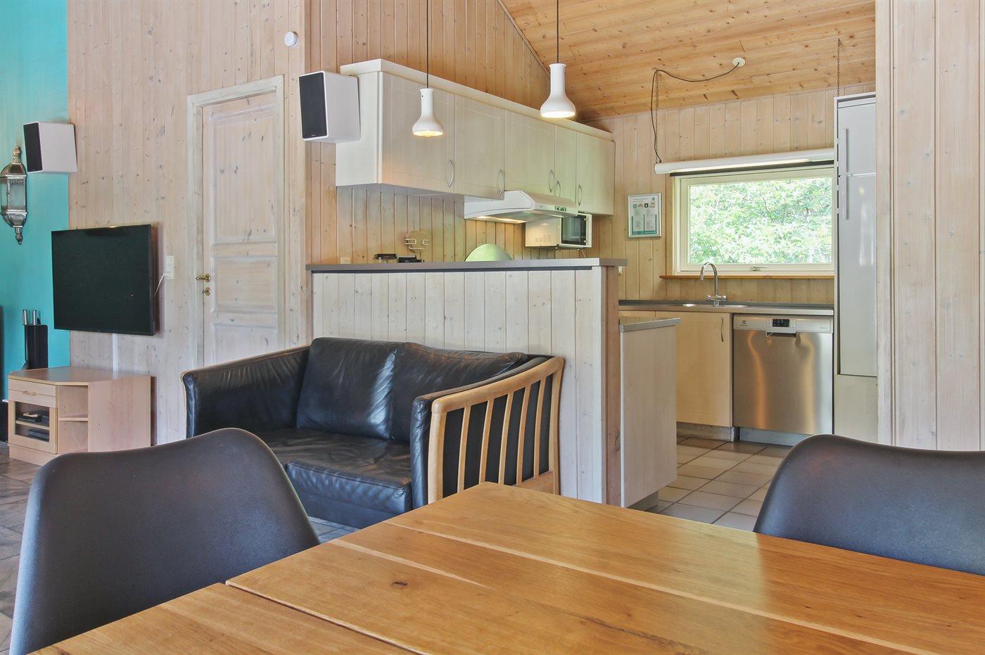 Dieses schöne Ferienhaus liegt auf einem sehr hübschen Naturgrundstück in ruhiger Umgebung. Zum Haus gehört ein schönes, von Bäumen abgeschirmtes, sowohl offenes als auch überdachtes Terrassenareal mit Gartenmöbeln.