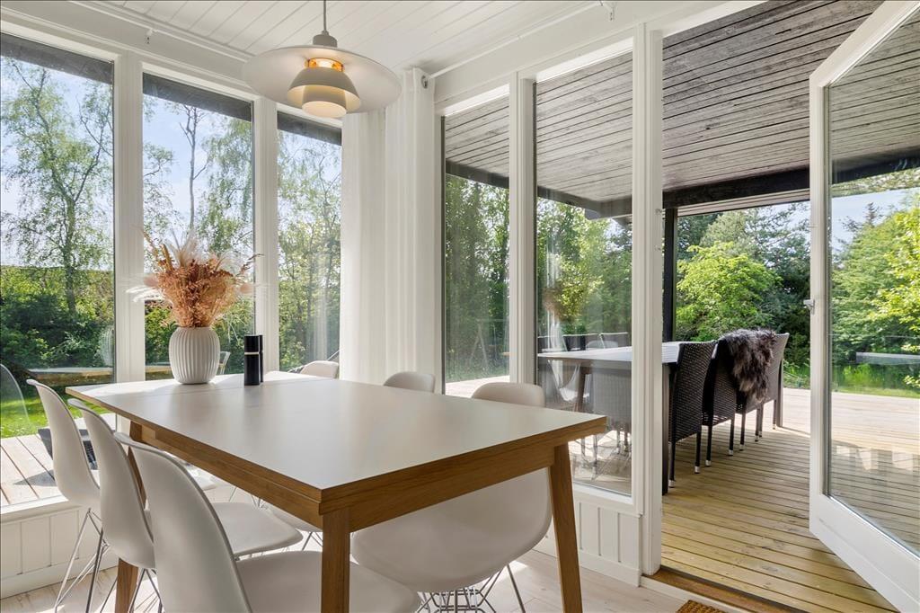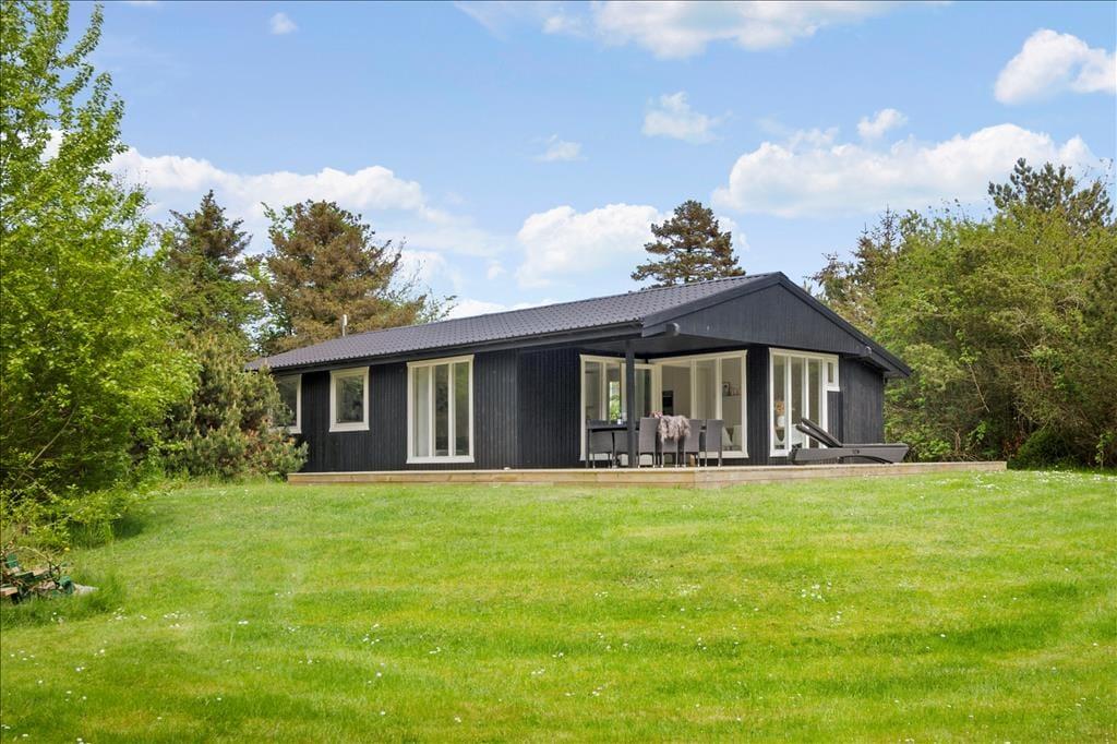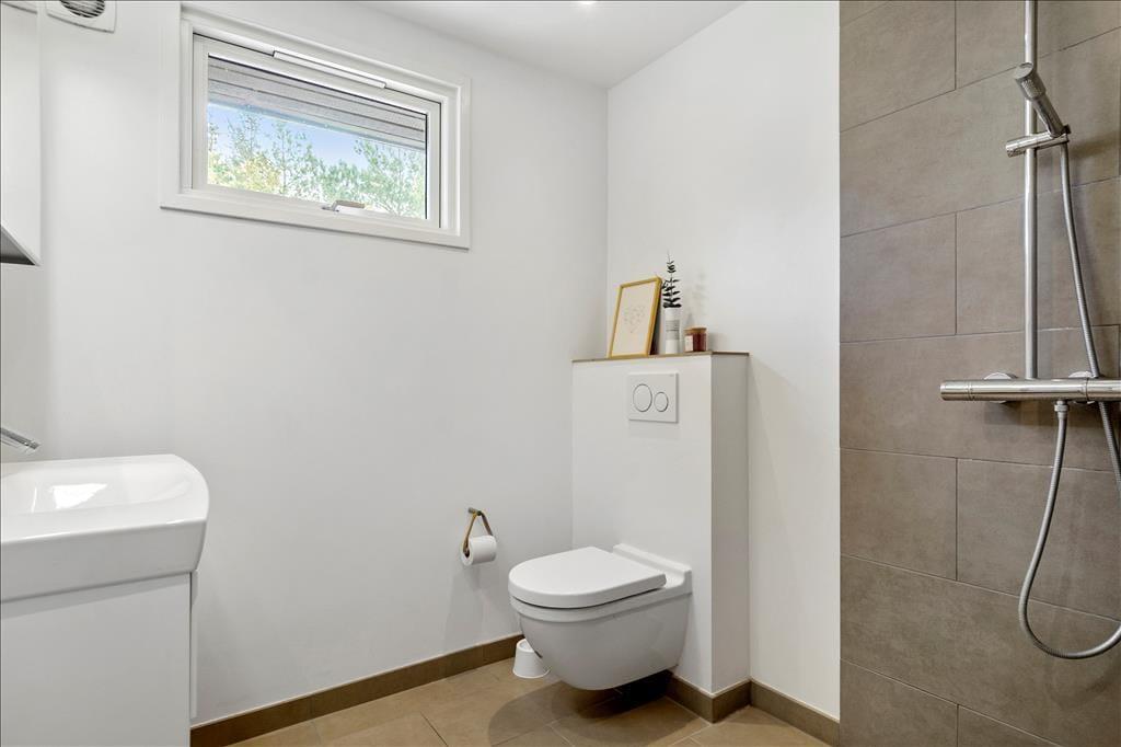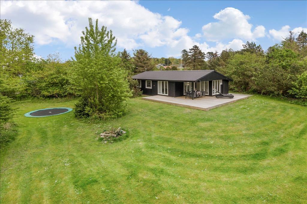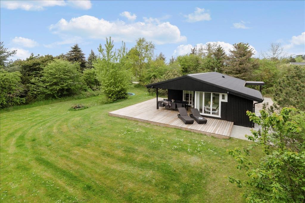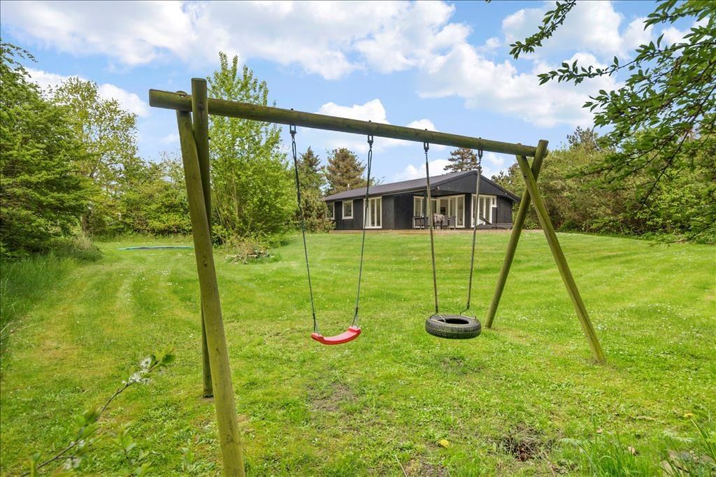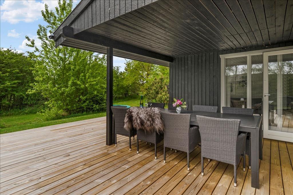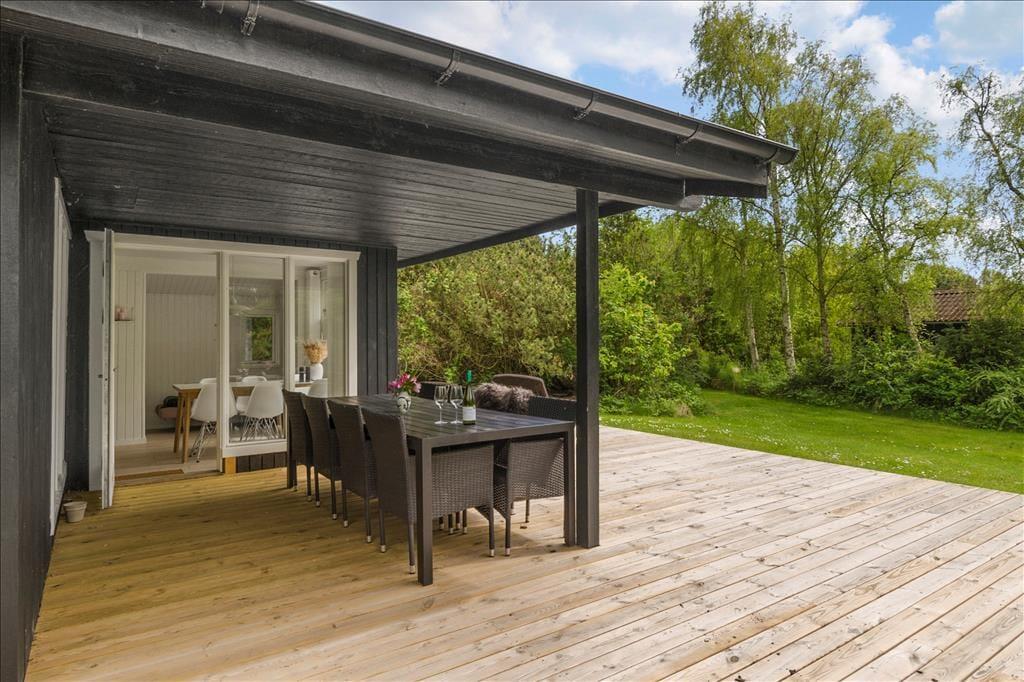 Draußen erwartet dich eine große, teils überdachte Holzterrasse, auf der du den ganzen Tag Sonne und Schatten genießen kannst. Der umliegende Garten bietet viel Platz zum Spielen und Entspannen – mit einer Schaukel für die Kinder und einer Rasenfläche für Ballspiele. Abends kannst du den Grill anwerfen und das Abendessen unter freiem Himmel genießen, während die Sonne über Vesterløkken untergeht. Auch ein Carport steht zur Verfügung, sodass dein Auto geschützt steht.