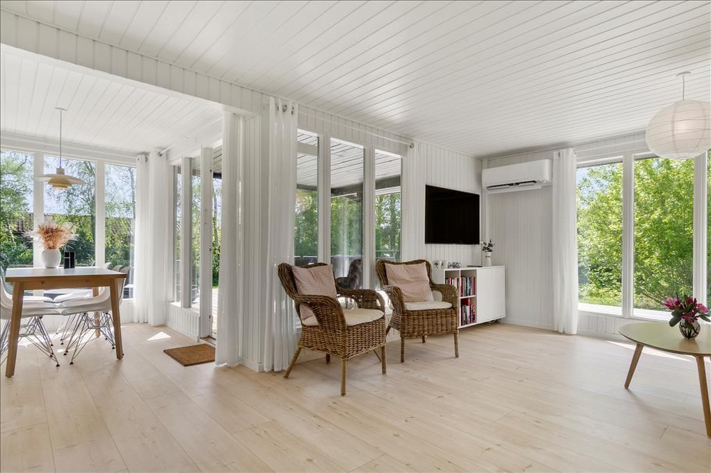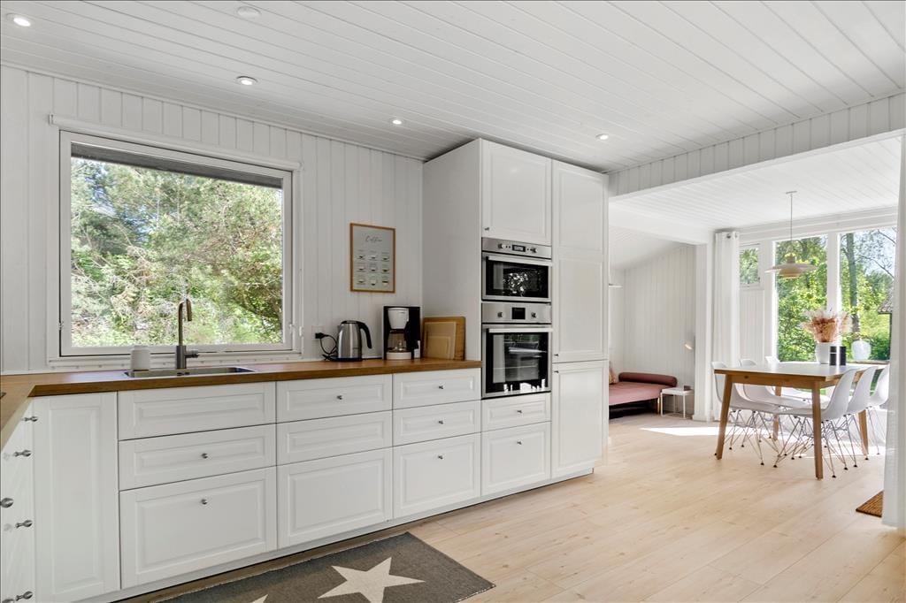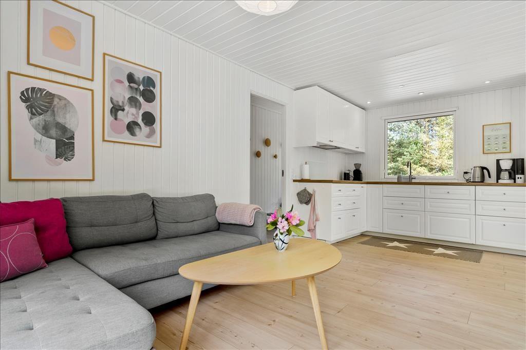 Tritt ein in ein helles und einladendes Ferienhaus, in dem große Fenster nach Süden und Westen das Licht und die Wärme der Sonne in jeden Raum lassen. Der offene Wohnbereich vereint Küche und Wohnzimmer zu einer harmonischen Einheit, ausgestattet mit modernen Annehmlichkeiten wie Geschirrspüler, Kaffeemühle und Milchaufschäumer – ideal, um die kleinen Freuden des Urlaubs zu genießen. Im gemütlichen Sofabereich kannst du mit einem guten Film auf dem Flachbildschirm mit Chromecast entspannen und dabei die Aussicht in die umliegende Natur genießen. Die drei Schlafzimmer bieten bequeme Schlafplätze mit einem Doppelbett, einem Schlafsofa und einem Etagenbett – perfekt für Paare und Familien. Das Badezimmer ist hell und funktional mit Fußbodenheizung und einer großzügigen Dusche.