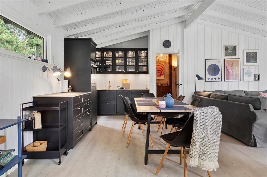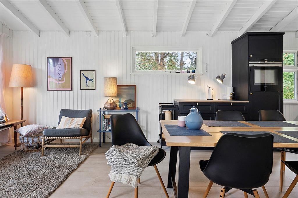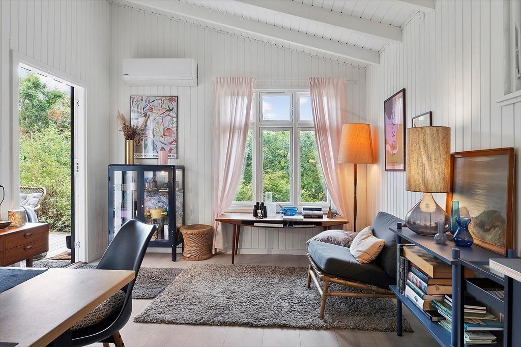 Das Ferienhaus hat seine eigene Seele und Geschichte. Hier treffen offene Dachbalken, bodentiefe Sprossenfenster und klassisches Ferienhausflair auf renovierten Komfort. Wohnzimmer, Küche und Bad sind modernisiert, doch die Wärme und der besondere Charakter des Hauses wurden durch persönliche Details, Farben und Möbel mit Geschichte bewahrt. Die Einrichtung ist geprägt von Flohmarktfunden, Erbstücken und ästhetischem Feingefühl – ohne Kompromisse bei Funktionalität und Alltagstauglichkeit.