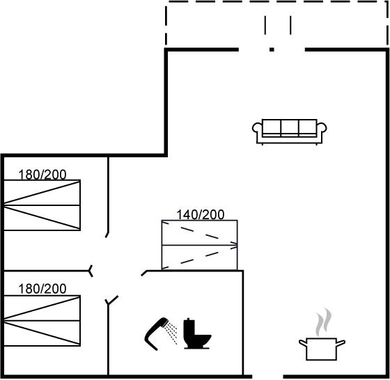 Die Schlafplätze verteilen sich auf 2 Schlafräume. 4 Schlafplätze in Doppelbetten. 2 Schlafplätze auf einer Doppelschlafcouch. Ferner steht ein Kinderbett zur Verfügung.