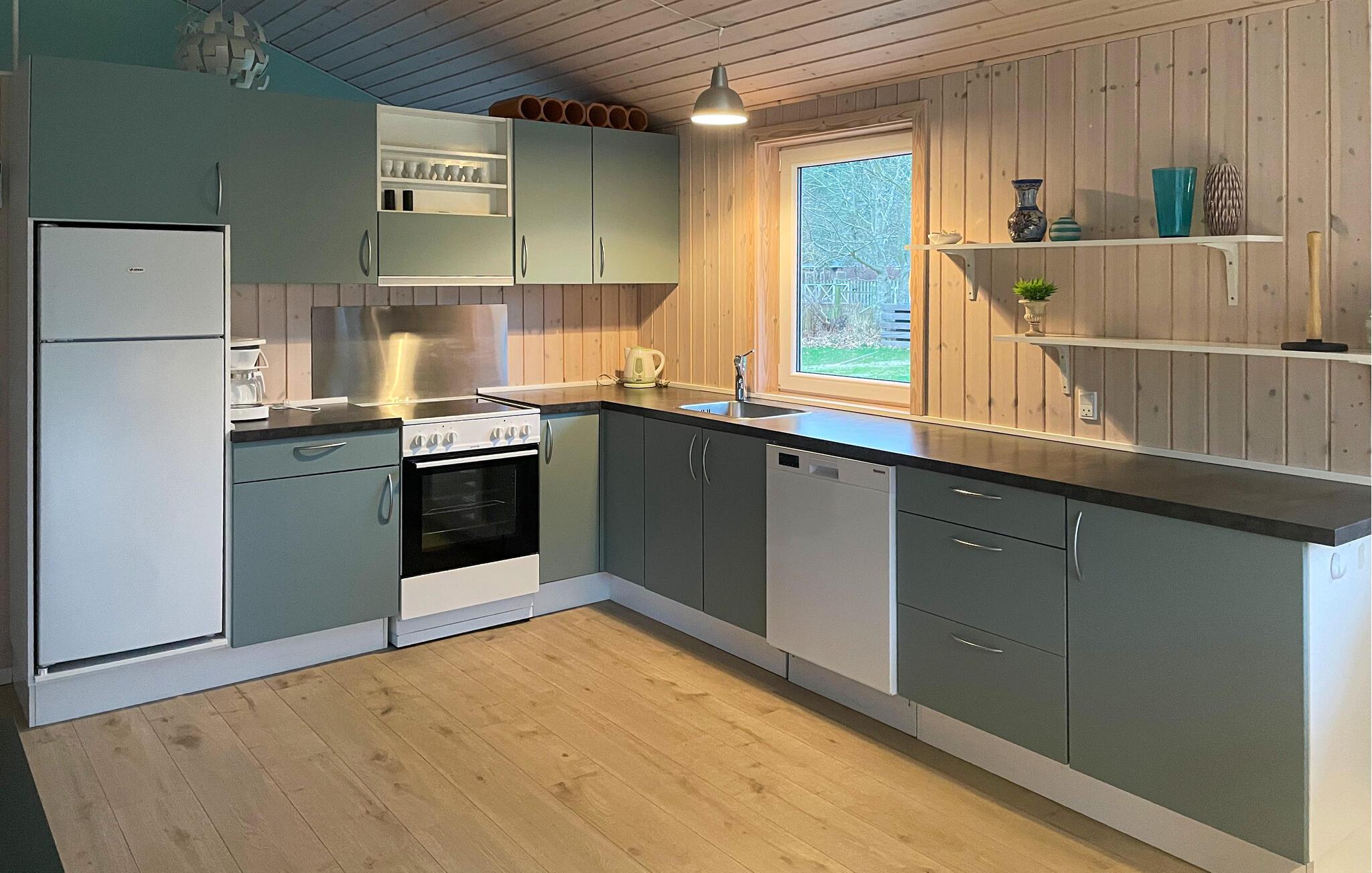 Willkommen in diesem geschmackvoll eingerichteten Ferienhaus, in dem Sie mit Ihren Lieben den Alltag in weite Ferne rücken lassen können. Freuen Sie sich auf gesellige Kochabende in der geräumigen Küche und finden Sie für harmonische Mahlzeiten und fröhliche Spieleabende am einladenden Esstisch zusammen, während der Kaminofen leise im Hintergrund knistert. Vertiefen Sie sich im gemütlichen Wohnzimmer in eine spannende Lektüre oder entspannen Sie bei einem guten Film.