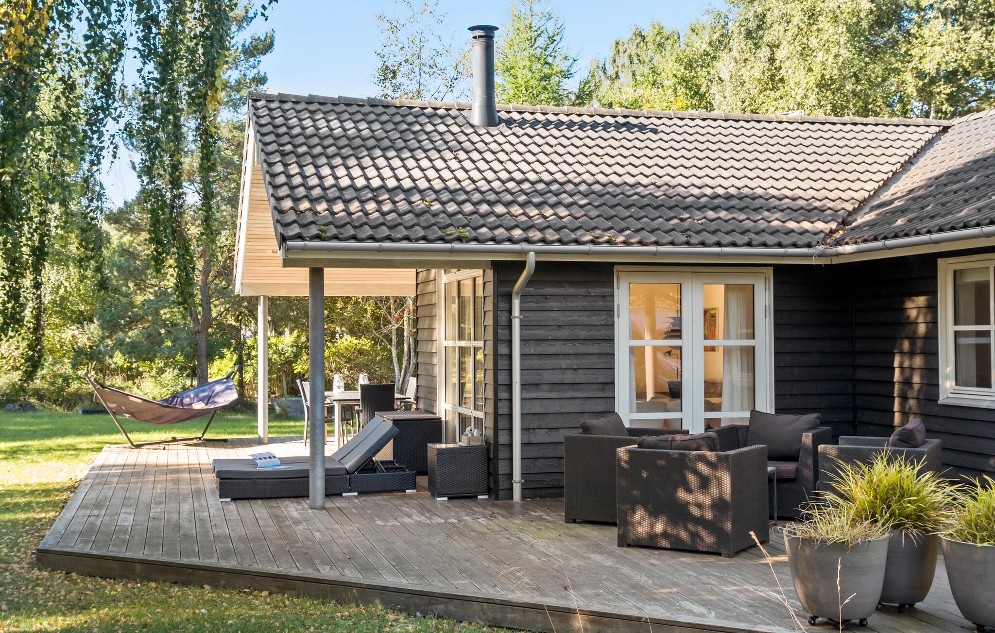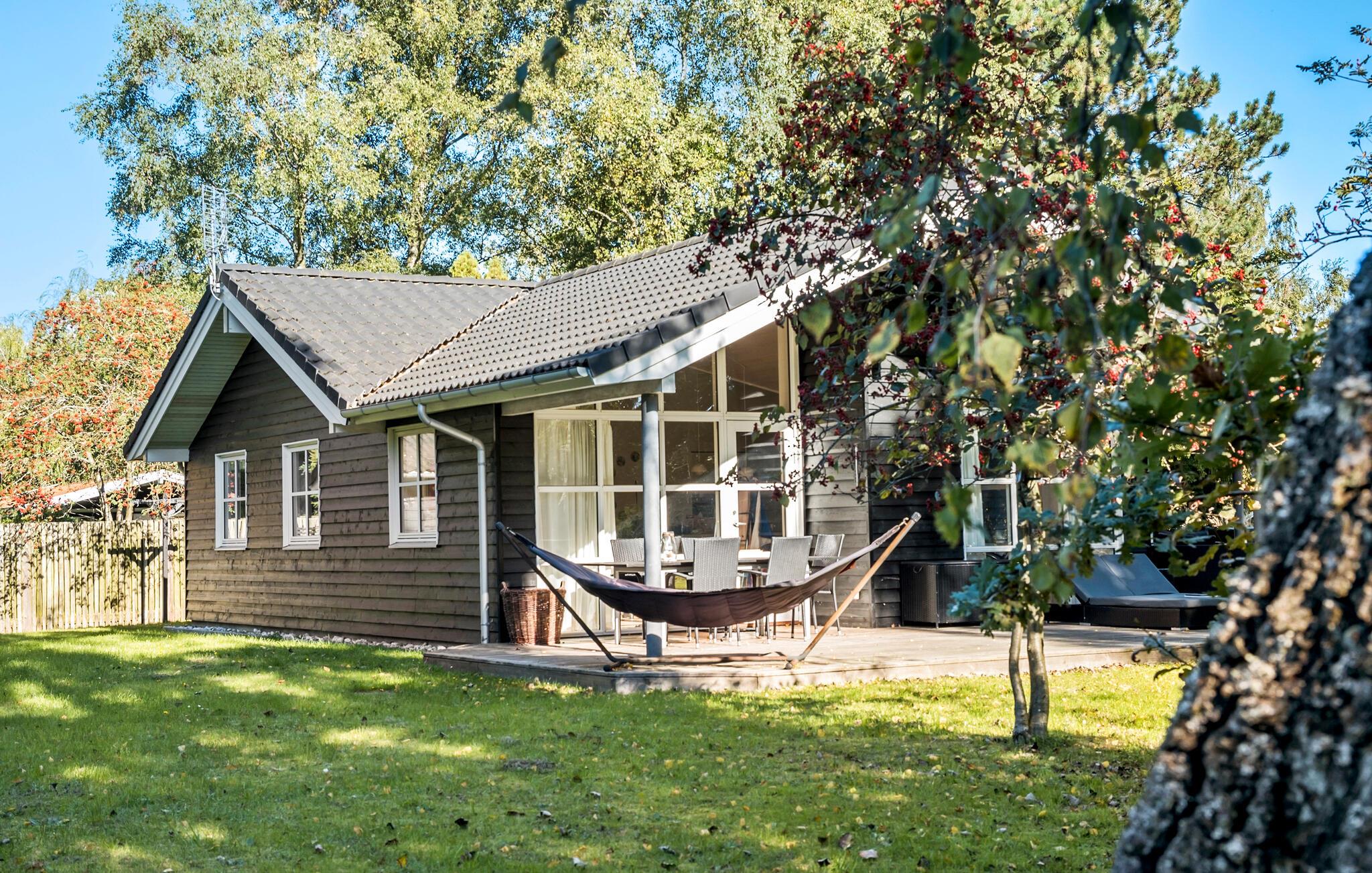 Gemütliches Ferienhaus nahe dem Strand in Vesterlyng, ideal für Familienurlaub mit Garten und Spielmöglichkeiten.