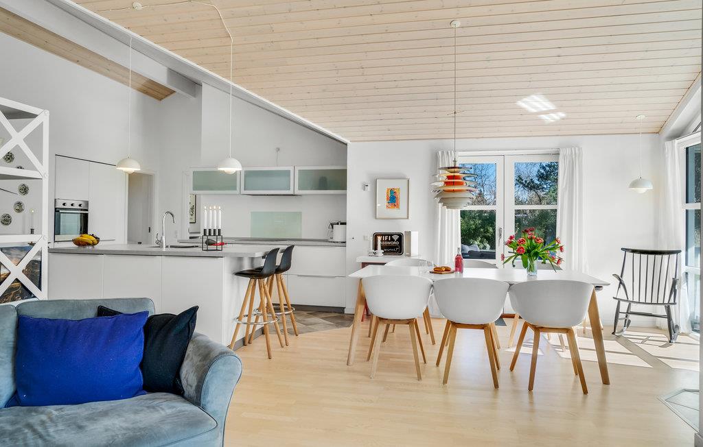 Verbringen Sie Ihren Urlaub in diesem schönen und offenen Ferienhaus in Vesterlyng. Machen Sie den großen Wohnraum zu Ihrem natürlichen Familientreffpunkt. Der großzügige Raum, mit hohen Decken, ist ideal, um gemeinsame Aktivitäten, wie kochen, spielen oder einen Film schauen zu genießen. Die komfortable Einrichtung bietet Ihnen dabei Bequemlichkeit und eine herrliche Atmosphäre.