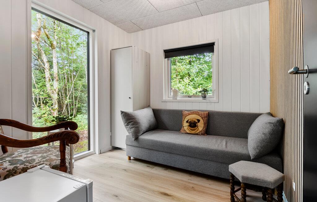 Treten Sie ein und lassen Sie sich vom modernen und stilvollen Interieur dieses charmanten Ferienhauses überraschen. Große Schiebetüren und breite Fensterfronten eröffnen einen herrlichen Blick ins Grüne und lassen auf Wunsch die angenehme Waldluft in die geschmackvoll möblierten Räume. Freuen Sie sich auf gemütliche Kochabende und harmonische Mahlzeiten am behaglich beleuchteten Esstisch, während der Kaminofen leise knistert. Lassen Sie einen langen Tag in der Natur mit einem Brettspiel ausklingen oder streamen Sie einen spannenden Film im einladenden Wohnzimmer.