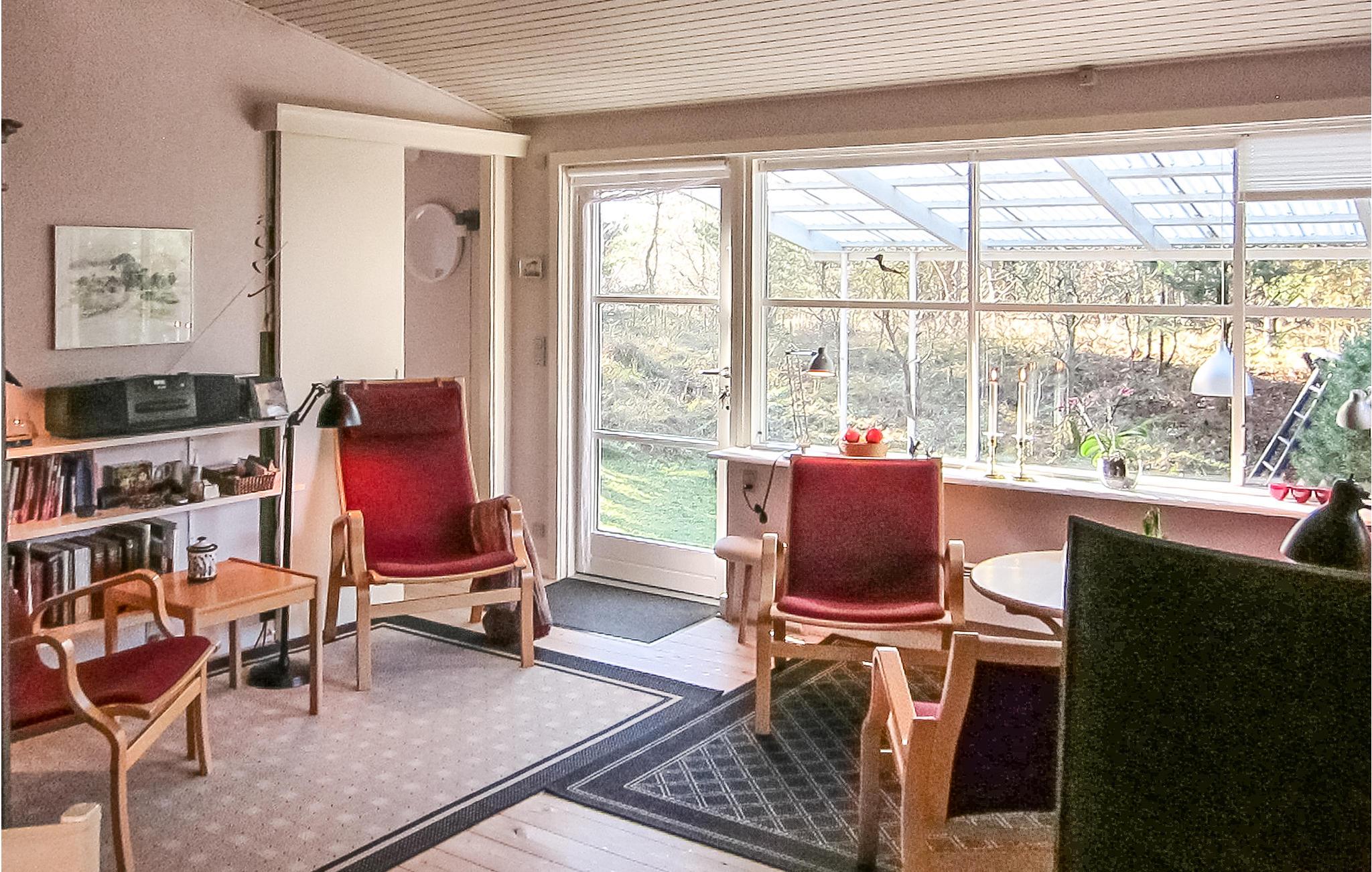 Sie wohnen ruhig und naturnah in einem beliebten Ferienhausgebiet, das viele schöne Wanderwege bietet - zum Beispiel in Richtung Dueodde mit seinem Leuchtturm und seinem fantastischen Sandstrand. Der nächste Badestrand ist nur 500 Meter entfernt, wodurch dieses Ferienhaus ein hervorragender Ausgangspunkt für einen Urlaub voller Badeausflüge ist.