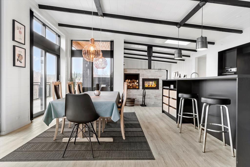 Dieses einladende und moderne Ferienhaus ist der perfekte Mittelpunkt für einen erholsamen Urlaub inmitten der Natur. Es bietet Platz für die ganze Familie mit acht Schlafplätzen. Im Hauptgebäude befinden sich zwei Zimmer mit Doppelbetten, während das separate Nebengebäude zwei weitere Zimmer bereitstellt. Der Mittelpunkt des Hauses ist das Wohnzimmer mit offenem Küchenbereich. Ein Kaminofen mit Glaseinsatz auf zwei Seiten sorgt an kühlen Abenden für eine gemütliche Atmosphäre. Durch die großen Fenster genießt du den Blick ins Grüne, während du in der gut ausgestatteten Küche mit Induktionskochfeld und Kaffeemaschine leckere Mahlzeiten zubereitest. Im Nebengebäude erwarten dich ein Aktivitätsraum mit Pooltisch, Dart und Tischtennis sowie ein zusätzliches Badezimmer.