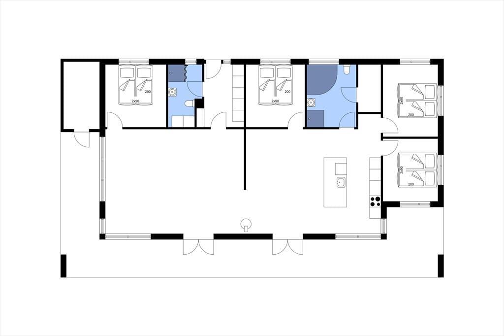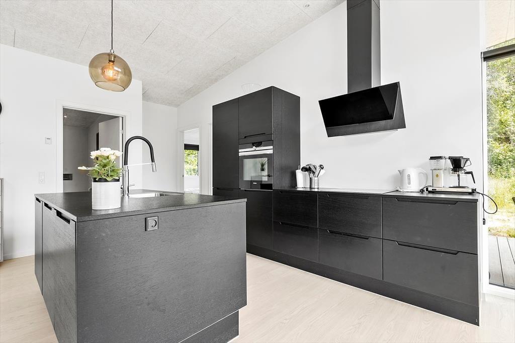 Nicht weit von der Stadt Ebeltoft entfernt befindet sich dieses schöne, neuere Ferienhaus. Das Wohnzimmer strahlt Helligkeit und Großzügigkeit aus, mit bequemen Möbeln und einem gemütlichen Kaminofen – perfekt für entspannte Stunden nach einem erlebnisreichen Tag. Von hier aus gelangst du direkt auf eine überdachte Terrasse, auf der du deinen Morgenkaffee in Ruhe genießen kannst. Die stilvolle, gut ausgestattete Küche ist offen zum Wohnzimmer hin gestaltet und verfügt über alles, was du brauchst – von Geschirrspüler bis hin zum Einbauofen. Das Haus bietet zwei elegante Badezimmer: Eines mit Duschkabine, Whirlpool und Zugang zur Sauna, das andere mit Duschkabine sowie Waschmaschine und Trockner. Die vier großen Schlafzimmer verfügen über Doppelbetten, die sich in Einzelbetten trennen lassen. Für die kleinsten Gäste stehen sowohl ein Hochstuhl als auch ein Kinderbett bereit.