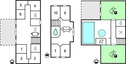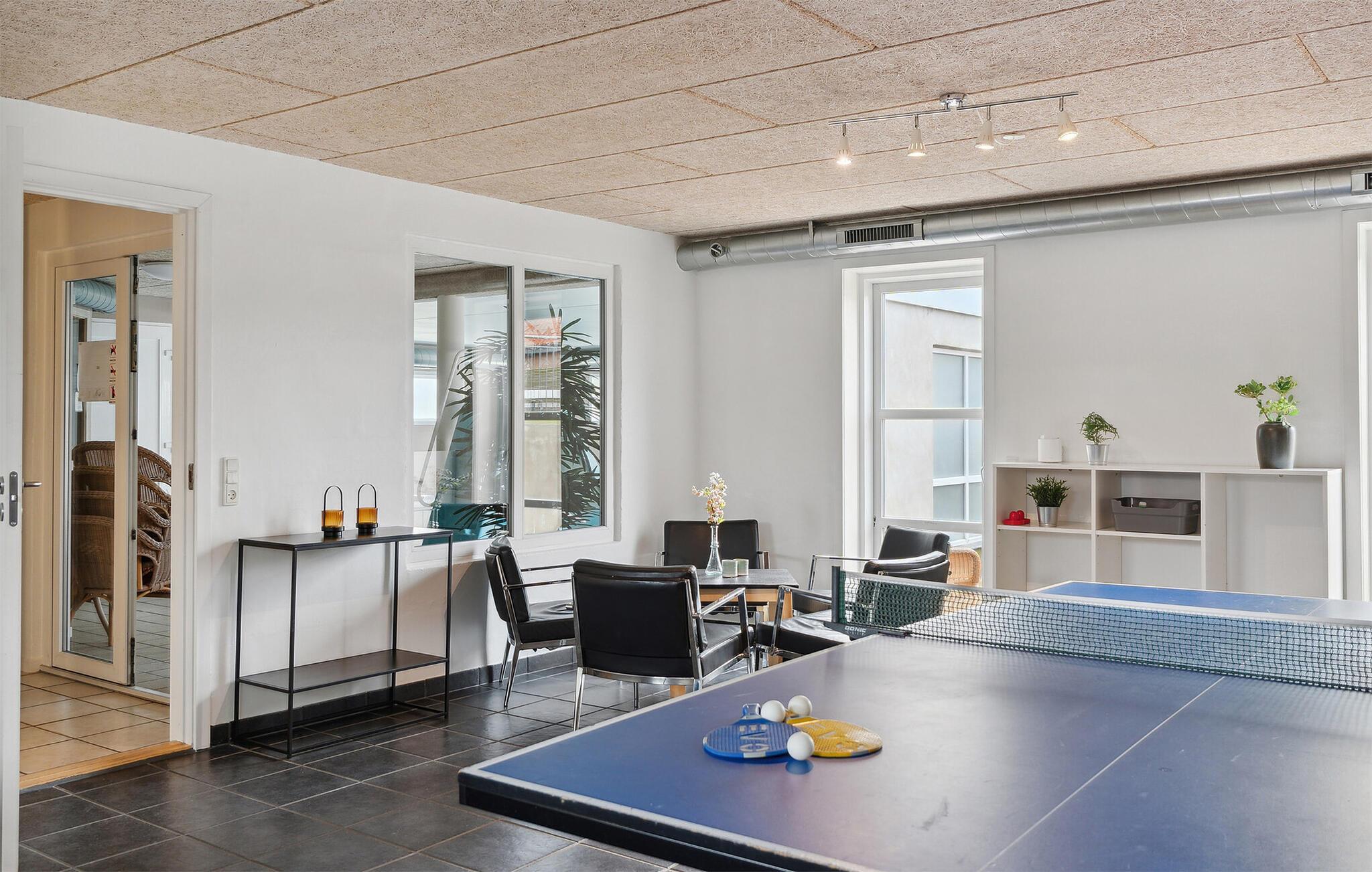 Unweit des reizvollen Städtchens Ebeltoft, in dem wunderschönen Mols Bjerge Nationalpark liegt dieses fantastische und dreistöckige Haus. Es ist ein Traum für eine große Familie oder Familien, die gerne zusammen verreisen wollen. Zahlreiche Schlafzimmer und ein Schlafboden bieten Ihnen Ruheoase, in denen Sie Ihre Nachtruhe genießen können, nachdem Sie die Vorzüge des großen Hauses entdeckt haben. Im ersten Stock erwartet Sie ein geräumiges Wohnzimmer mit gemütlichen Möbeln und einem Holzofen für kühle Tage. Von hier aus können Sie die Aussicht auf Ebeltoft Vig und Fregatten Jylland genießen. Die Gestaltung mit schönen Farben und modernen Möbeln sorgt für zusätzliche Gemütlichkeit und Atmosphäre. Für ganz viel Spaß und Unterhaltung sorgen die zwei Aktivitätsräume mit einer herrlichen Auswahl an Spieltischen und Sportmöglichkeiten, ebenso wie die schöne Poolabteilung mit Wasserrutsche, großem Whirlpool und Sauna.