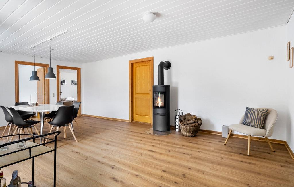 Freuen Sie sich auf eine Auszeit in diesem ehemaligen Gehöft, das durch seine klare Gestaltung und behagliche Einrichtung überzeugt. Viel warmes Tageslicht dringt durch die Sprossenfenster ins Innere und ein Kaminofen sorgt an kühleren Tagen für eine wohlige Atmosphäre. Genießen Sie einfach die Ruhe bei einem Glas Wein oder kochen Sie köstliche Mahlzeiten für sich und Ihre Lieben in der farbenfrohen Küche.