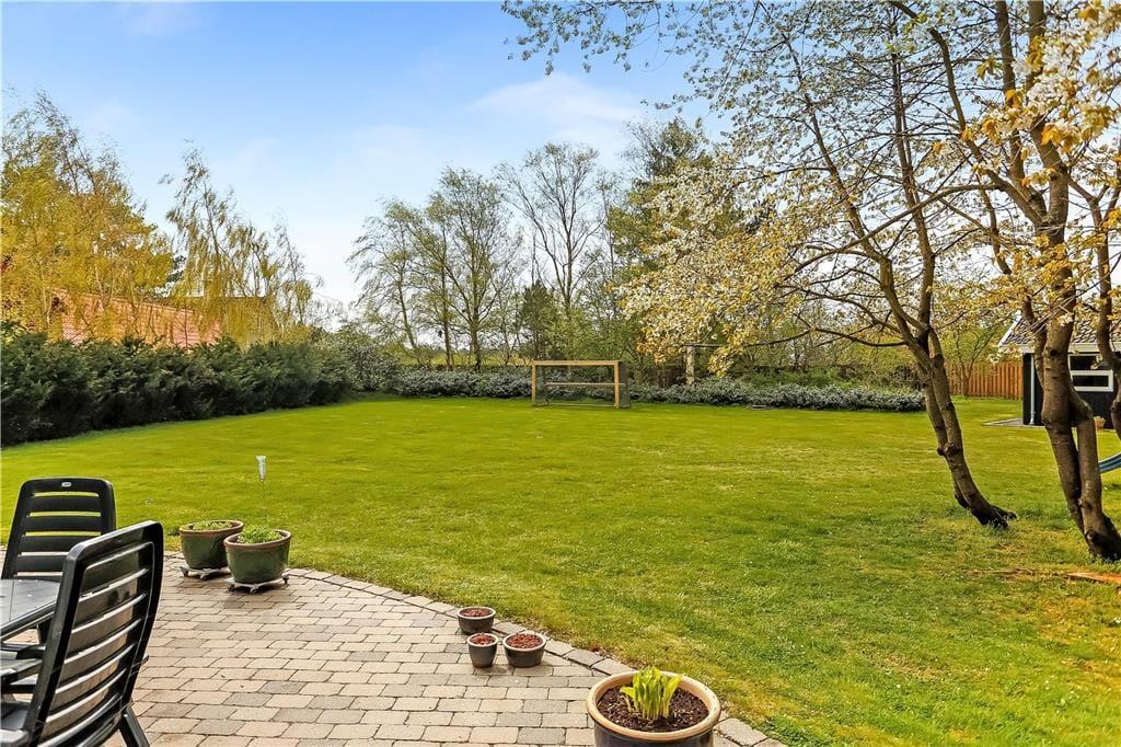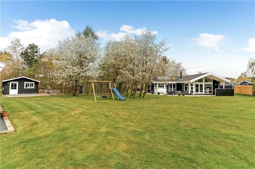 Das große Naturgrundstück bietet viel Platz für Spiel und Bewegung und eure Kinder werden es lieben, auf der Schaukel zu schaukeln, zu rutschen oder Sandkuchen in der Sandkiste zu backen. Währenddessen kannst du auf der großen, offenen Terrasse die Sonne genießen und die Familie zu gegrillten Würstchen am Terrassentisch einladen. Wenn am Abend der Tau fällt, kannst du dich auf die überdachte Terrasse zurückziehen. Und braucht ihr ganz viel Platz zum Spielen, könnt ihr die an das Grundstück grenzende Rasenfläche mitnutzen.