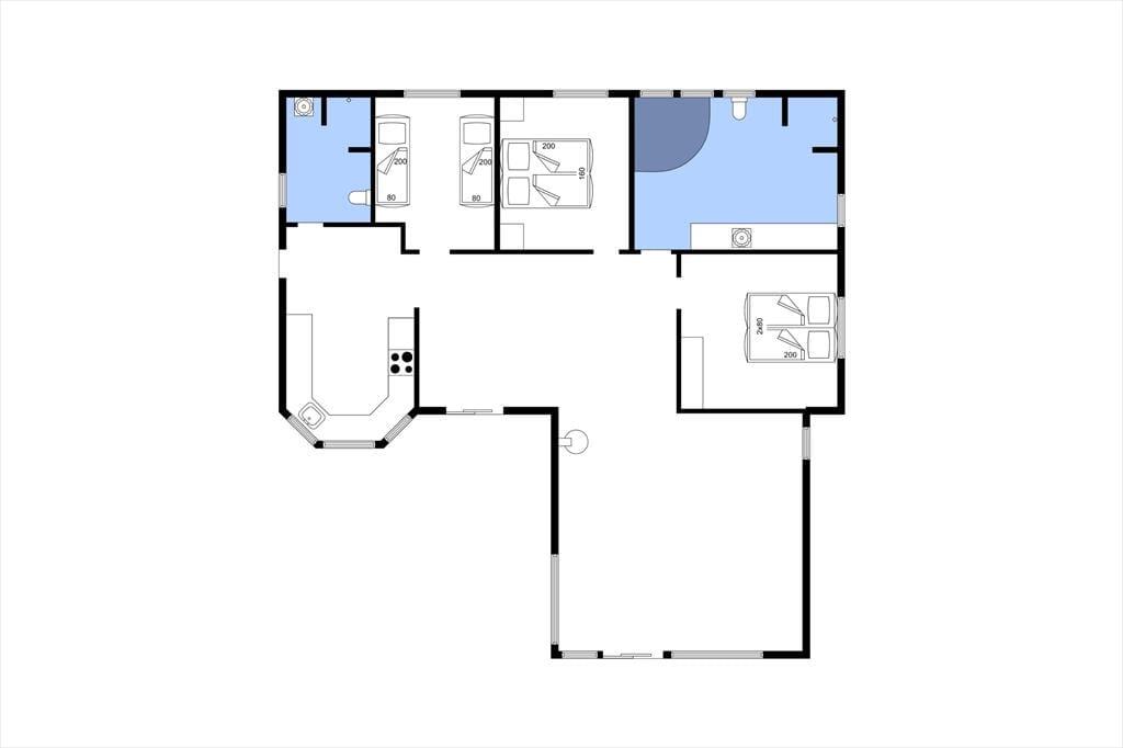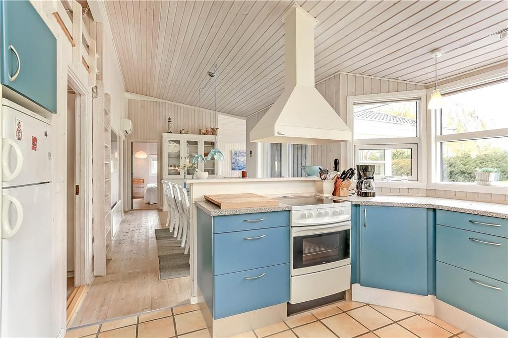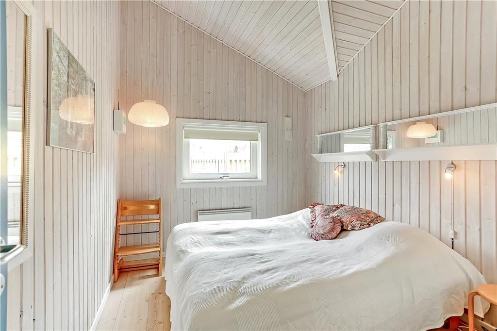 Im hellen, offenen Wohnzimmer mit bodentiefen Fenstern kann die ganze Familie zusammen Zeit verbringen, Spiele spielen oder Pfannkuchen genießen. Das Haus ist geräumig und strahlt Gemütlichkeit aus. Von der Küche aus, die offen mit dem Esszimmer verbunden ist, ist es ein Leichtes, Frikadellen oder Hotdogs auf den Esstisch zu bringen. Du kannst dich mit den anderen unterhalten, während du das Mittagessen mit Fischfrikadellen und selbstgebackenem Brot zubereitest. Seid ihr mit zwei Paaren unterwegs, bekommt jedes Paar sein eigenes Badezimmer. Der Zugang zum Zwischenboden erfolgt über eine steile Leiter.