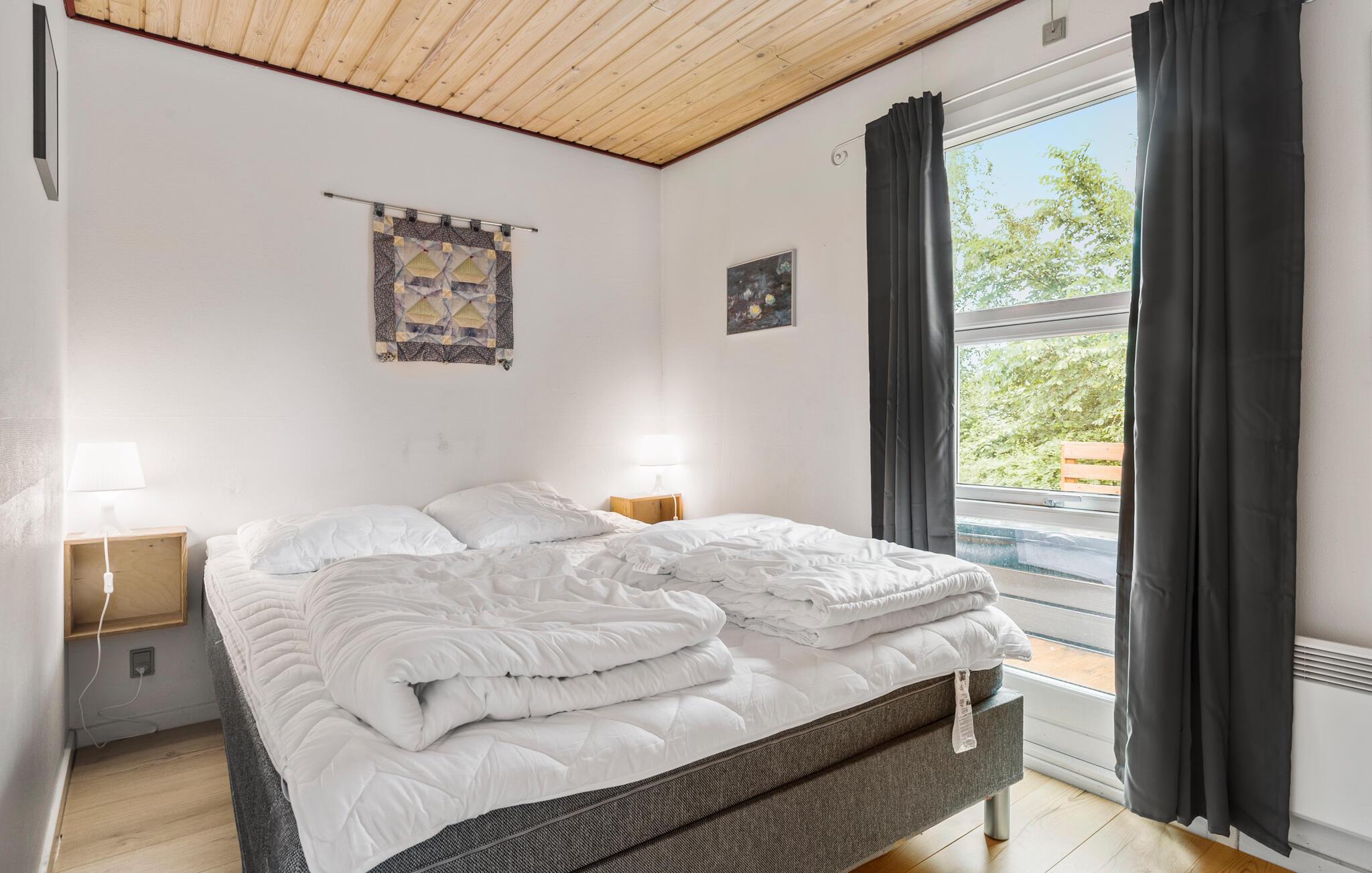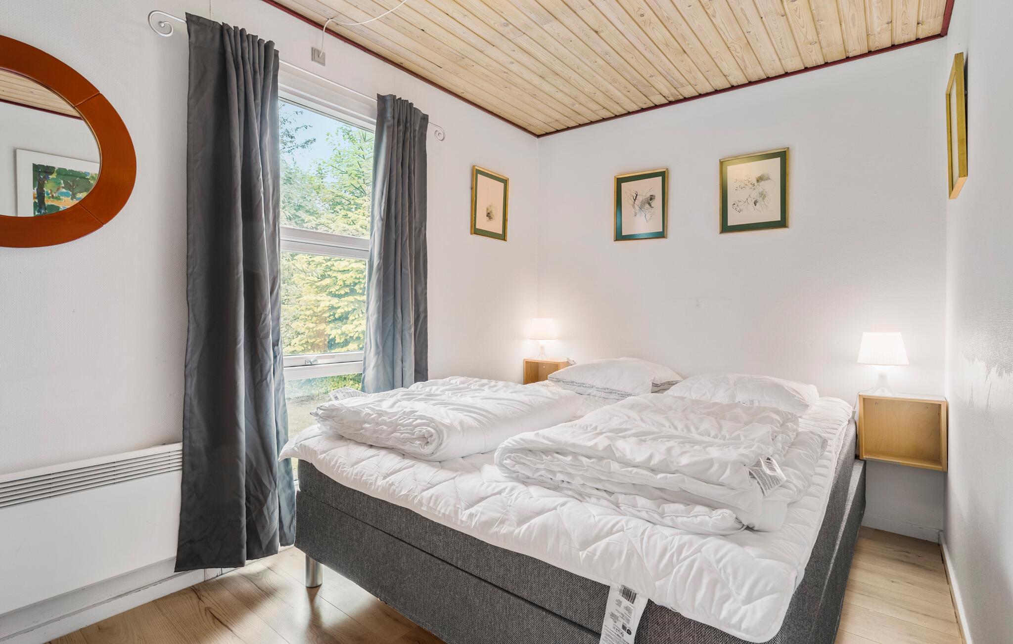 Ferienhaus mit Sauna und kanadischem Außenwhirlpool für fünf Personen. Um Energie zu sparen, werden die Gäste gebeten, drei Tage vor der Ankunft dem Servicebüro mitzuteilen, wenn sie nicht gedenken, den Whirlpool zu benutzen. Die Kinder haben eigenen Spielplatz mit Spielhaus, Schaukeln, Sandkasten u.a.m. Auf dem Grundstück ist außerdem eine Feuerstelle vorhanden. Das Haus liegt unweit eines Badestrandes, Naturgebiete und Einkaufsmöglichkeiten. Es ist auch nicht weit zu Golfplätzen, Angeln u.a.m. Odsherred hat viel zu bieten. Die von Gletschern geschaffene Landschaft ist abwechslungsreich. Golfplätze, Angelseen, Kutter für Angeltouren ab Havnsø, Schloss Dragsholm mit einer gruseligen Geschichte, Vergnügungspark Sommerland Sjælland und ein Zoo in Odsherred, das gibt es hier alles und mehr.