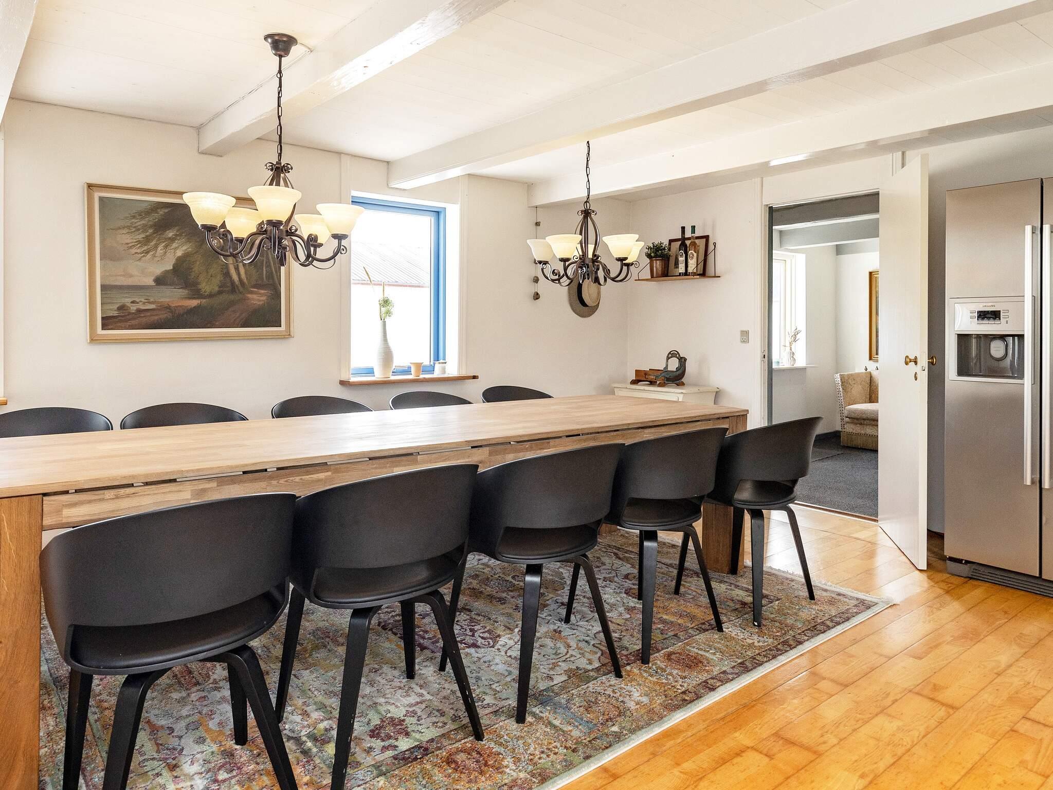 Schönes Wohnzimmer mit offener Decke bis zum Dachfirst und typisch dänischen Möbeln, Fernseher und Holzofen. Separate Küche mit Gasherd, amerikanischem Kühl-/Gefrierschrank, Dunstabzugshaube, Mikrowelle, Geschirrspüler und komplettem Geschirr und Küchenutensilien für bis zu 16 Personen. Die Wasserversorgung erfolgt über den hauseigenen Brunnen und die Pumpe verursacht etwas Lärm.