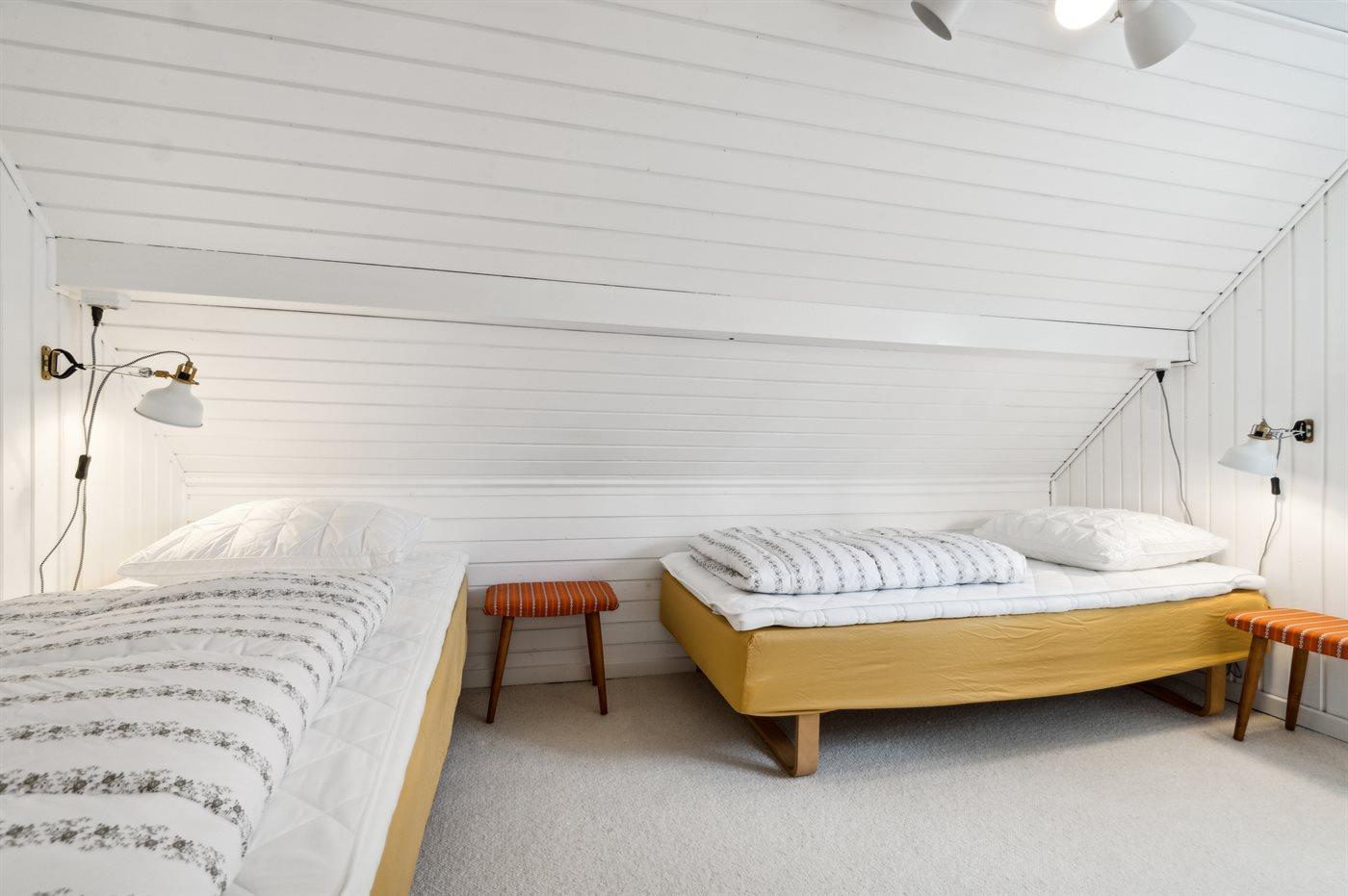 Die Schlafplätze verteilen sich auf 2 Zimmer; 1 im Doppelbett und 1 mit 2 Einzelbetten. Außerdem gibt es ein Kinderbett.