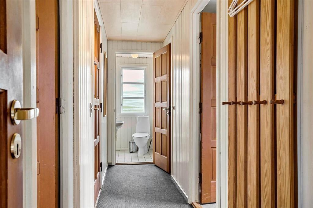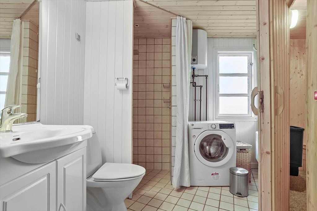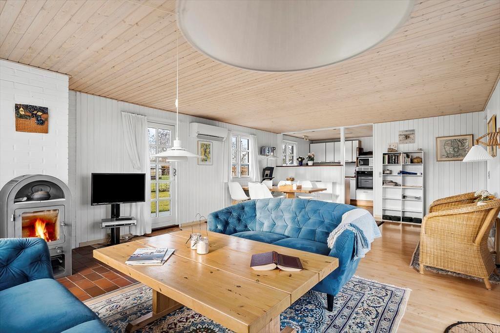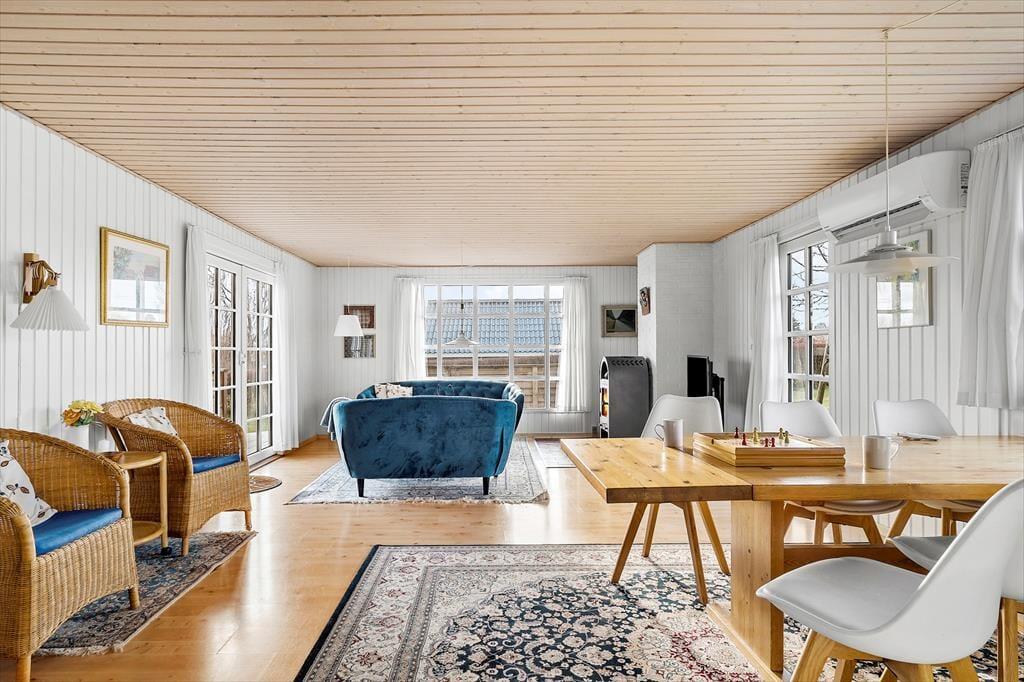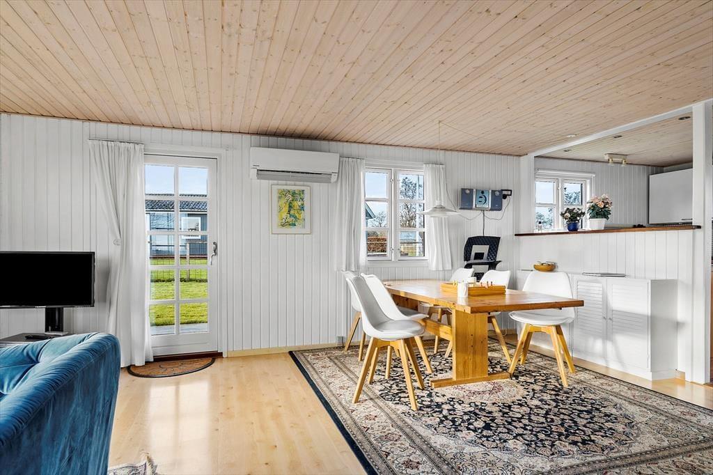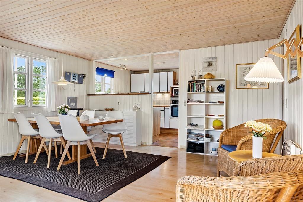 Im Inneren empfängt dich das Ferienhaus mit einer hellen und einladenden Atmosphäre, in der die Einrichtung Gemütlichkeit und Urlaubsflair ausstrahlt. Die hellen Farbtöne und das natürliche Licht, das durch die Fenster hereinströmt, schaffen eine angenehme Ruhe, die es leicht macht, vom Alltag abzuschalten. Hier ist Platz für Zusammensein und Nähe – ganz gleich, ob der Tag ruhig mit Morgenkaffee und Vogelgezwitscher draußen beginnt oder mit gemütlichen Stunden auf dem Sofa nach einem erlebnisreichen Tag endet. Das Ferienhaus ist mit Fokus auf Komfort eingerichtet, sodass du dich schnell wie zu Hause fühlst. Das Badezimmer lädt zu zusätzlicher Verwöhnung ein und bietet Zugang zur Sauna, in der du dich nach einem frischen Spaziergang am Strand wohlig aufwärmen oder einfach die Ruhe und Wärme in aller Stille genießen kannst.