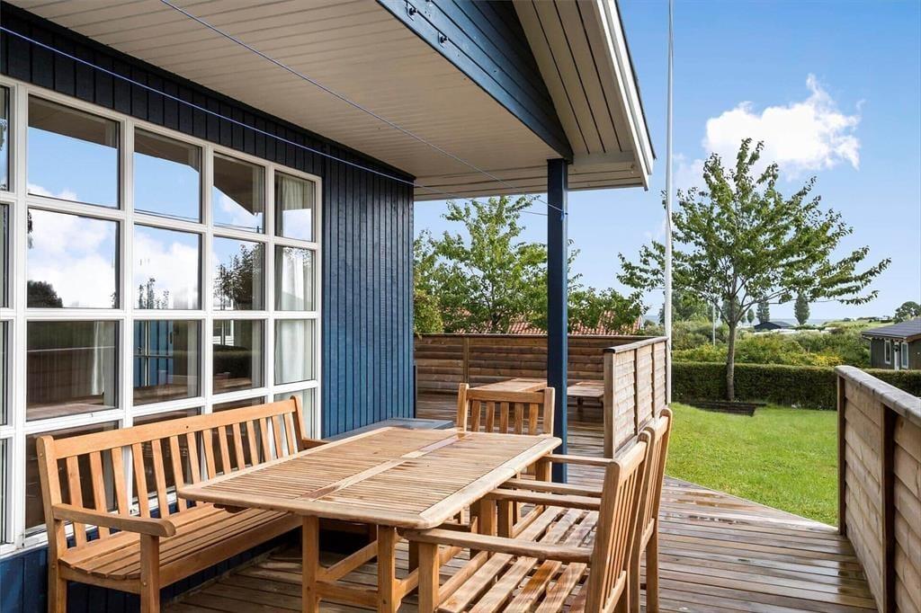 Die schöne Holzterrasse des Ferienhauses wird schnell zu einem natürlichen Treffpunkt während des Urlaubs. Hier kannst du die Sonnenstrahlen genießen, dich mit einem guten Buch zurücklehnen oder die Familie zu langen, gemütlichen Mahlzeiten unter freiem Himmel versammeln. Die Terrasse lädt sowohl zur Entspannung als auch zum Beisammensein ein, und die ruhige Umgebung macht es leicht, das richtige Urlaubstempo zu finden. Beginne den Tag mit einem Frühstück an der frischen Luft und lass ihn mit einem stillen Abend ausklingen, wenn sich der Himmel in sanfte Farben taucht und Ruhe über das Gebiet einkehrt. Der Garten rund um das Ferienhaus bietet Platz für Spiel, Entspannung und kleine Sonnenpausen – und es ist leicht, sich vorzustellen, wie die Kinder spielen, während die Erwachsenen einen Moment der Ruhe genießen.