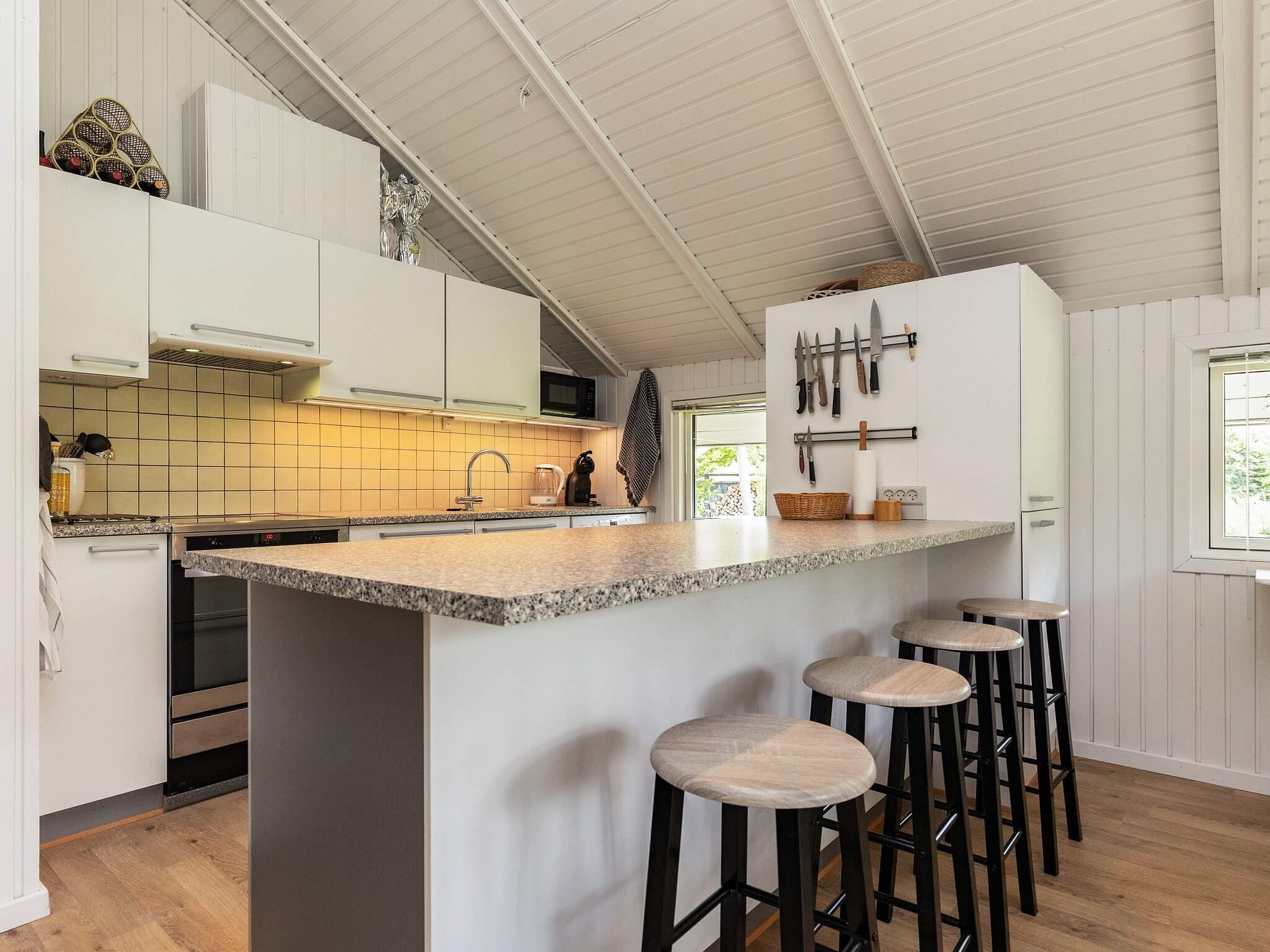 Dieses geräumige Ferienhaus liegt auf einem großen, komplett eingezäunten Naturgrundstück und bietet viel Platz für die ganze Familie. Der offene Küchen- und Wohnbereich bildet das Herzstück des Hauses und verfügt über einen gemütlichen Sitz- und Essbereich sowie eine Nische mit einem Doppelbett. Die Küche verfügt über eine stilvolle Kücheninsel mit Barhockern – ideal für gemeinsame Mahlzeiten und gemütliche Zusammenkünfte. Das Wohnzimmer ist sowohl mit einer klimafreundlichen Wärmepumpe als auch einem Holzofen ausgestattet und schafft an kühleren Abenden eine warme und einladende Atmosphäre.