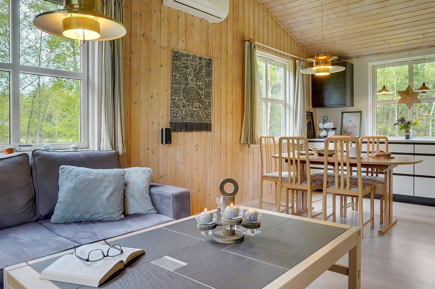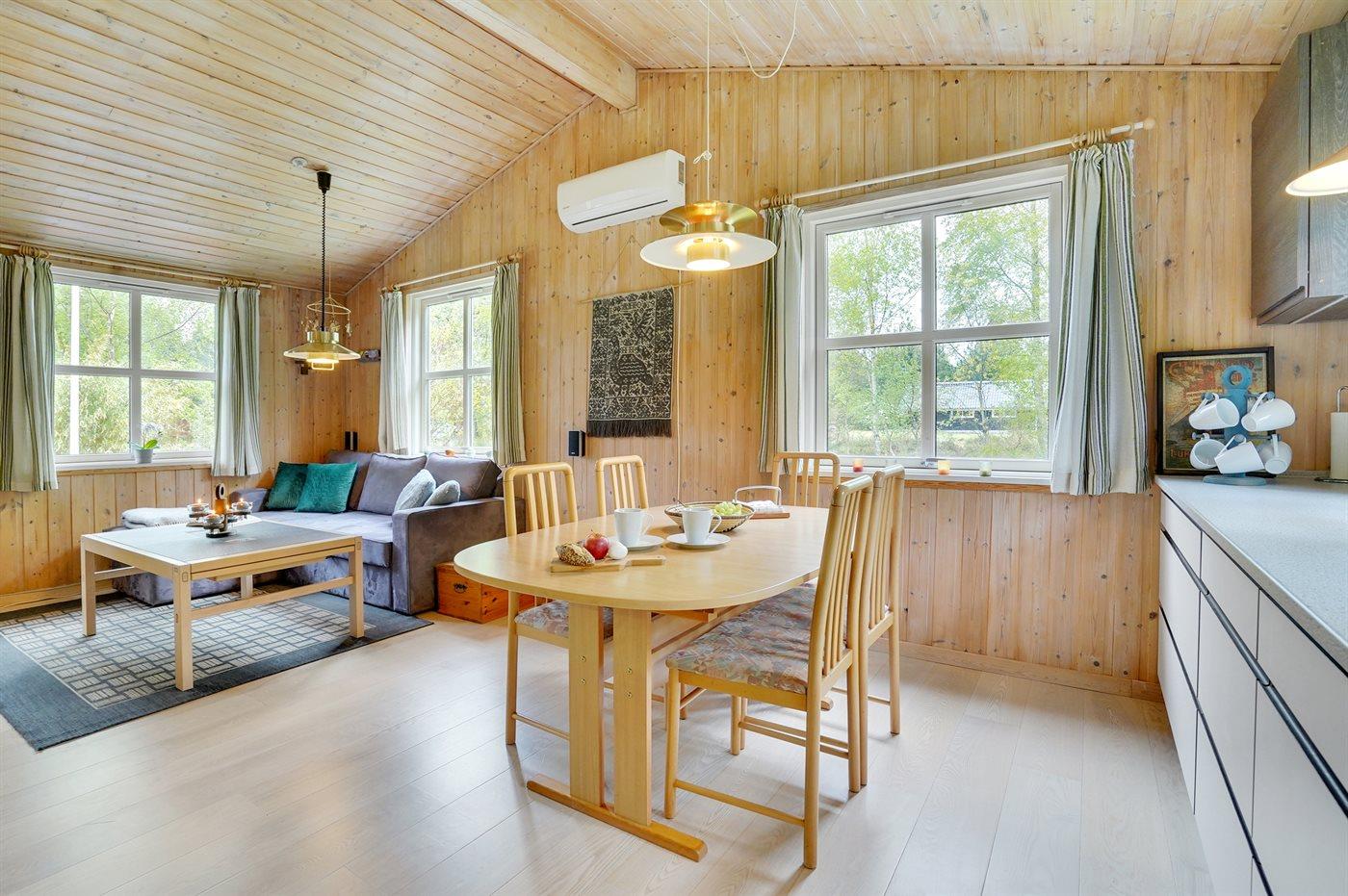 Dieses gemütliche Ferienhaus liegt umgeben von den Bäumen des Waldes und bietet einen Ausblick aus den Limfjord. Nicht selten kommen hier Rehe und andere Waldtiere vorbei. Wenn Sie Wassersport auf dem Limfjord machen möchten, eignet sich dieses Haus optimal, da Sie Ihre Ausrüstung auf der überdachten Terrasse lagern können. Am Hafen von Virksund kann man stundenlang einfach nur dasitzen und die Schiffe beobachten, die ein- und auslaufen. Wenn Ihnen nach etwas Süßem ist, gibt es ganz in der Nähe eine Eisdiele.