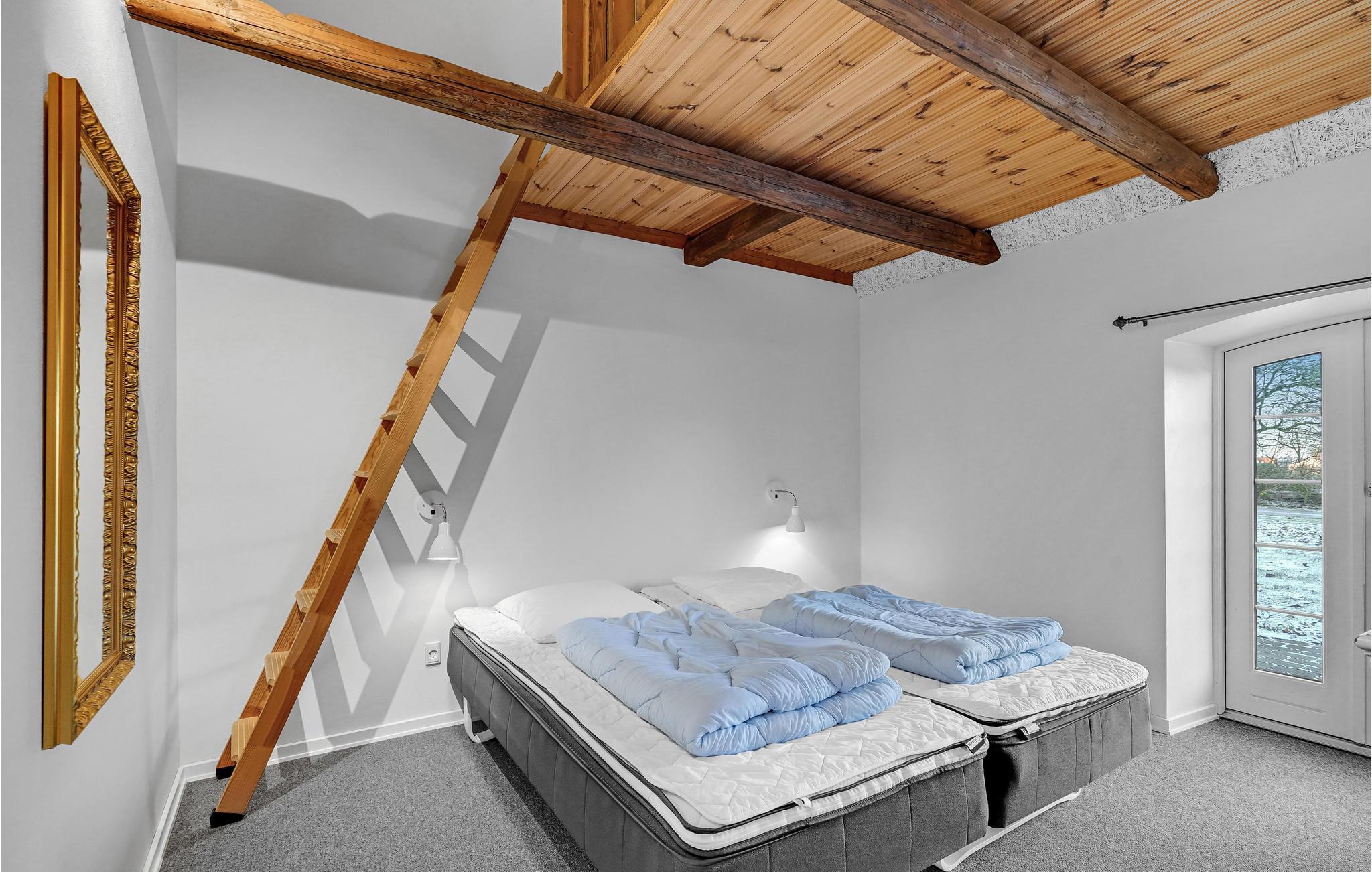 Hier werden Sie Ihren Urlaub in einer authentischen Gegend verbringen. In einem dänischen Landhaus, zusammen mit der Familie oder Freunden. Die Unterkunft Nebelgård lässt Ihren Urlaubstraum Wirklichkeit werden. Es ist ein einzigartiges Ferienziel in einer ländlichen Umgebung. Die alten Ställe, die Scheude und der Heuboden bieten Ihnen seit der Renovierung 2009 eine hervorragende Unterkunft auf 950 m². Es gibt einen großen Poolbereich mit Rutsche, Whirlpool und Sauna. Im Spielzimmer stehen Tischtennis, PlayStation, Tischfußball und mehr. Es gibt auch ein Minikino mit Kinostühlen und einem Großbildschirm. Die große Scheune beherbergt auf 200 m² einen Wohnraum mit einem großen Tisch, an dem alle Bewohner Platz finden. Auch mehrere Sitzgelegenheiten, einen Billardtisch und einen 50" Flachbildschirm gibt es hier. Die Küche ist mit 8 Kochplatten, 2 Backöfen, 2 Kühlschränken, einer Gefriereinheit und 2 Geschirrspülern professionell ausgestattet. Im Stallgebäude liegen die Doppelzimmer, Badezimmer und eine Lounge mit Panoramafenster. Es gibt auch einen Hauswirtschaftsraum mit Waschmaschine und Trockner. Im Freien erwartet Sie ein schöner Garten mit Sitzgelegenheiten zum Genießen von romantischen Sommerabenden im Kerzenschein. Der Hof liegt in einer ruhigen Gegend, die zu schönen Spaziergängen einlädt. Auf dem großen Naturgrund gibt es auch einen See, dort beobachten Sie wilde Tiere. Ein prächtiges Ferienhaus in einer unberührten Natur.